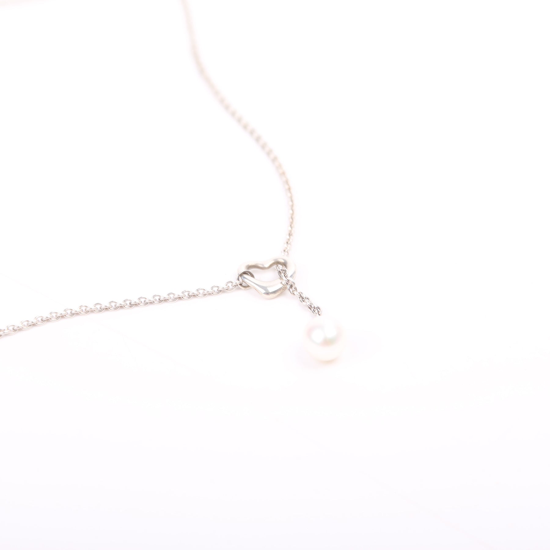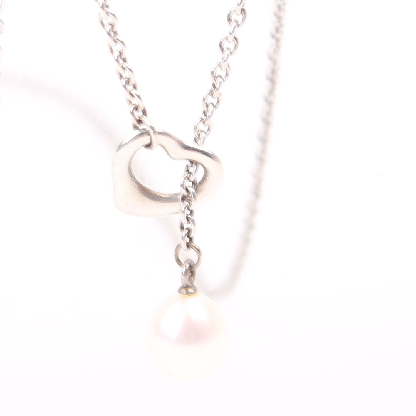 Elsa Peretti Open Heart Pearl Lariat 7.5-8MM 925 Necklace Silver