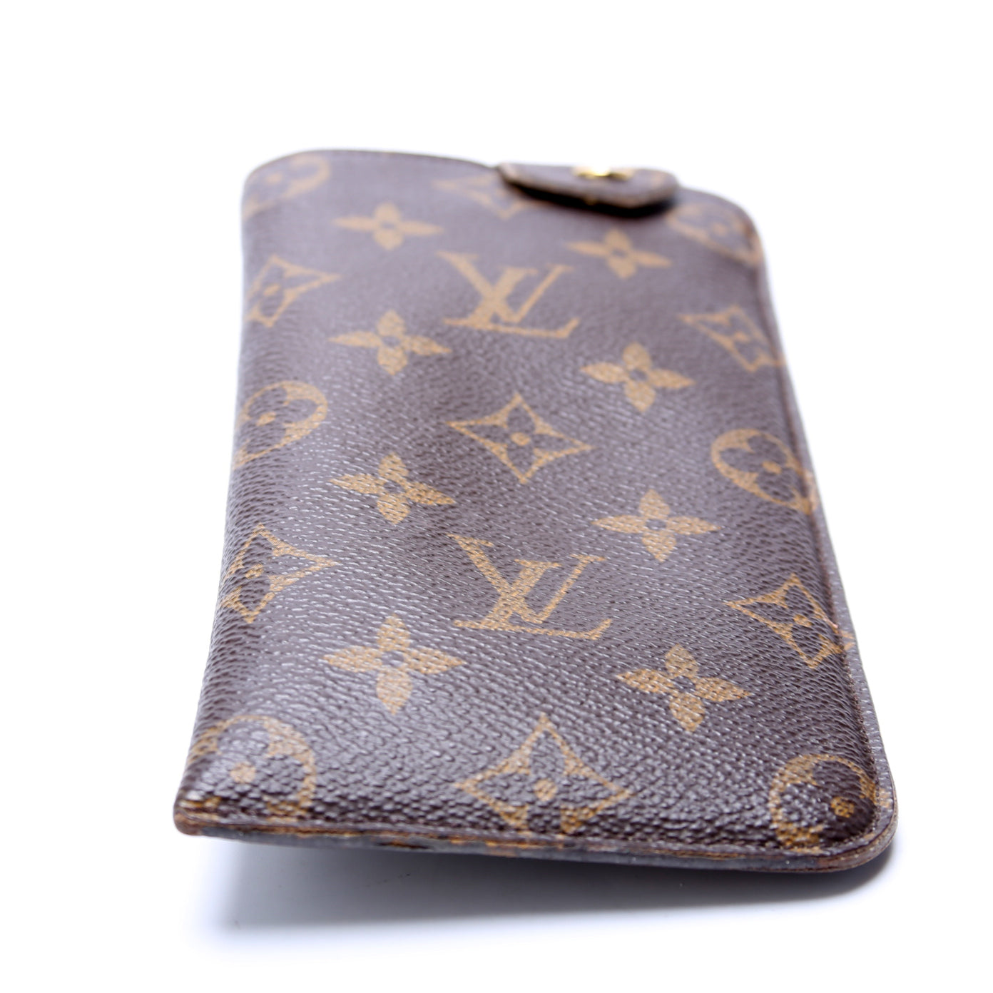 This pre-owned Louis Vuitton Etui A Lunettes MM Glasses Case is guaranteed 100% authentic. The exterior is in the classic Louis Vuitton Monogram coated canvas.
