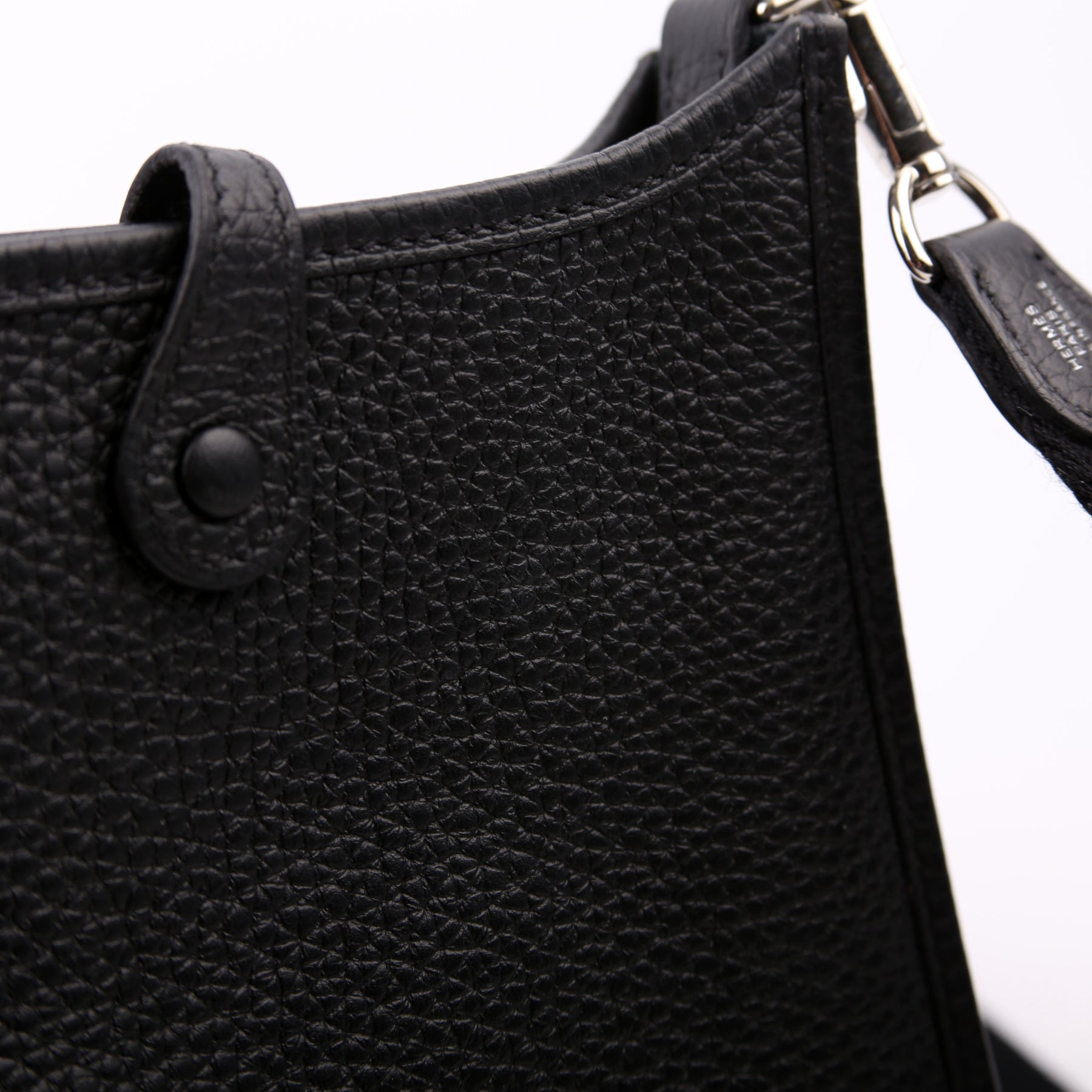 This pre-owned Hermes Evelyne TPM is guaranteed 100% authentic. The exterior is in the classic Hermes Taurillon leather.