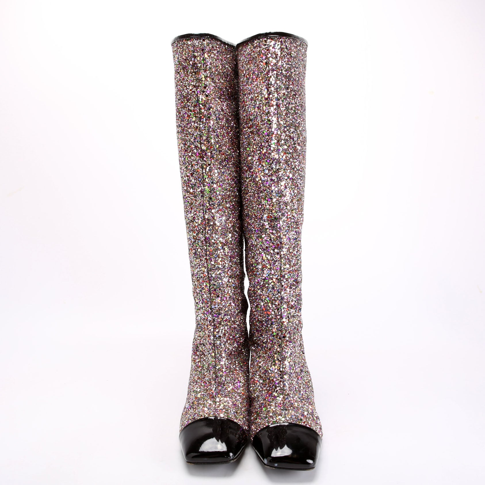 These pre-owned Chanel Fantasy Glitter High Boots are guaranteed 100% authentic.