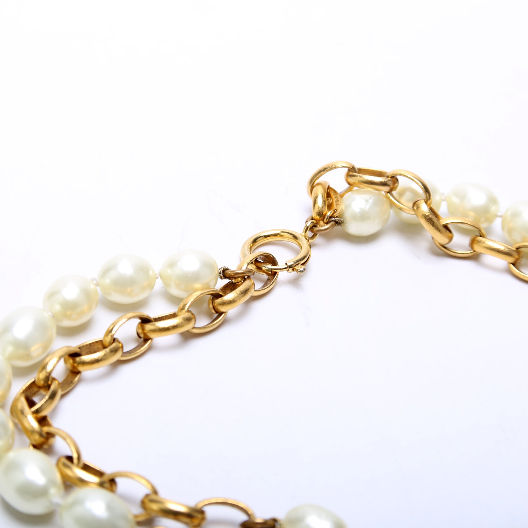 This pre-owned Chanel Faux Pearl/Chain 2-Row Necklace Vintage is guaranteed 100% authentic.