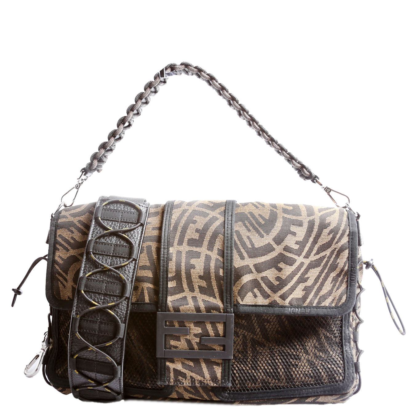 FF Zucca/Mesh Vertigo Baguette Satchel Large Black/Brown