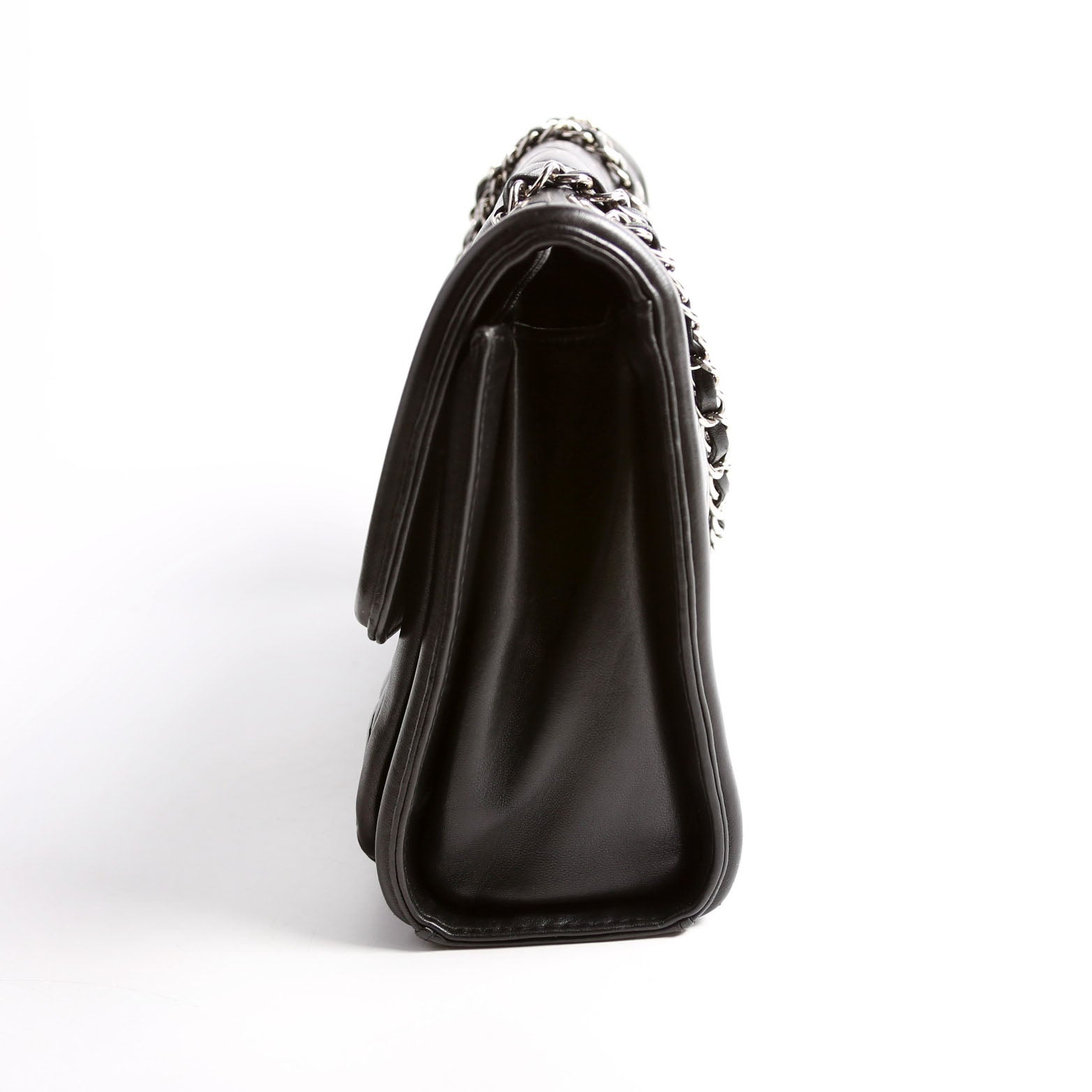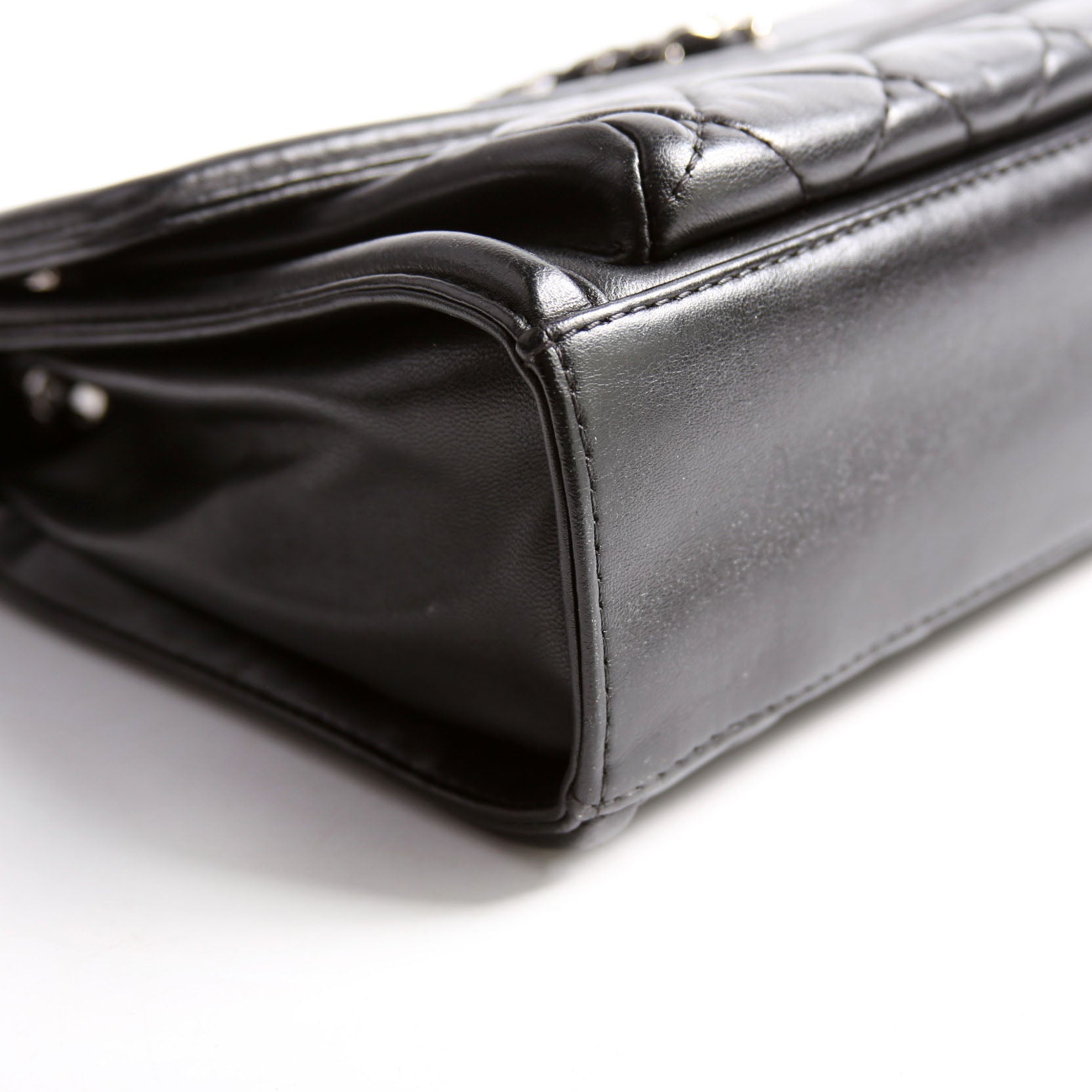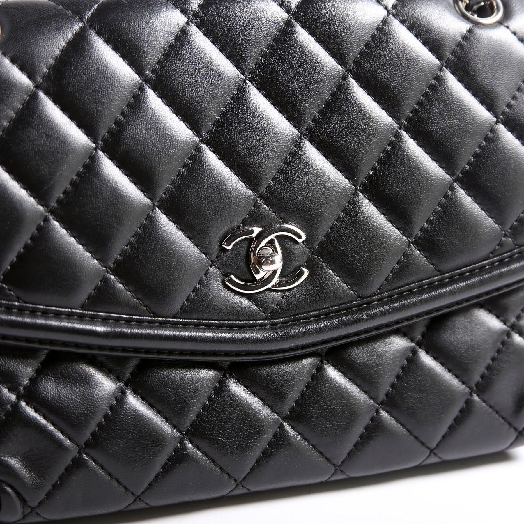 This pre-owned Chanel Geometric Large Flap Bag is guaranteed 100% authentic. The exterior is in the classic Chanel Lambskin leather.