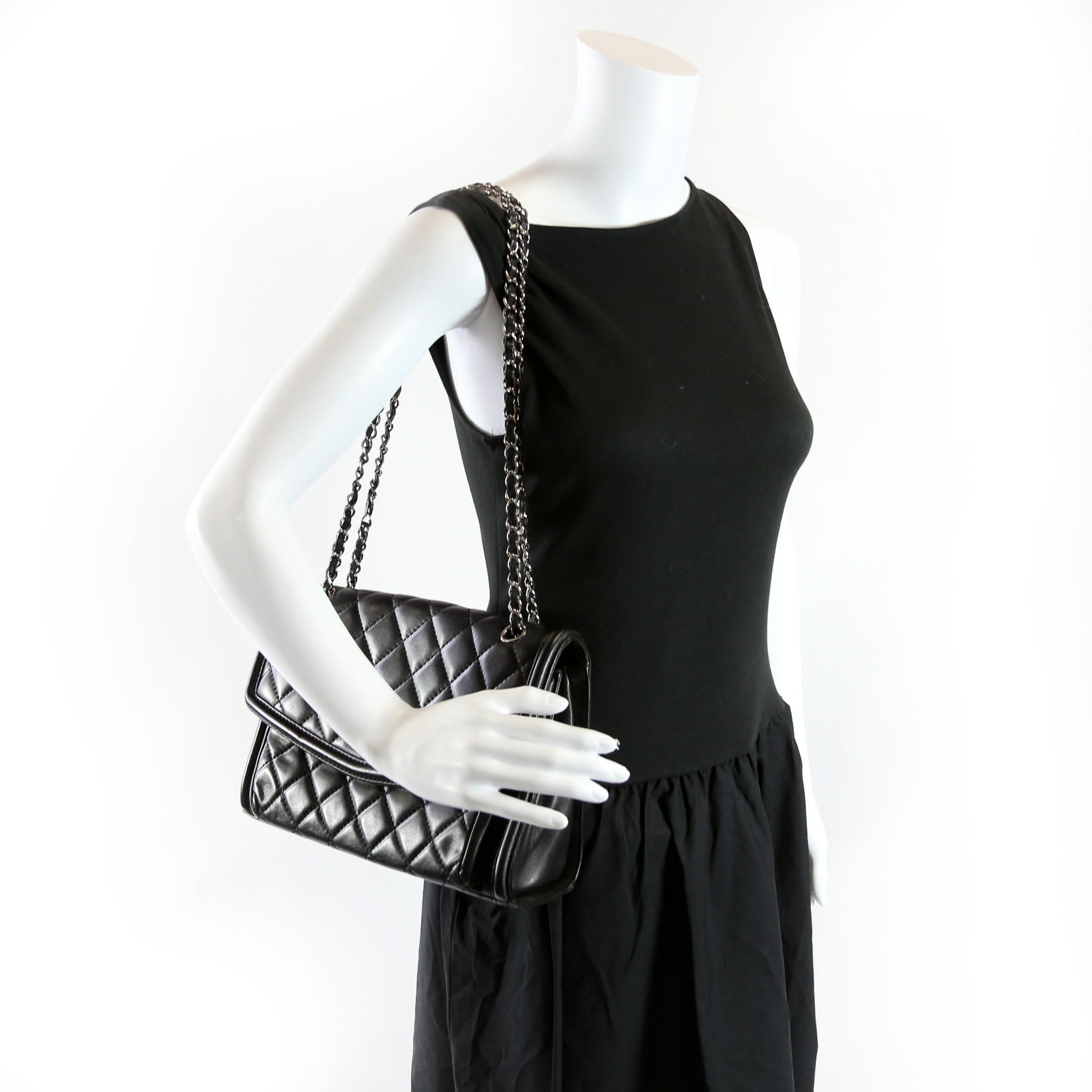 Geometric Large Flap Bag Lambskin 21M Black
