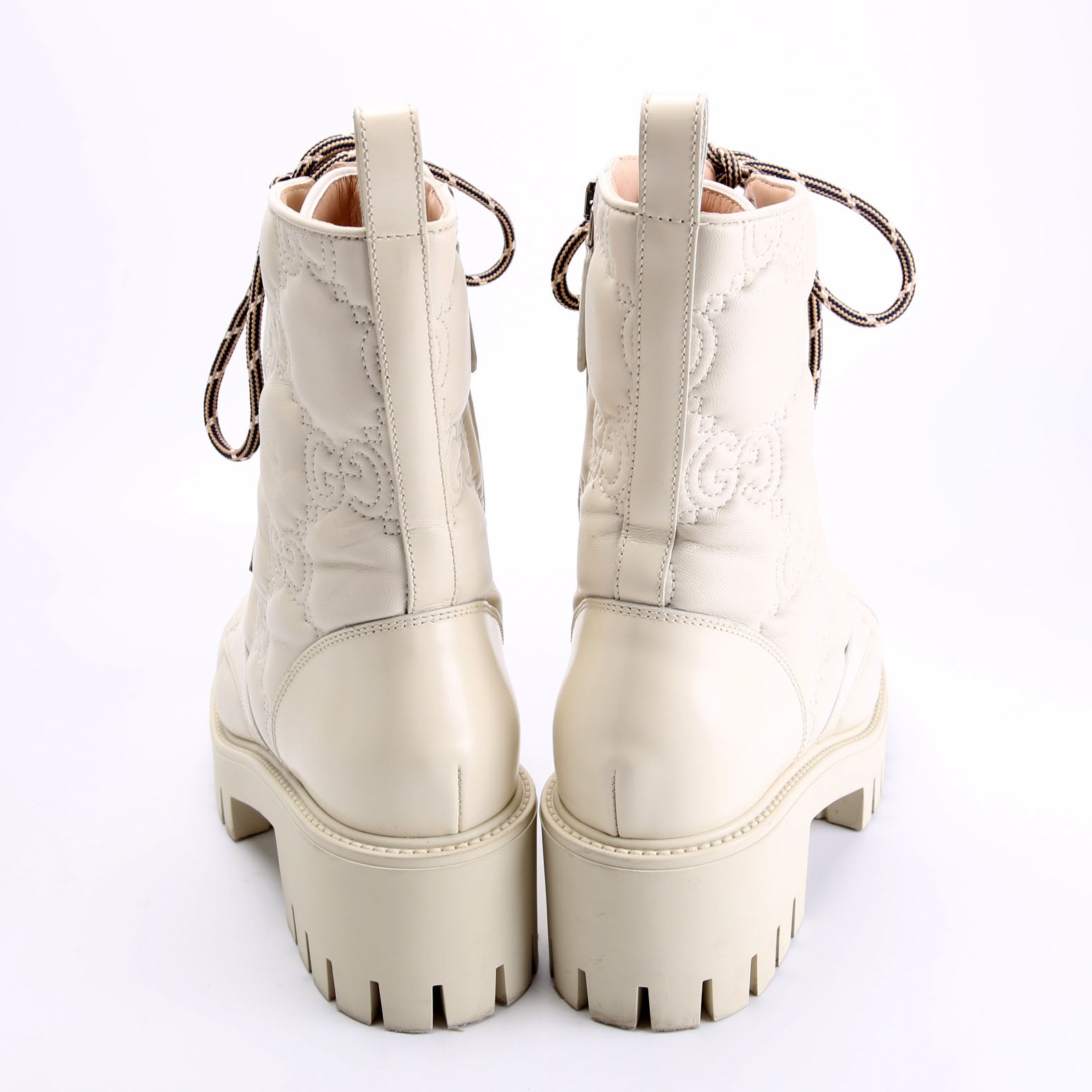 GG Matelasse Combat Boots Size 37.5 Cream