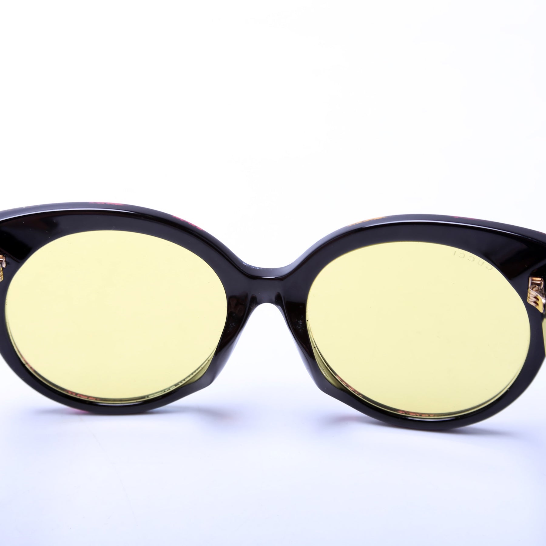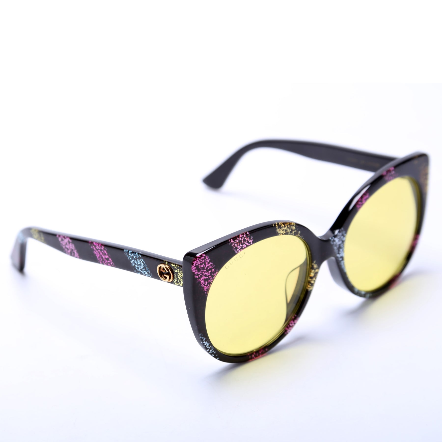 These pre-owned Gucci Round Cat Eye Glitter Sunglasses are guaranteed 100% authentic.