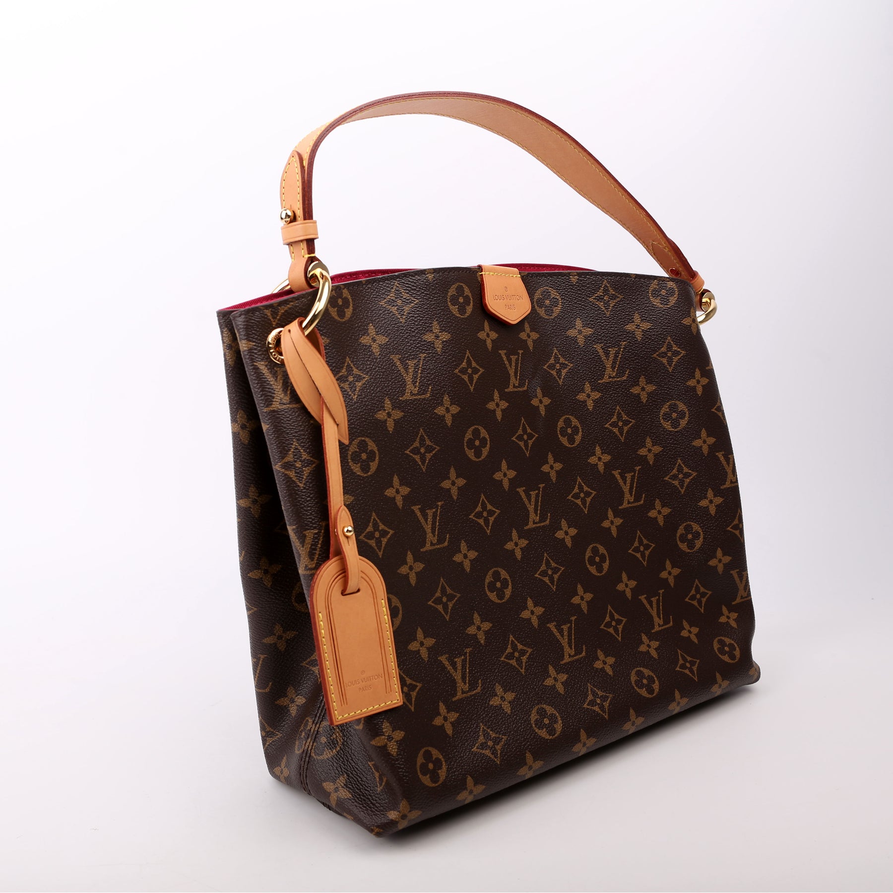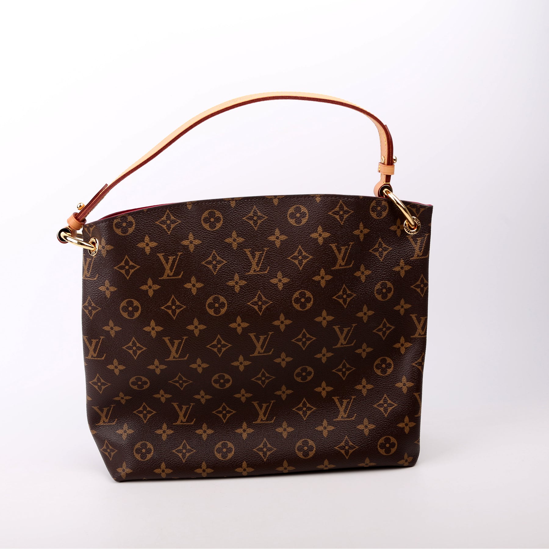 This pre-owned Louis Vuitton Graceful PM is guaranteed 100% authentic. The exterior is in the classic Louis Vuitton Damier Ebene coated canvas.