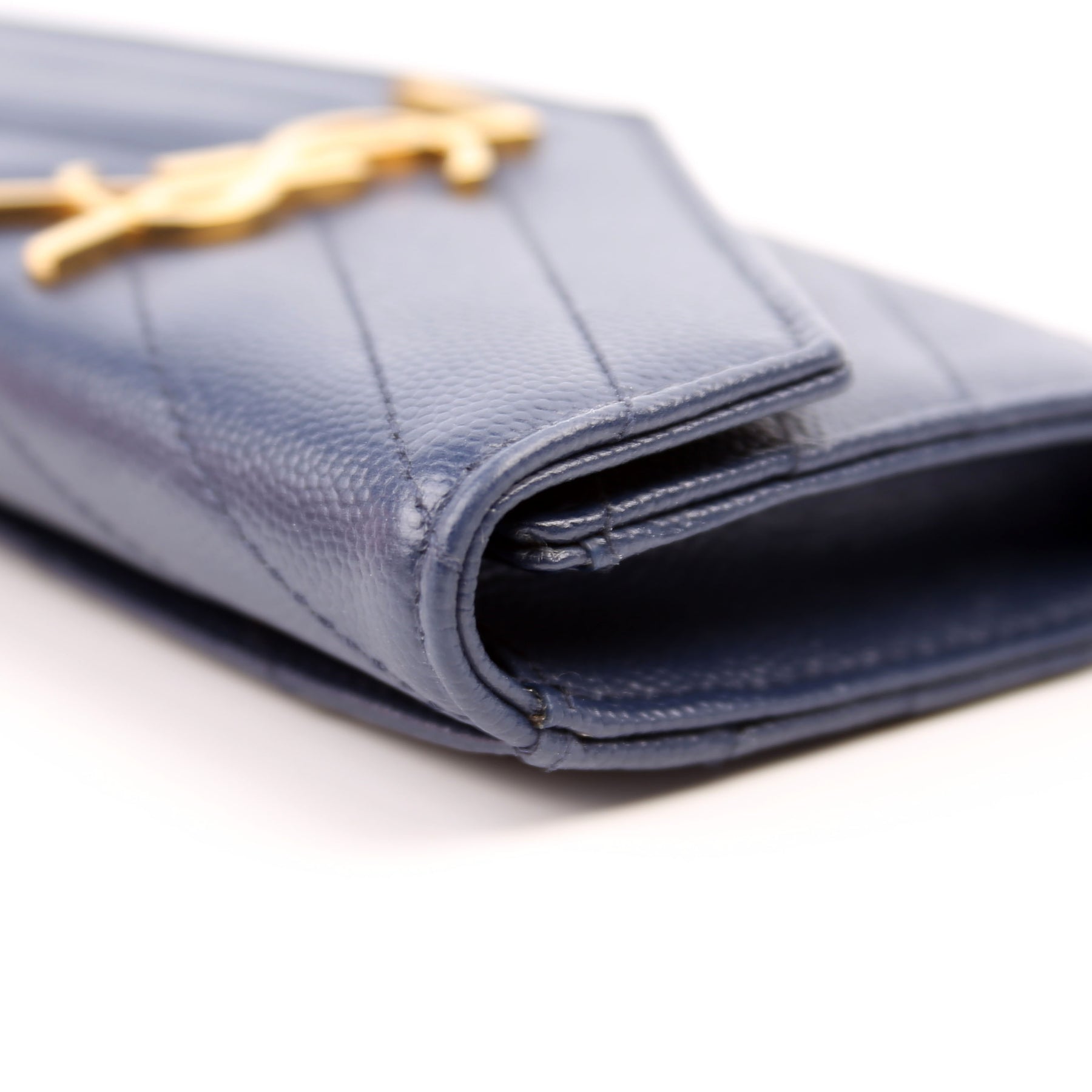 This pre-owned Saint Laurent Small Envelope Wallet is guaranteed 100% authentic. The exterior is in the classic Saint Laurent Grain De Poudre leather.