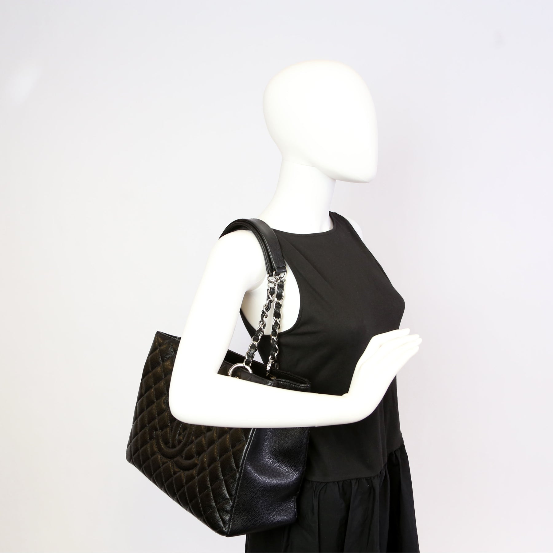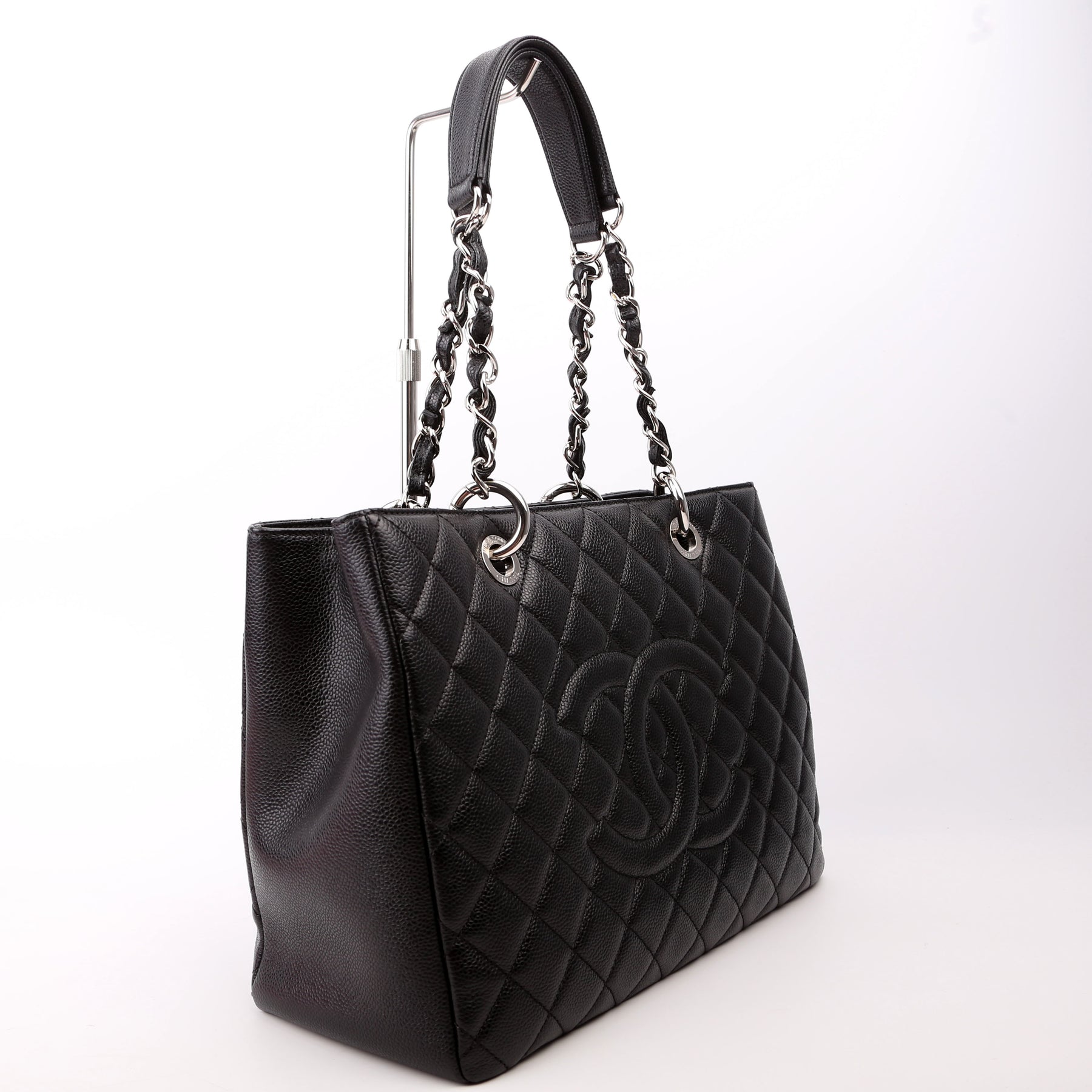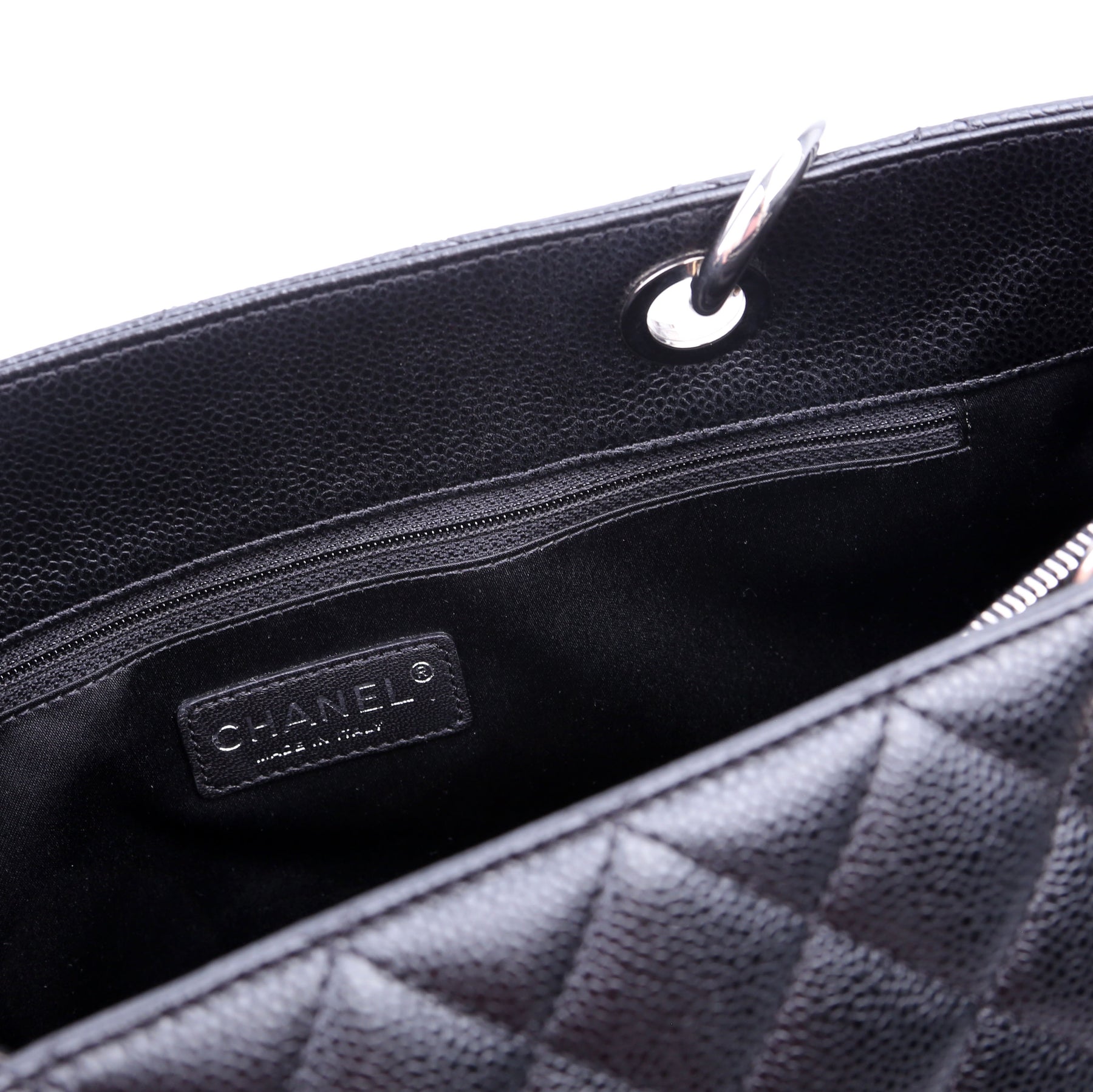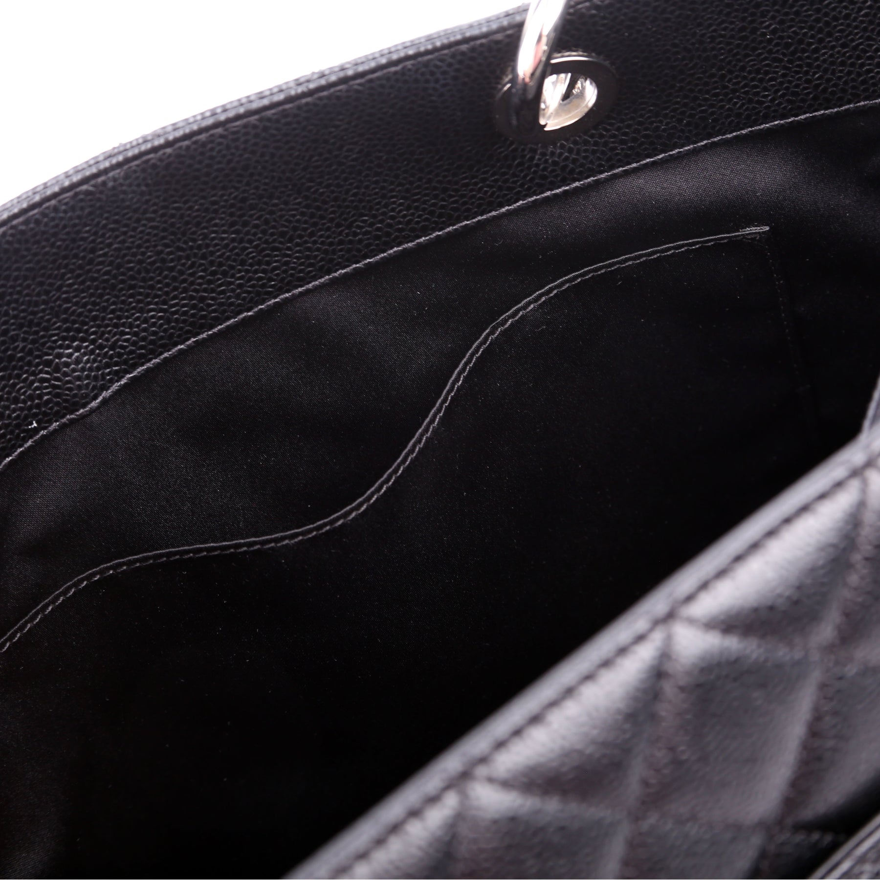 This pre-owned Chanel Classic Grand Shopping Tote is guaranteed 100% authentic. The exterior is in the classic Chanel Caviar Leather.