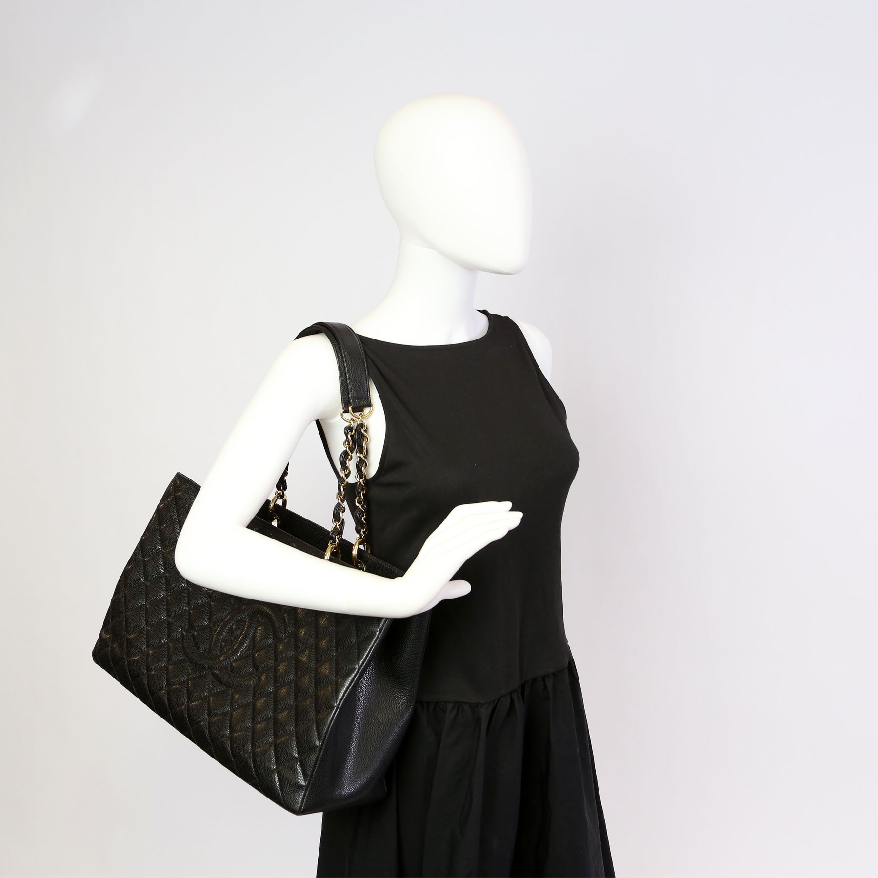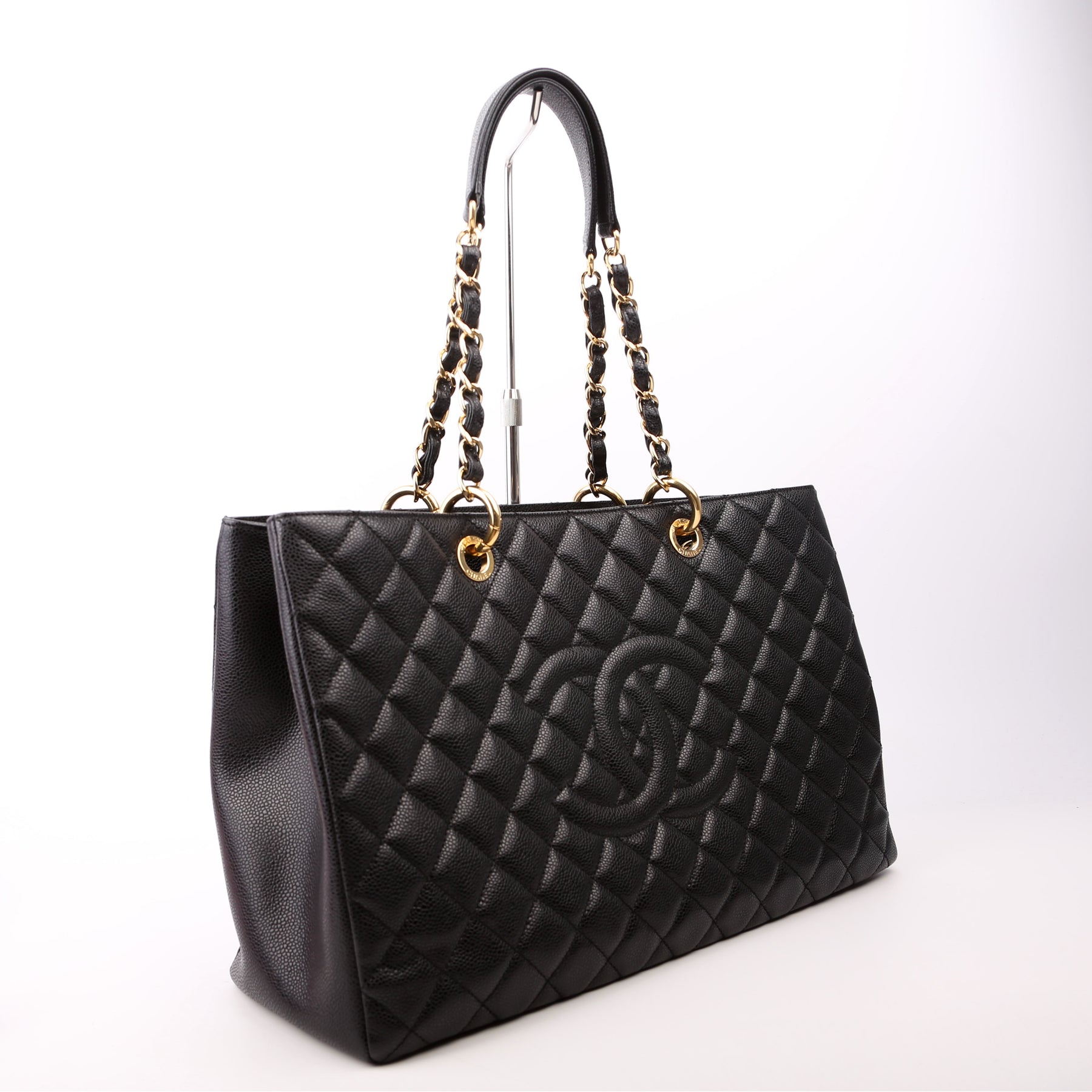 This pre-owned Chanel Grand Shopping Tote XL is guaranteed 100% authentic. The exterior is in the classic Chanel Caviar leather.