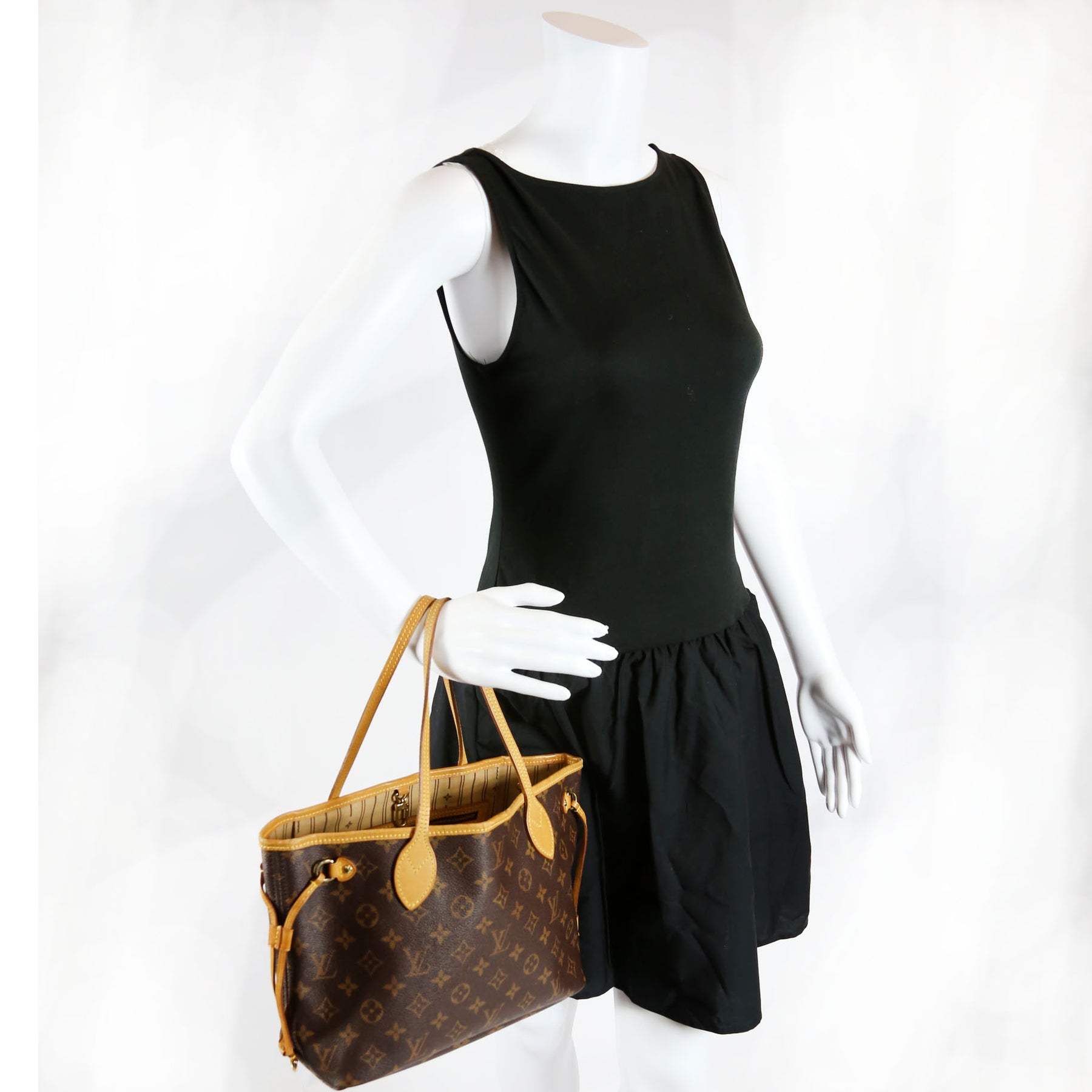 This pre-owned Louis Vuitton Neverfull PM is guaranteed 100% authentic. The exterior is in the classic Louis Vuitton Monogram coated canvas.