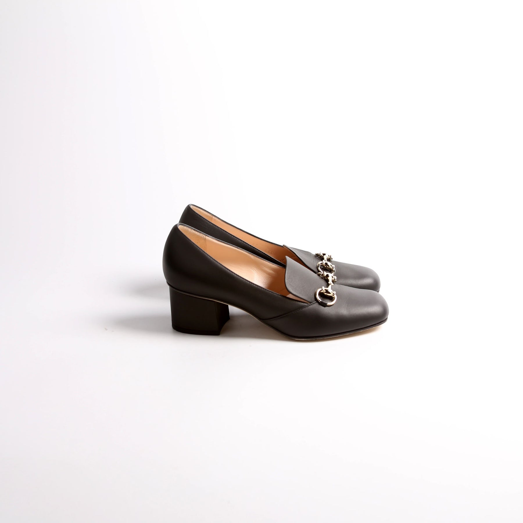 Horsebit Soft Calfskin Loafer Pumps Size 37 Black