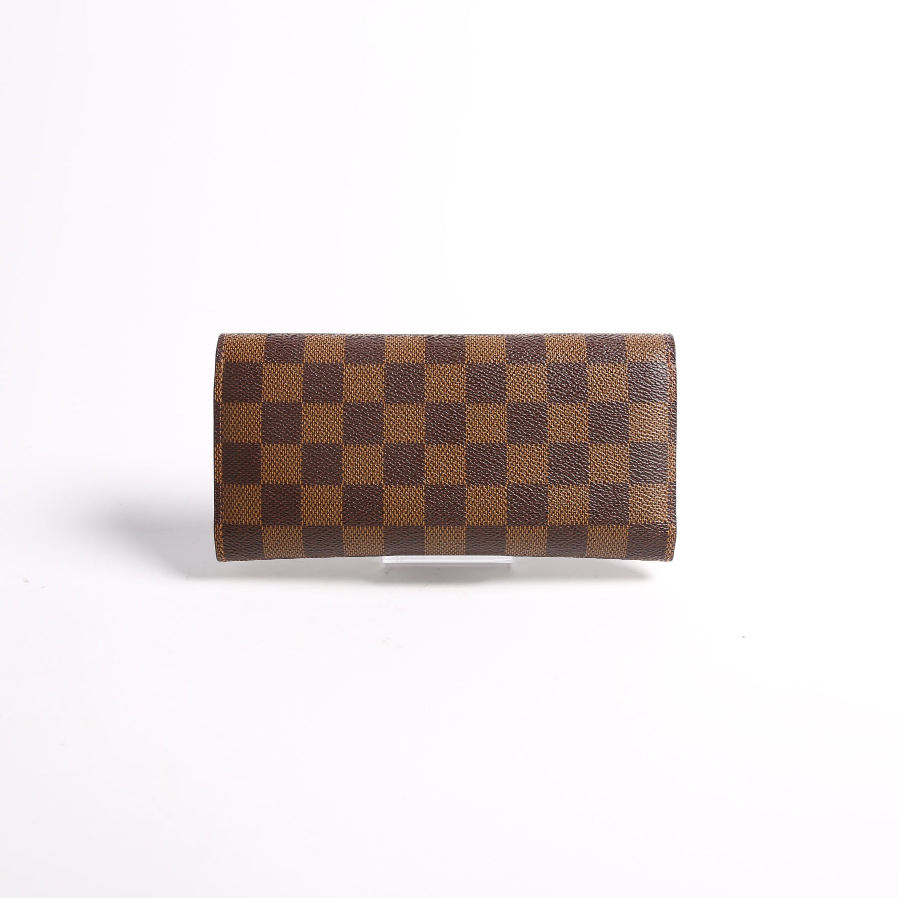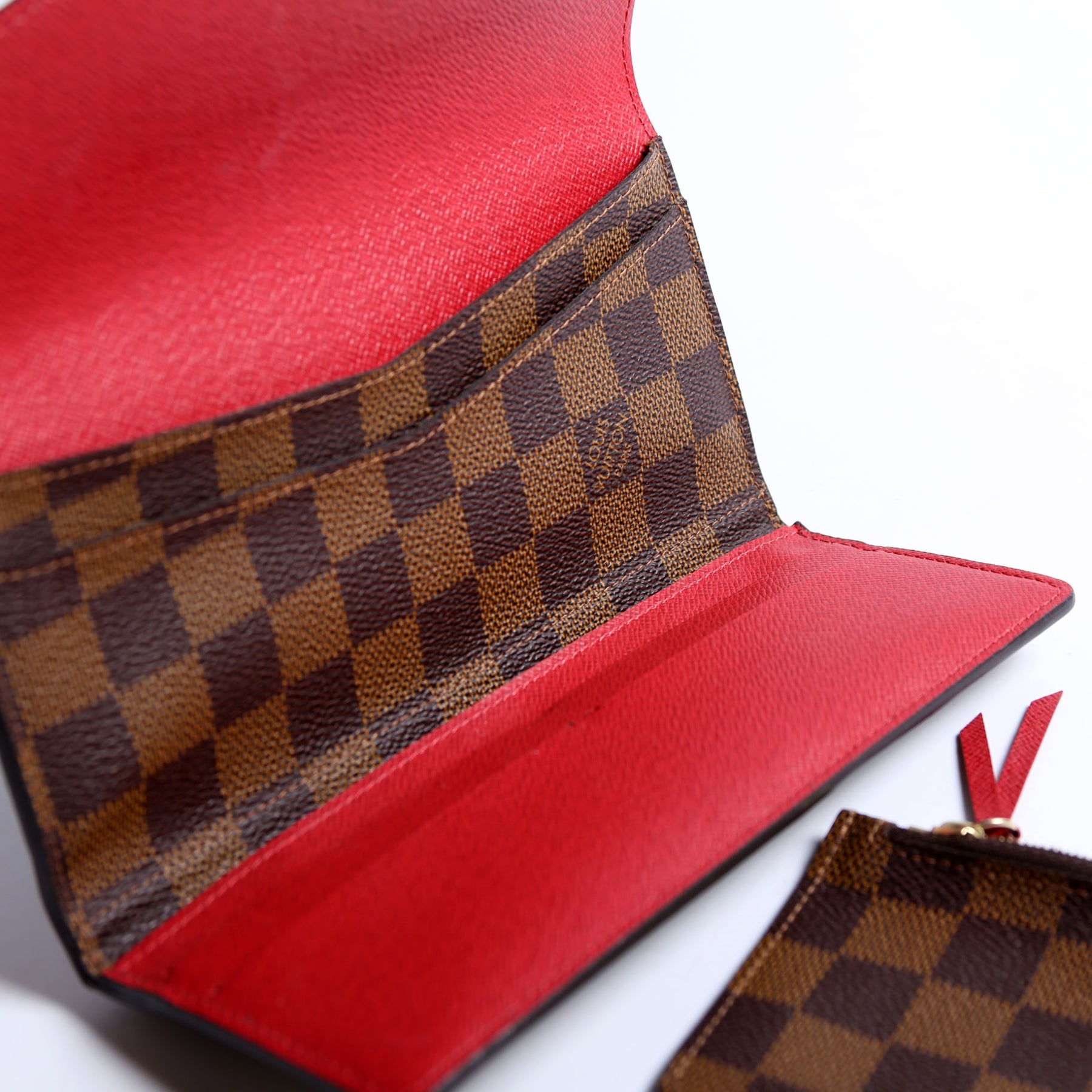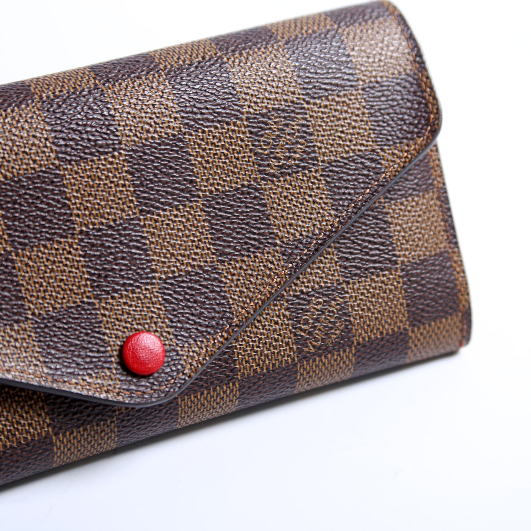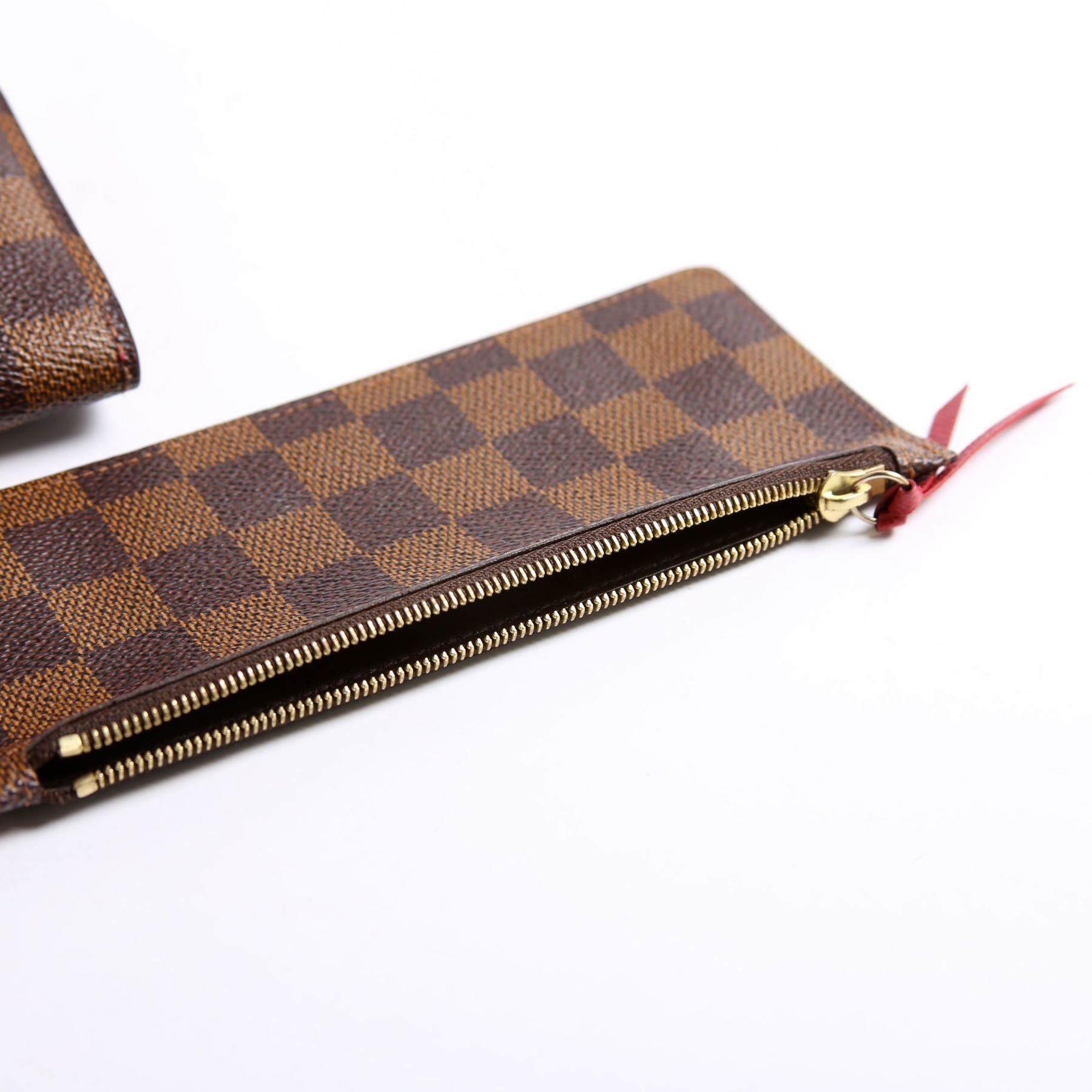 This pre-owned Louis Vuitton Josephine Wallet is guaranteed 100% authentic. The exterior is in the classic Damier Ebene coated canvas.