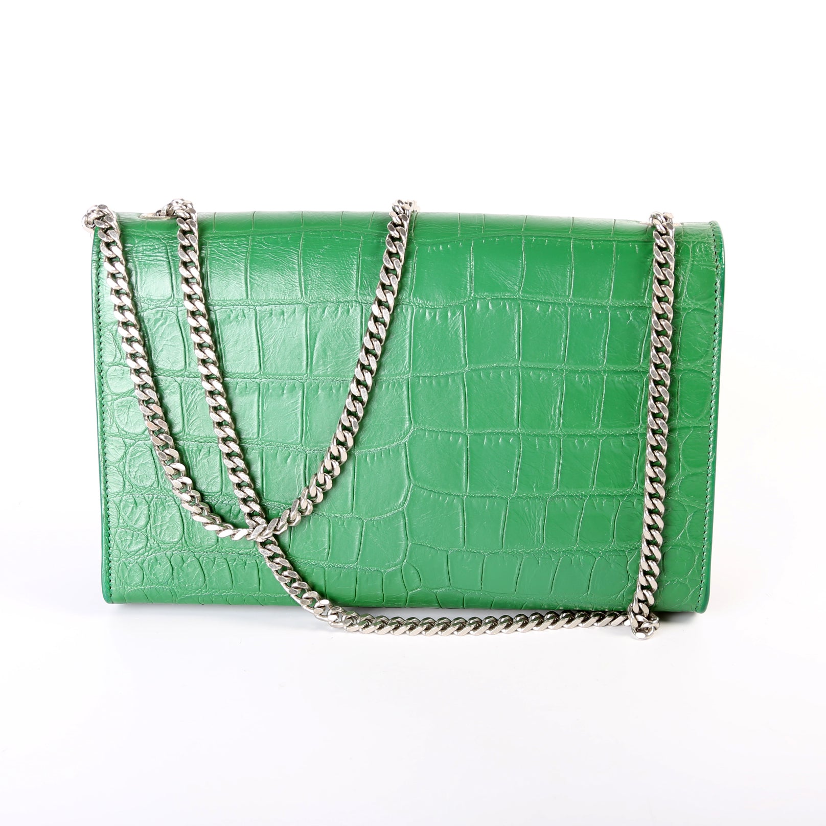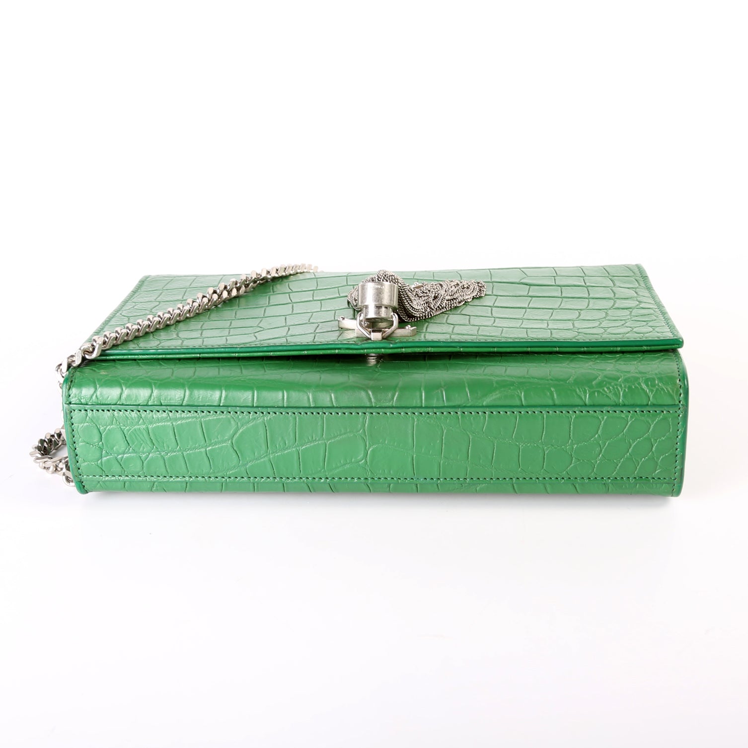 This pre-owned Saint Laurent Kate Tassel Satchel Medium is guaranteed 100% authentic. The exterior is in the classic Saint Laurent Crocodile embossed leather.