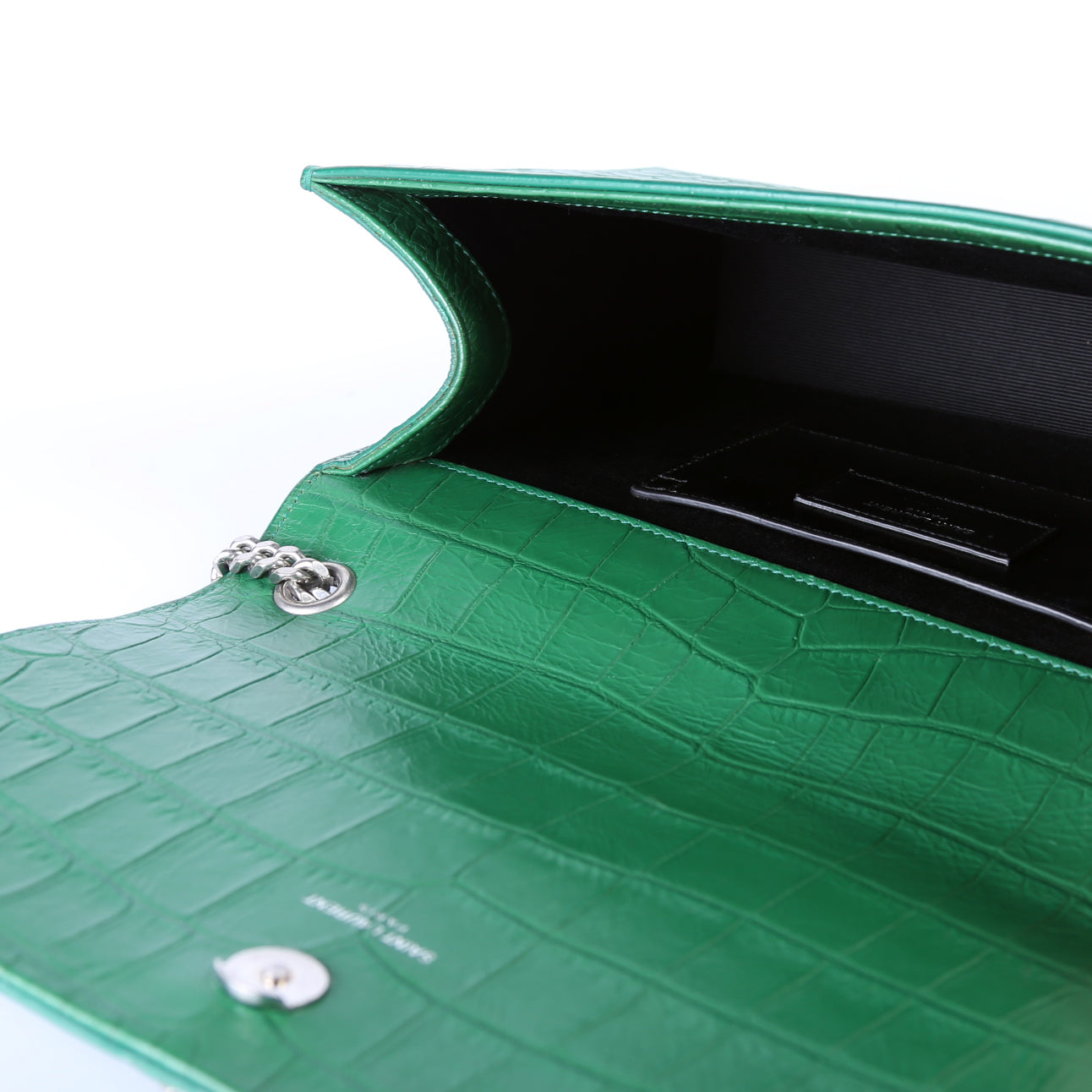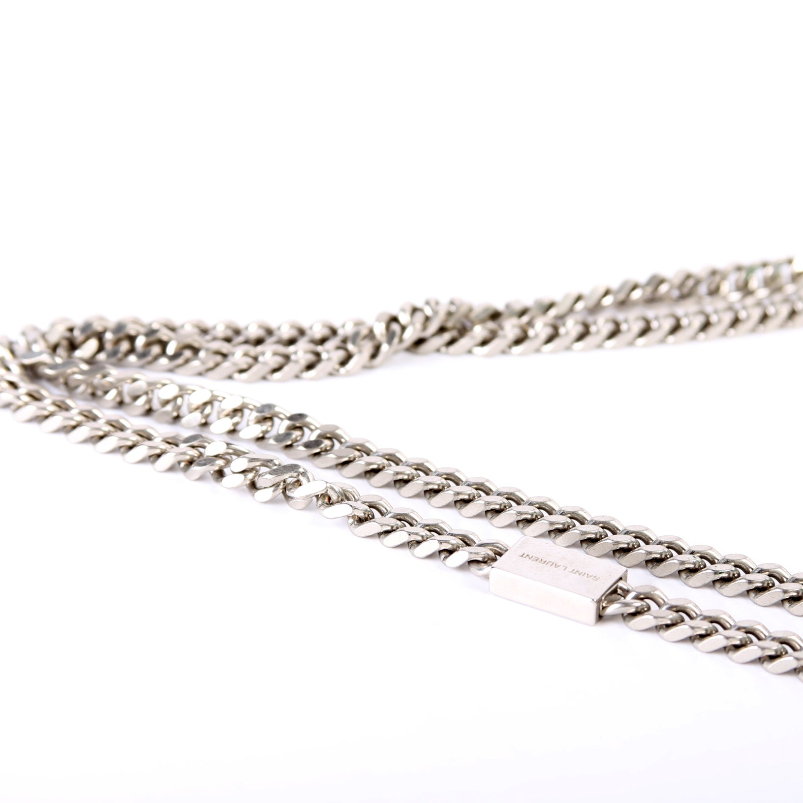 Hardware: The magnetic closure operates properly. The YSL logo shows light scratches.