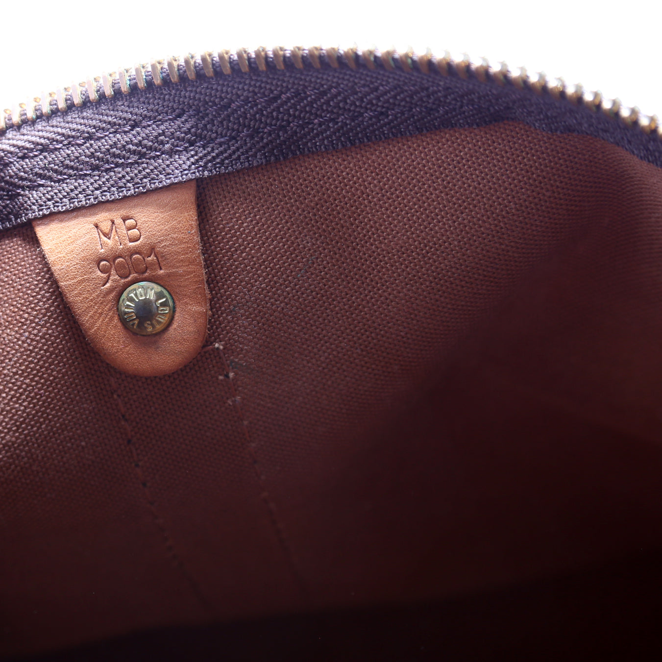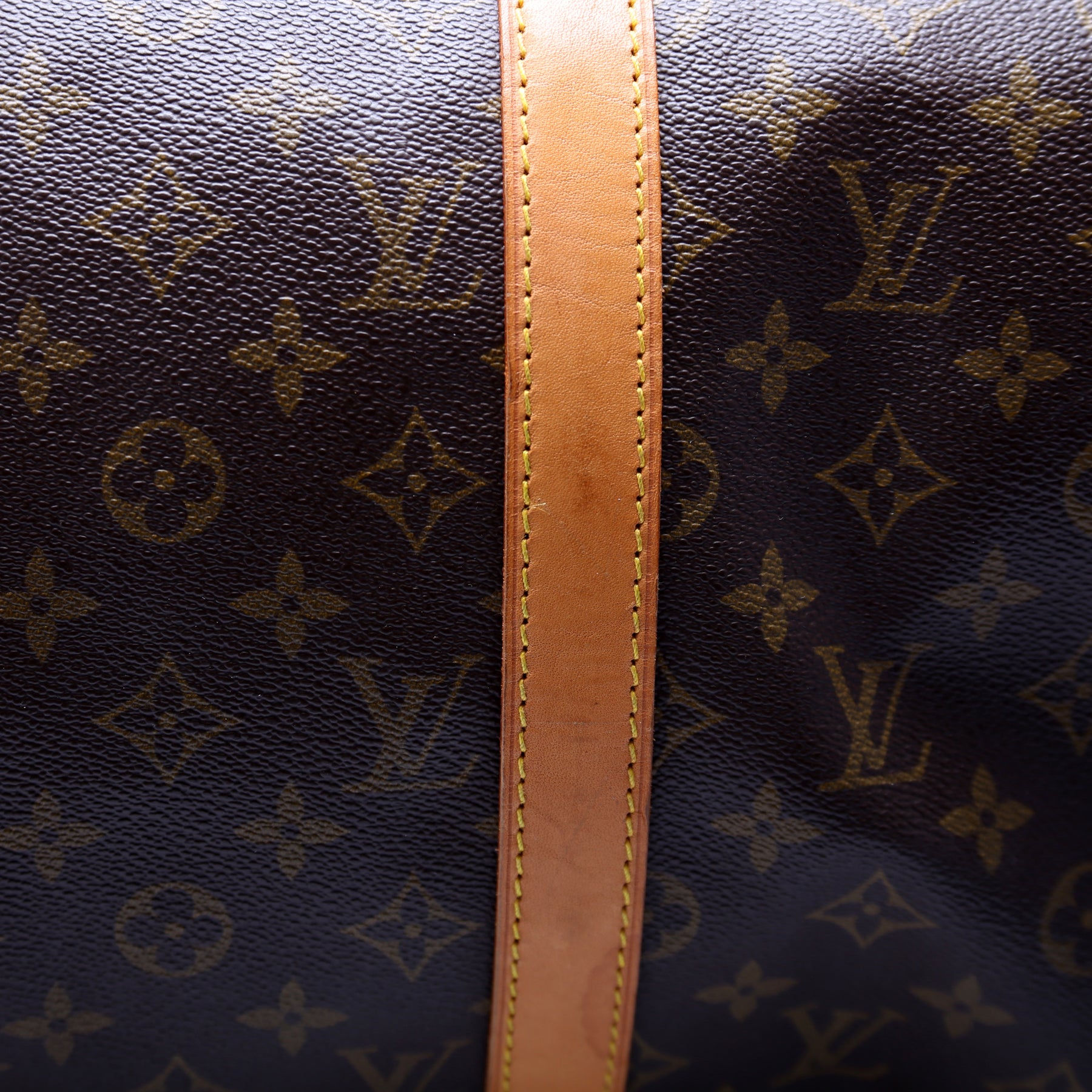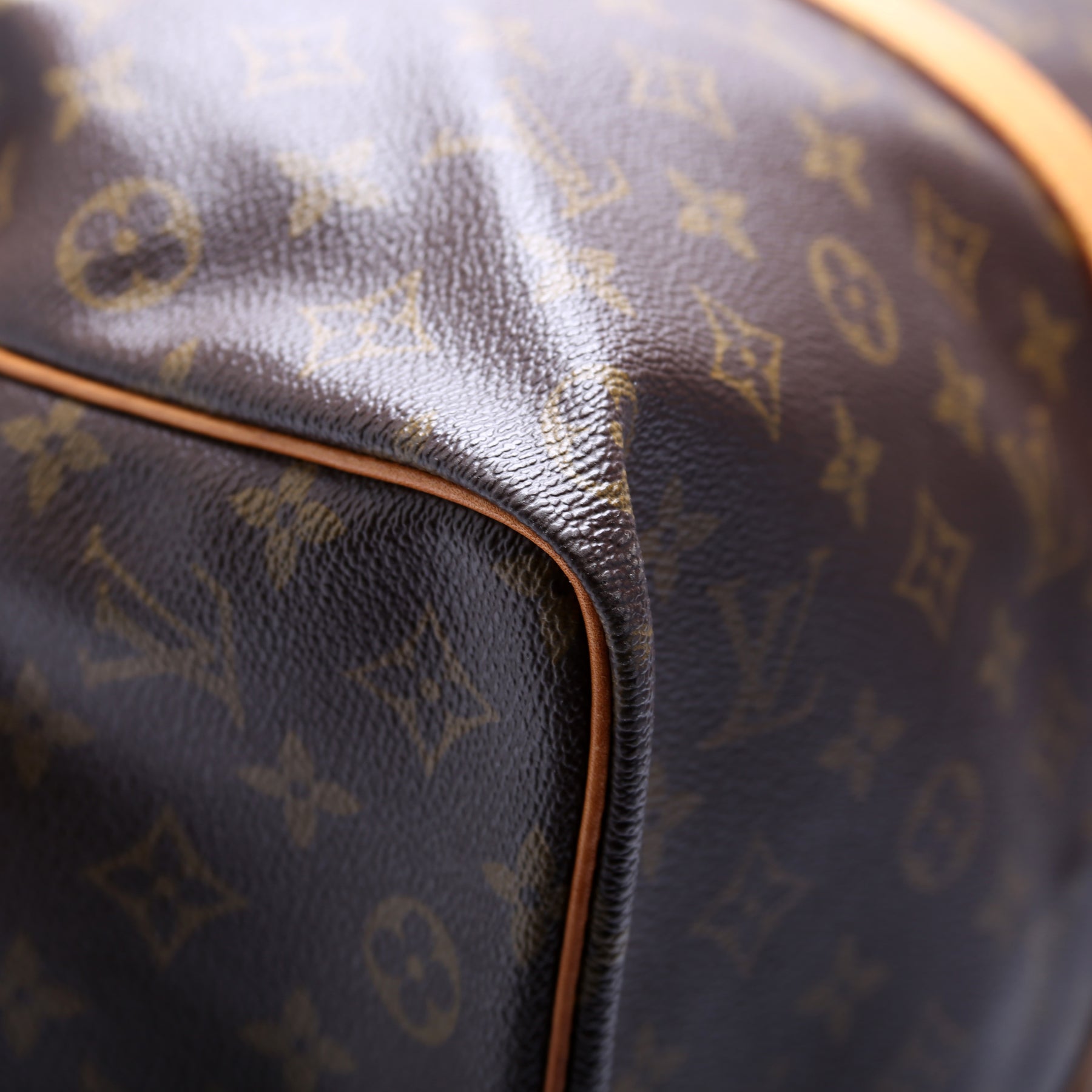 This pre-owned Louis Vuitton Keepall 50 is guaranteed 100% authentic. The exterior is in the classic Louis Vuitton Monogram coated canvas.