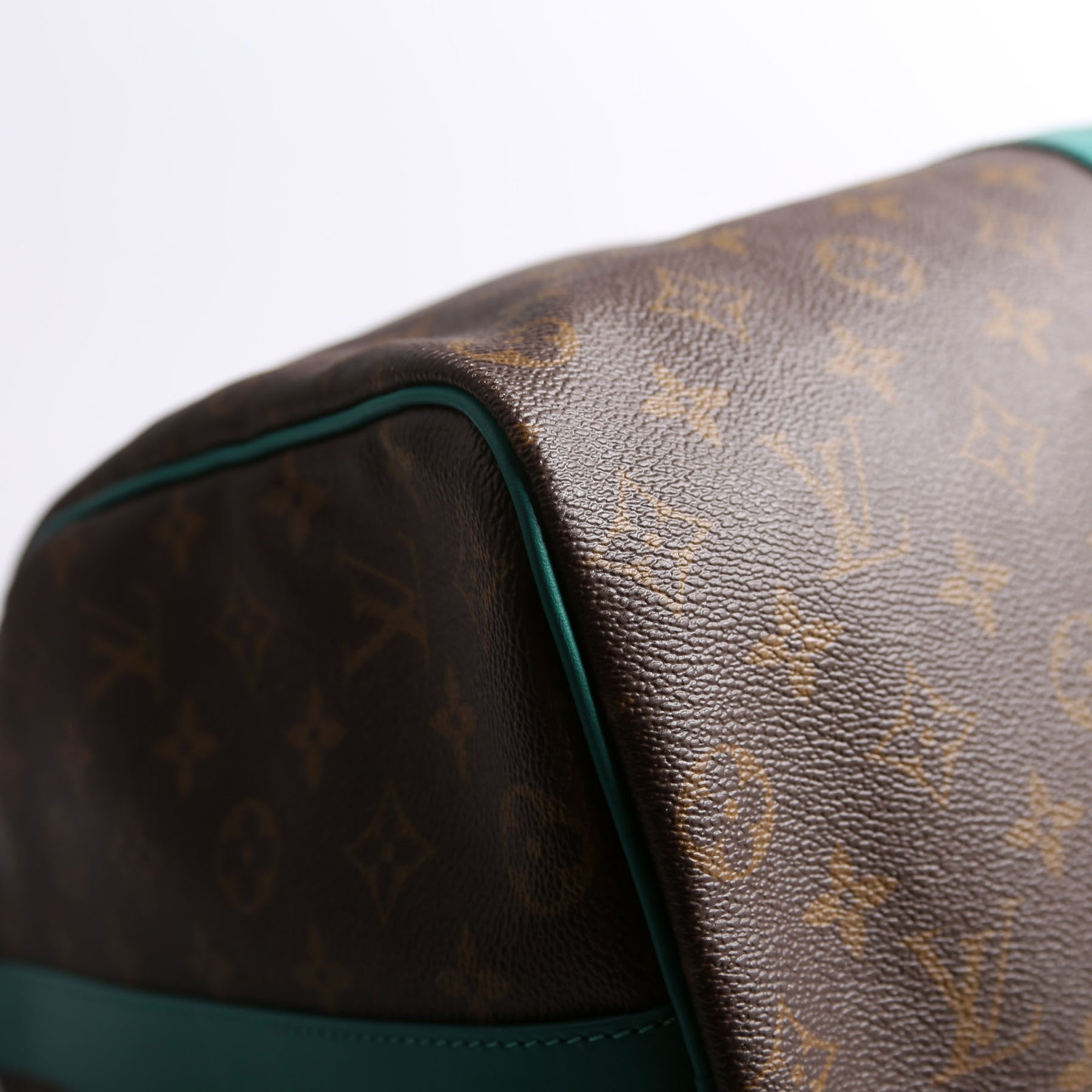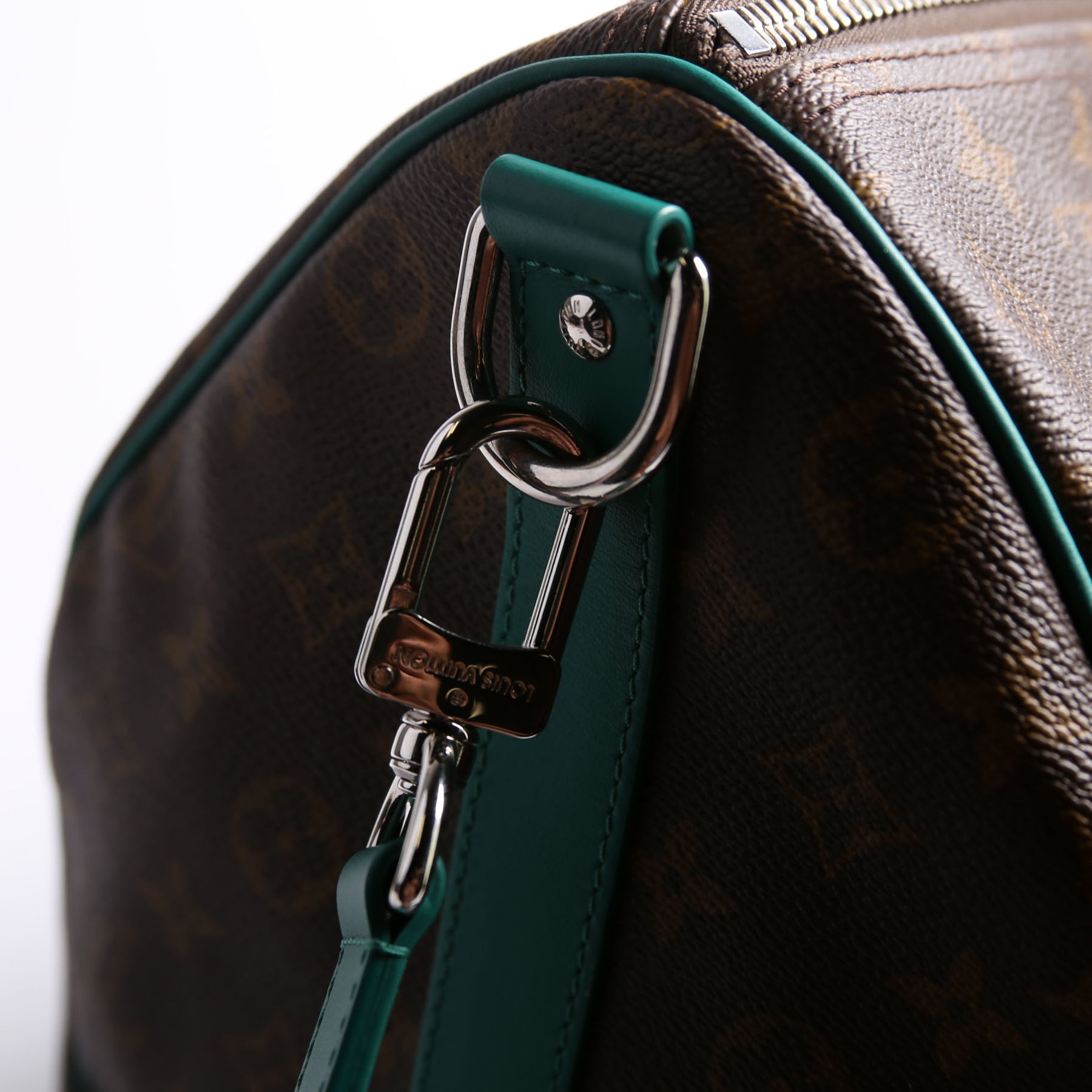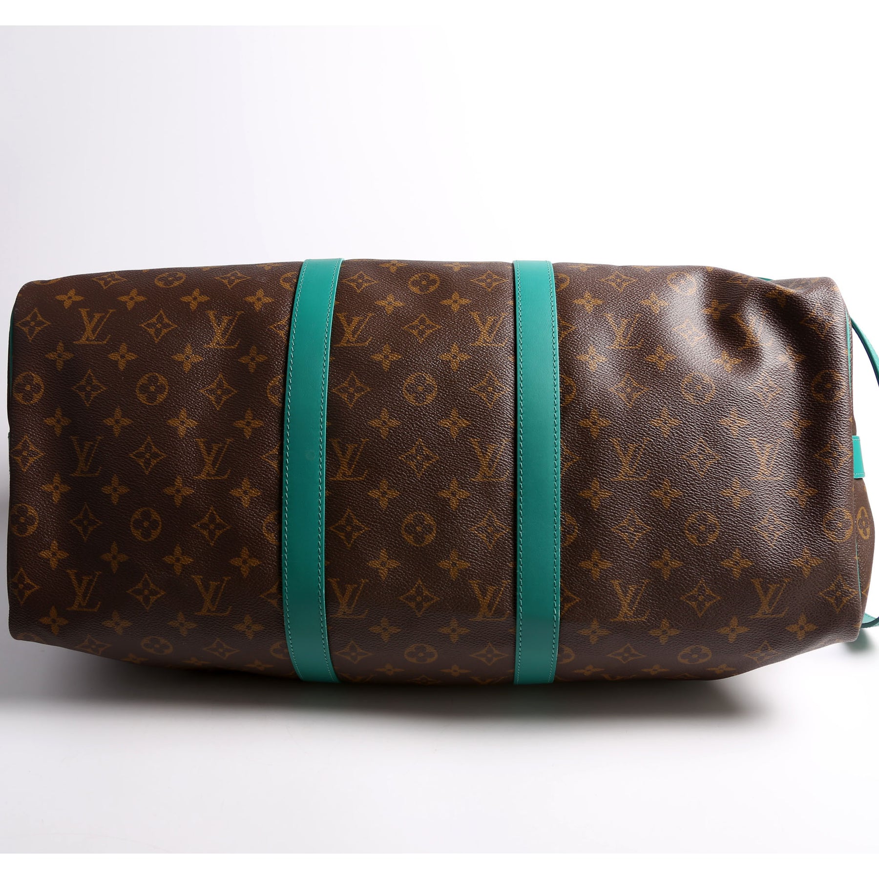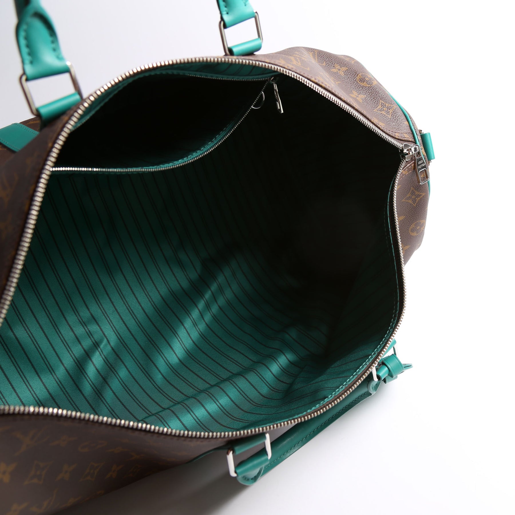 This pre-owned Louis Vuitton Keepall 50 Bandouliere is guaranteed 100% authentic. The exterior is in the classic Louis Vuitton Monogram coated canvas.