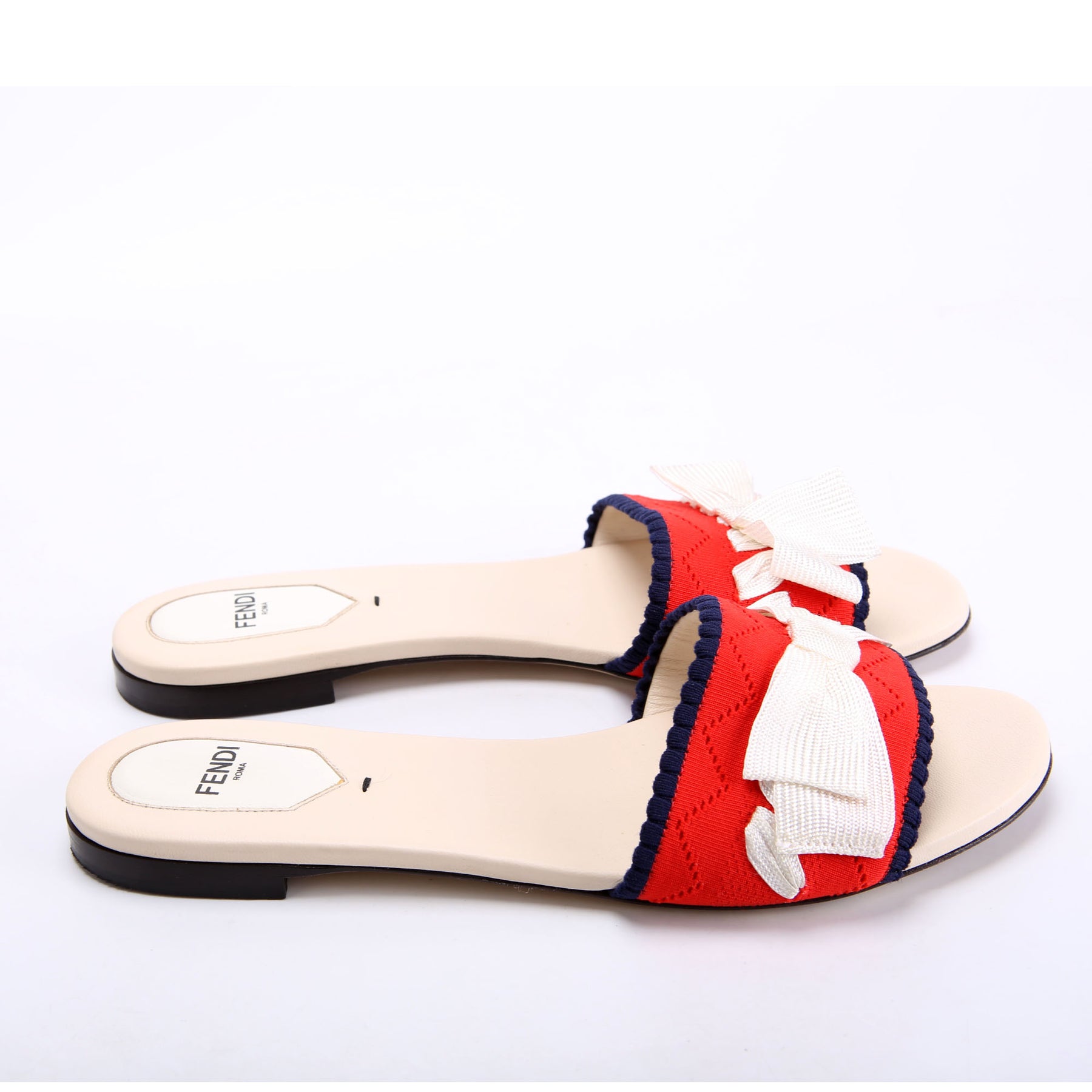 This pre-owned Fendi Knit Bow Embellished Flats is guaranteed 100% authentic.