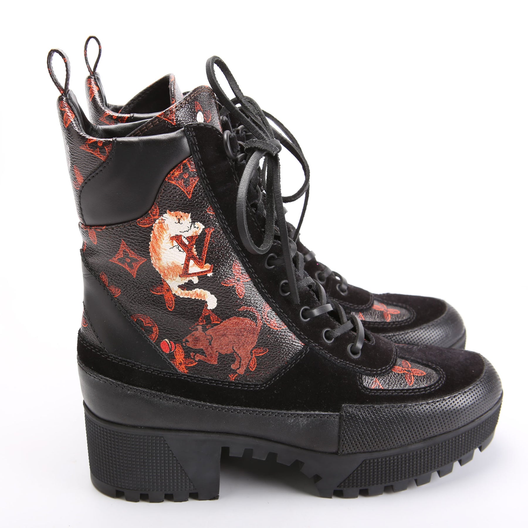 This pre-owned Louis Vuitton Laureate Desert Ankle Catogram Boots is guaranteed 100% authentic.