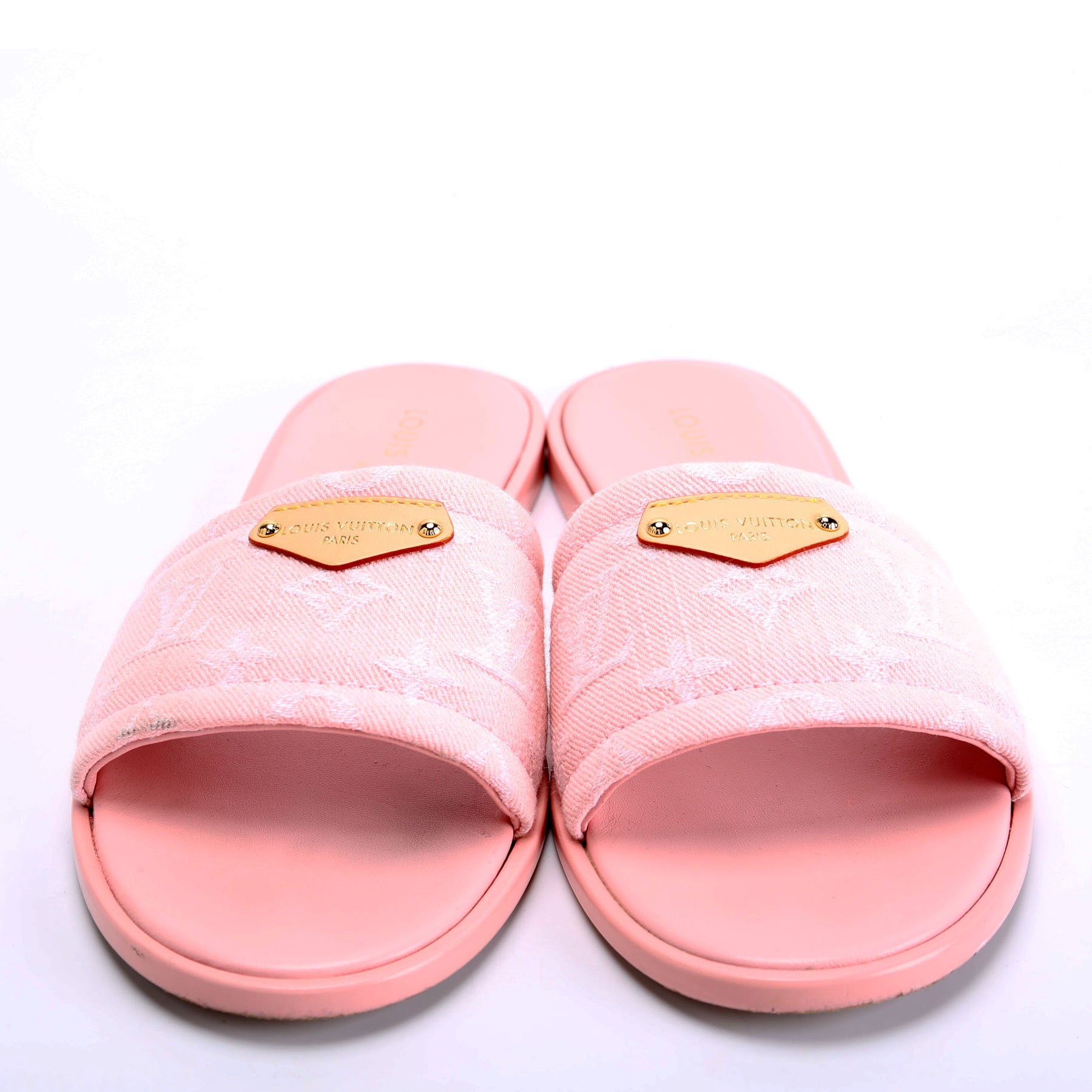 Lily Denim Monogram Flat Mules Size 41 Pink