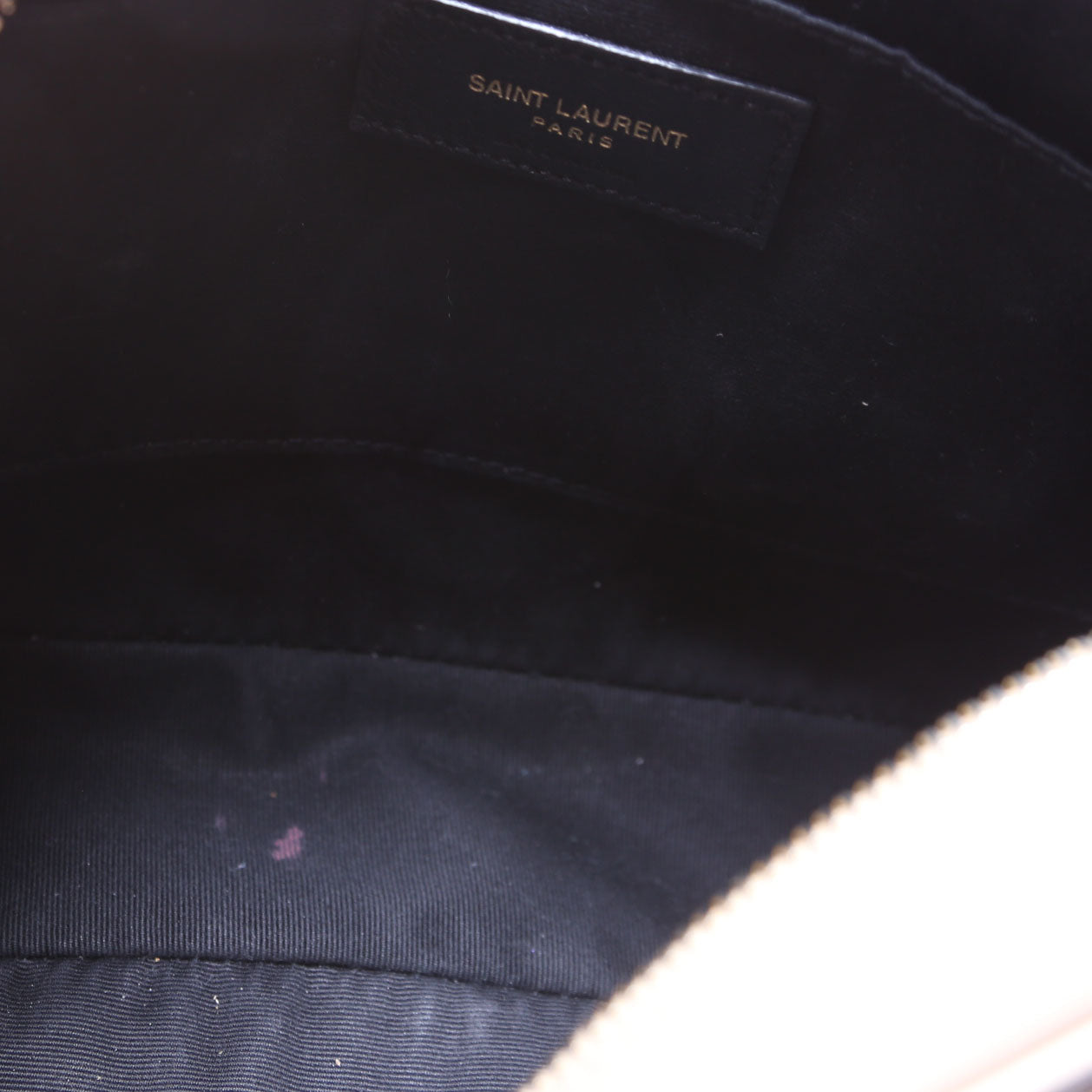 Interior: The interior shows major wear. The interior features one open pocket.