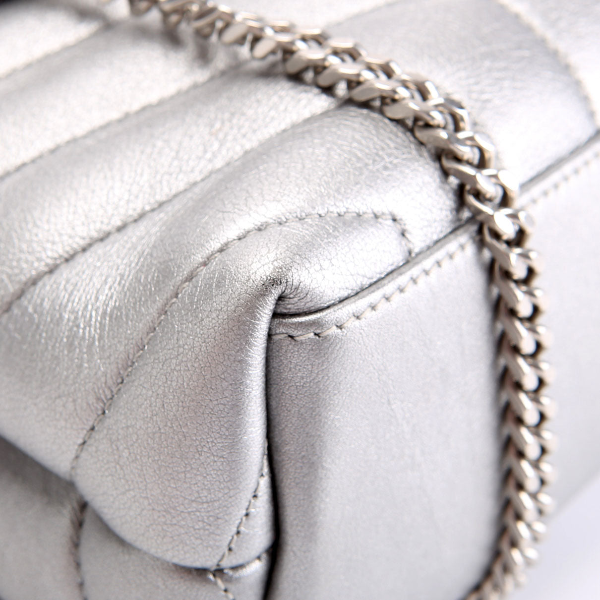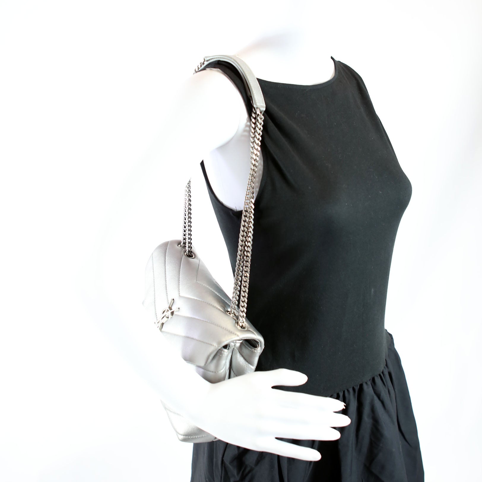 This pre-owned Saint Laurent Loulou Satchel Small is guaranteed 100% authentic. The exterior is in the classic Saint Laurent Leather.