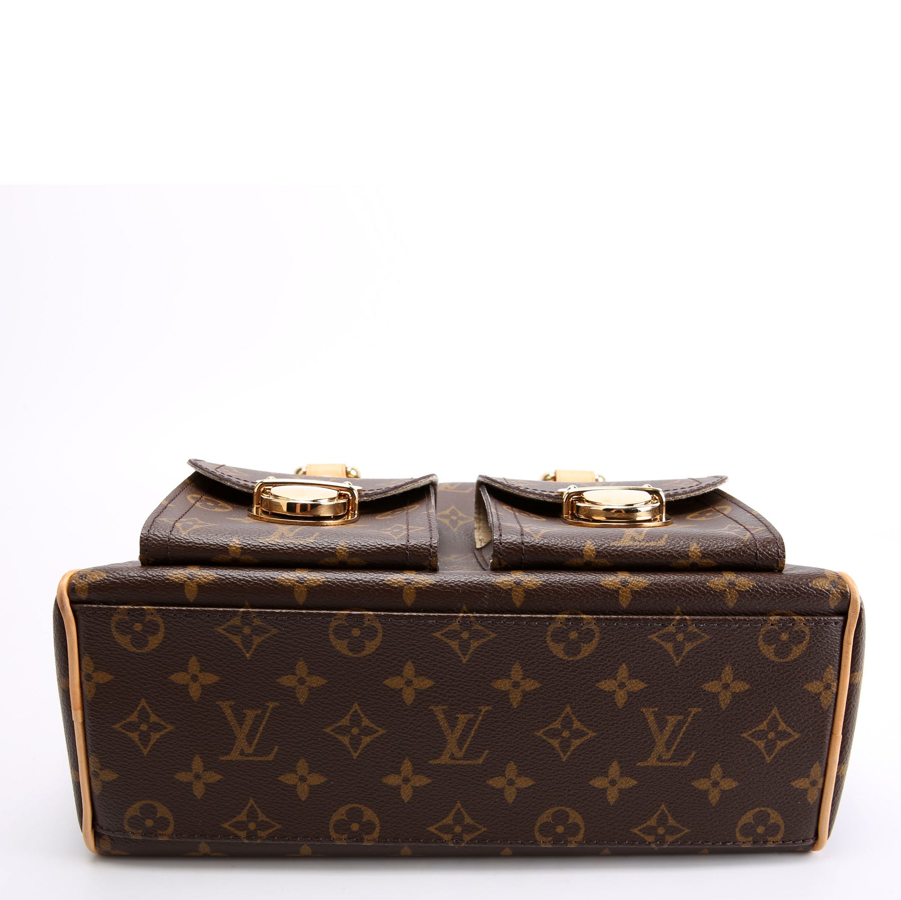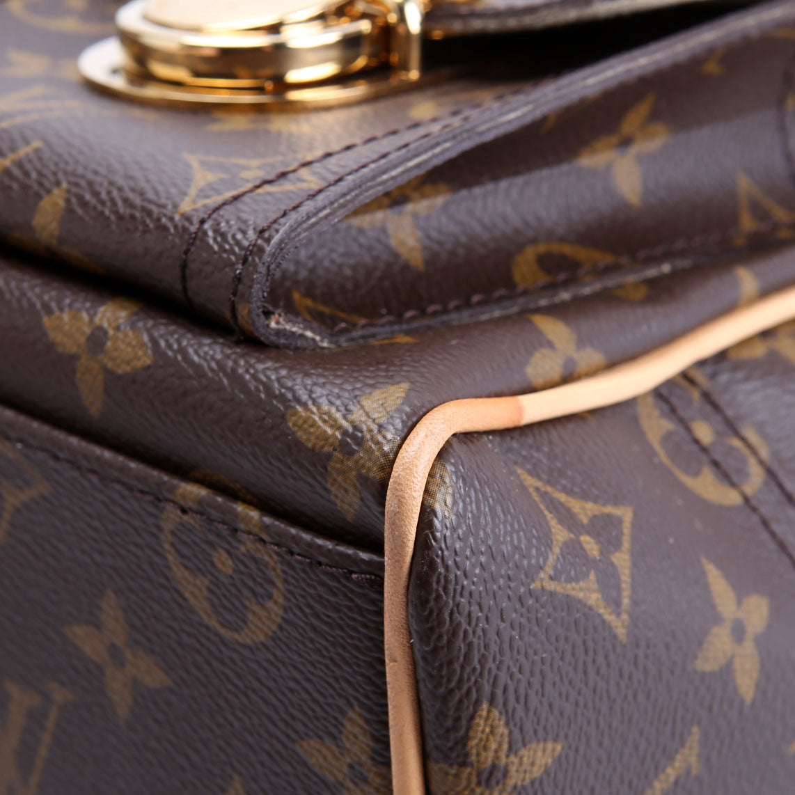 This pre-owned Louis Vuitton Manhattan PM is guaranteed 100% authentic. The exterior is in the classic Louis Vuitton Monogram coated canvas.