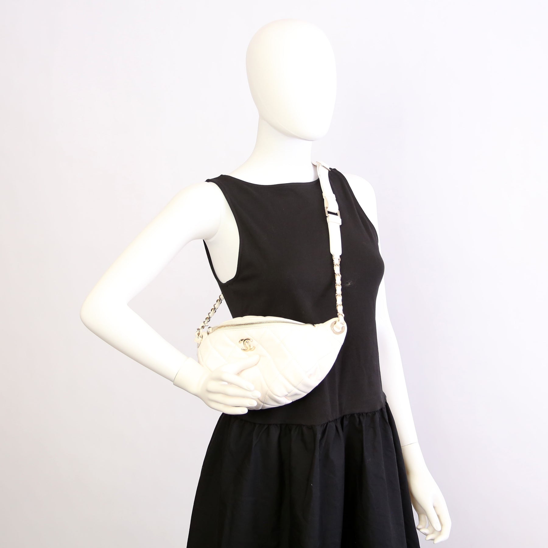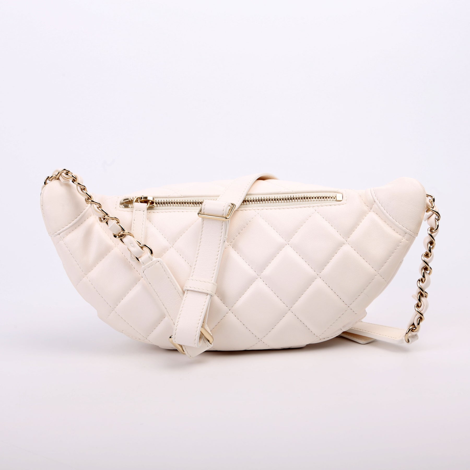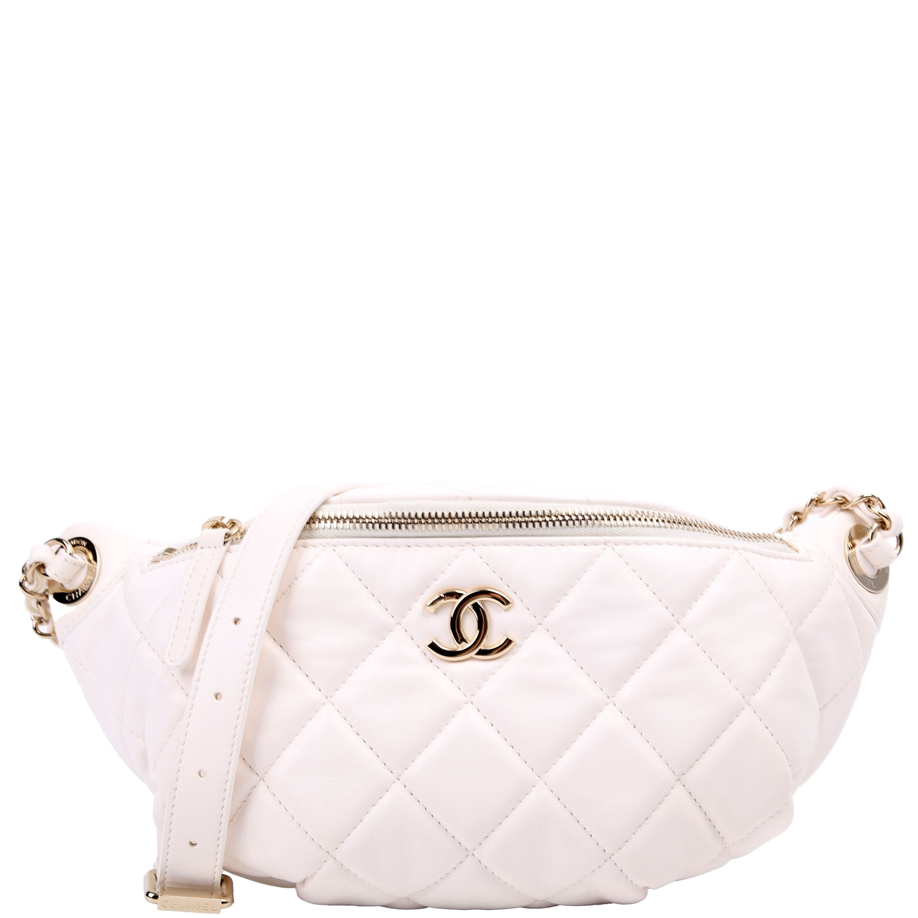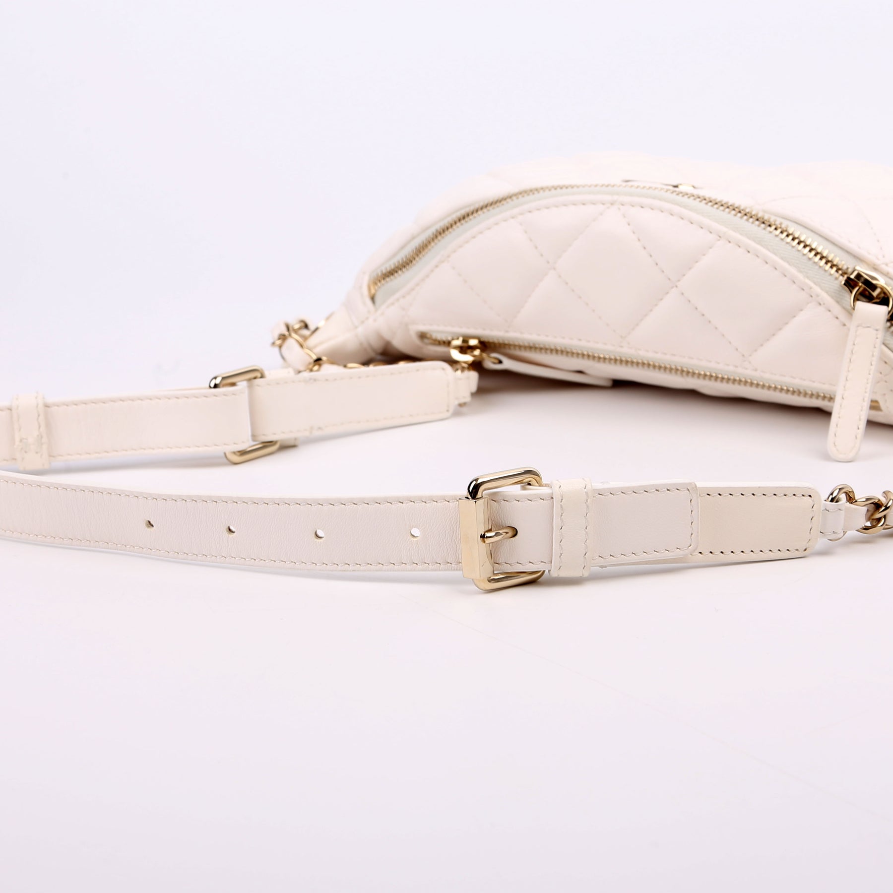 This pre-owned Chanel Matelasse Waist Chain Lambskin Bag is guaranteed 100% authentic.