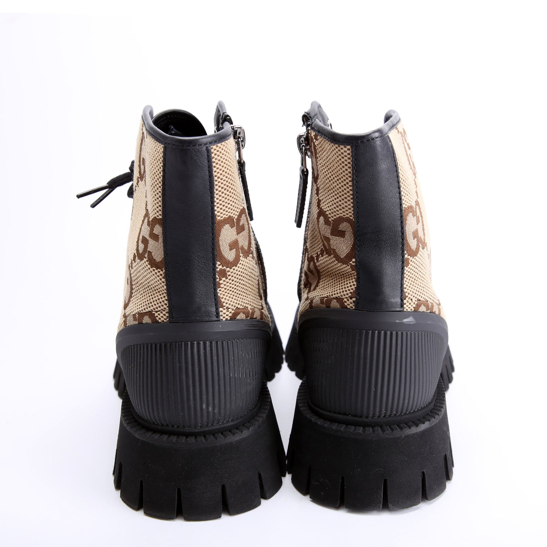 These pre-owned Gucci Maxi GG Canvas Lace Up Combat Boots Men's are guaranteed 100% authentic.