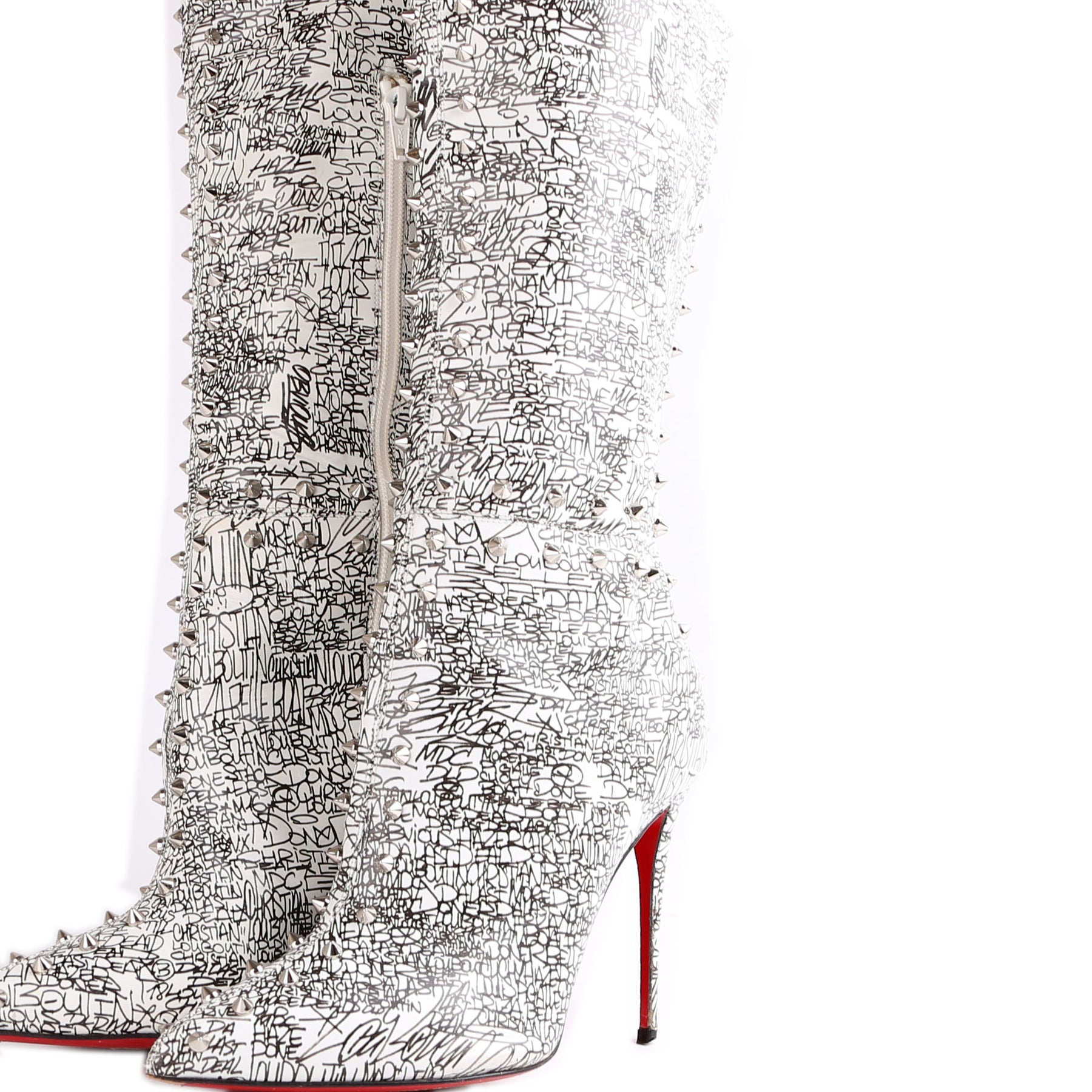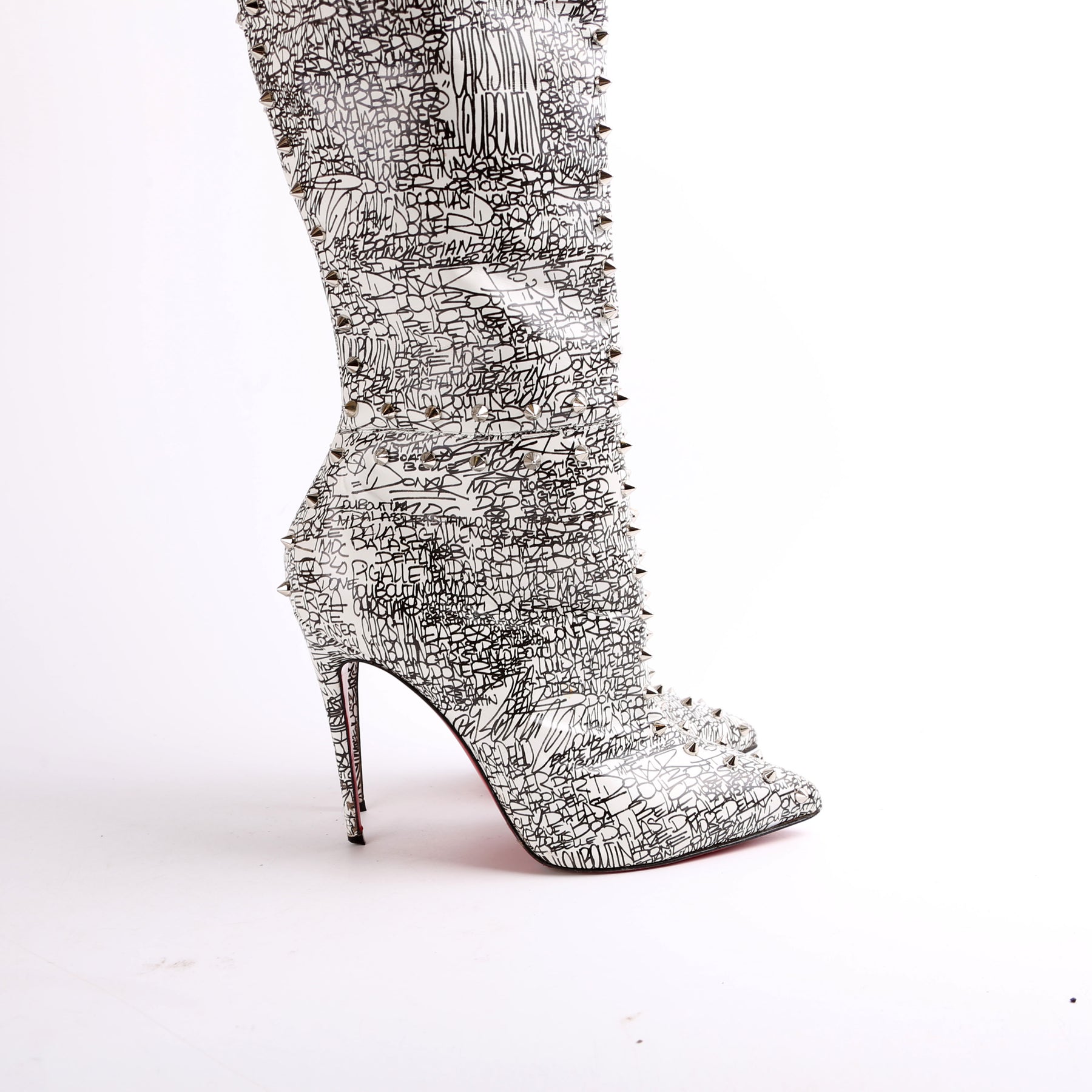 These pre-owned Christian Louboutin Metrolisse 100 Thigh-High Boots are guaranteed 100% authentic.