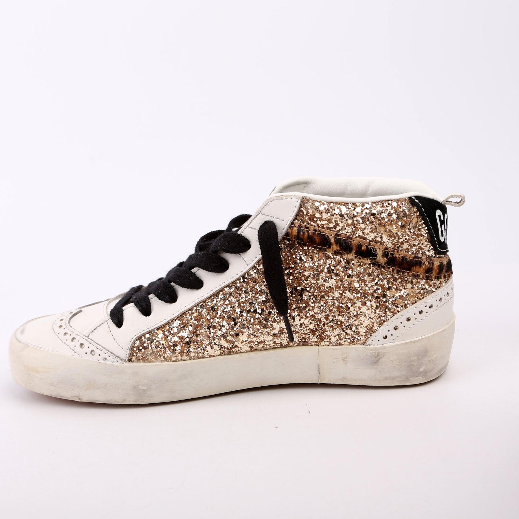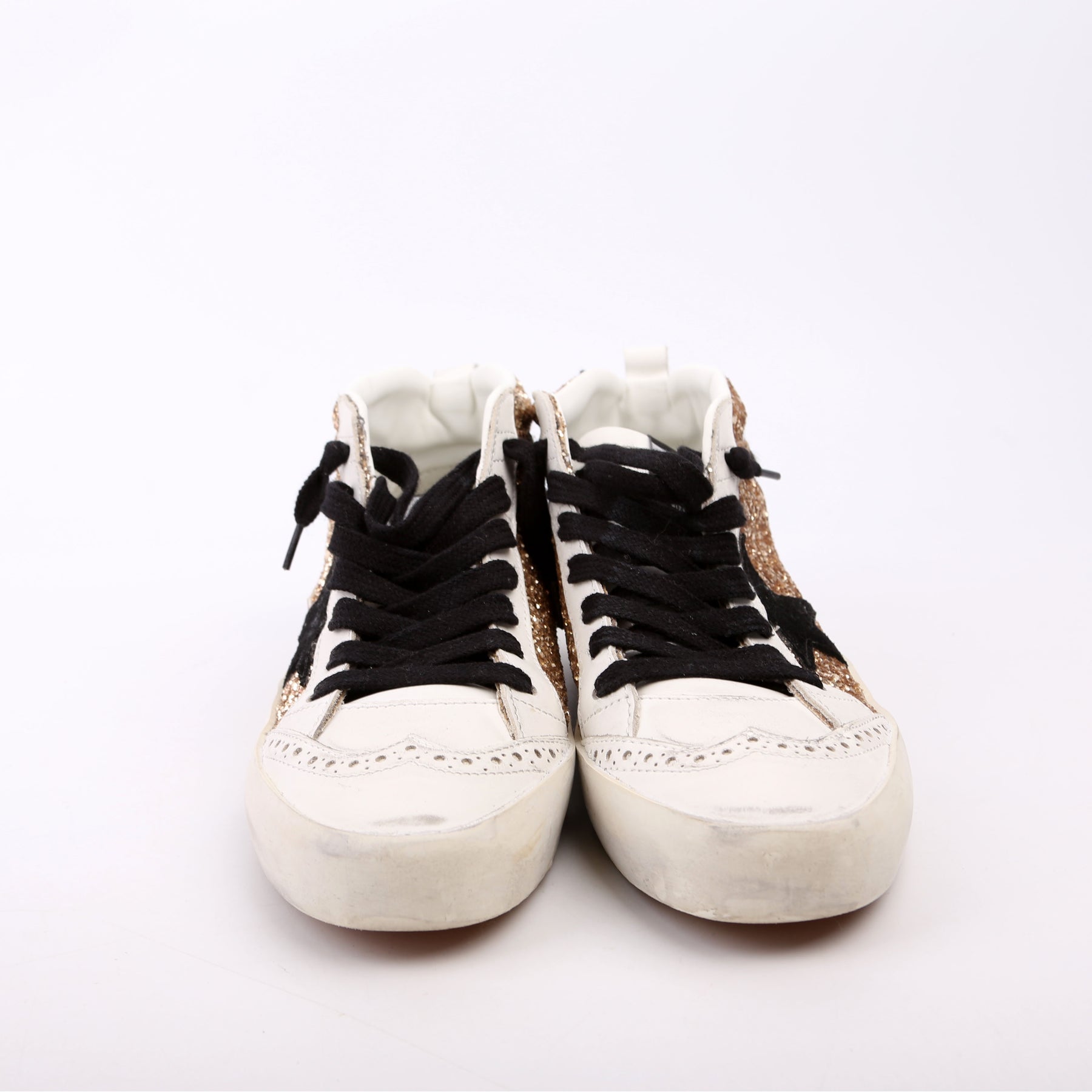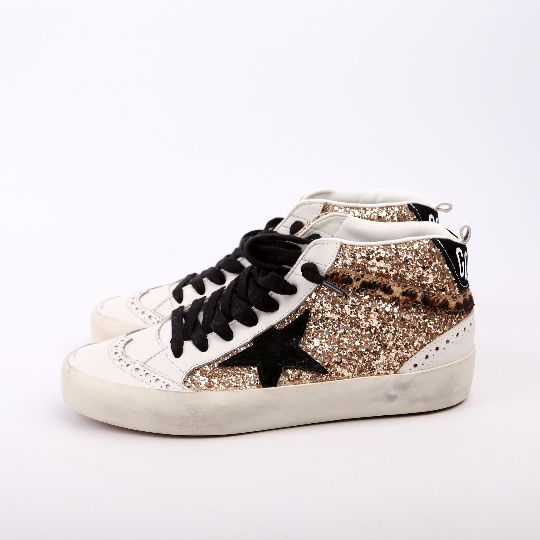These pre-owned Golden Goose Midstar Glitter Sneakers are guaranteed 100% authentic.
