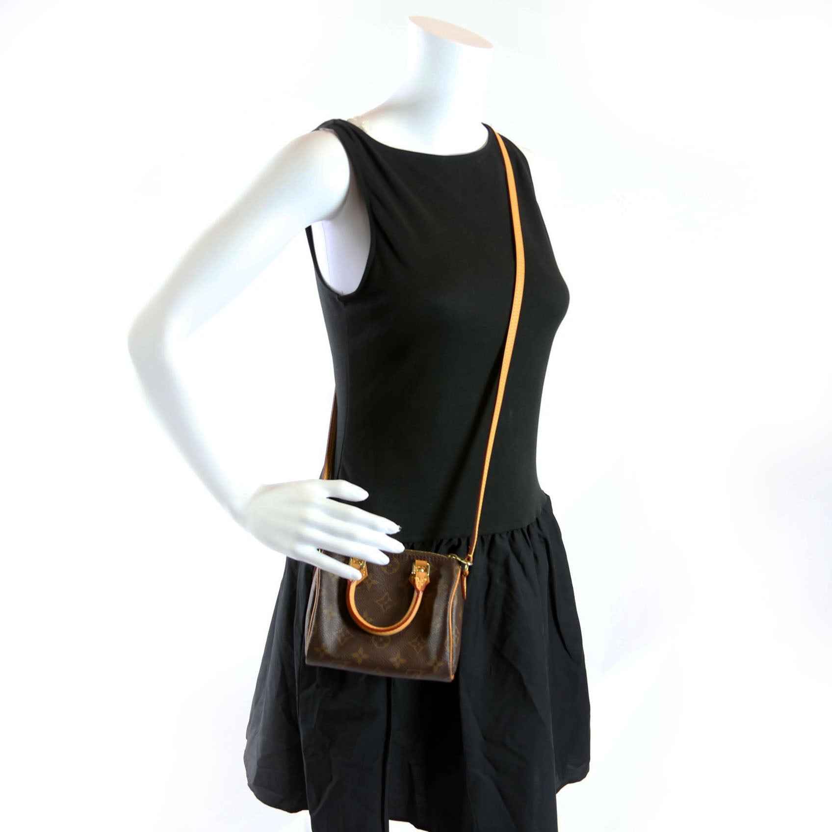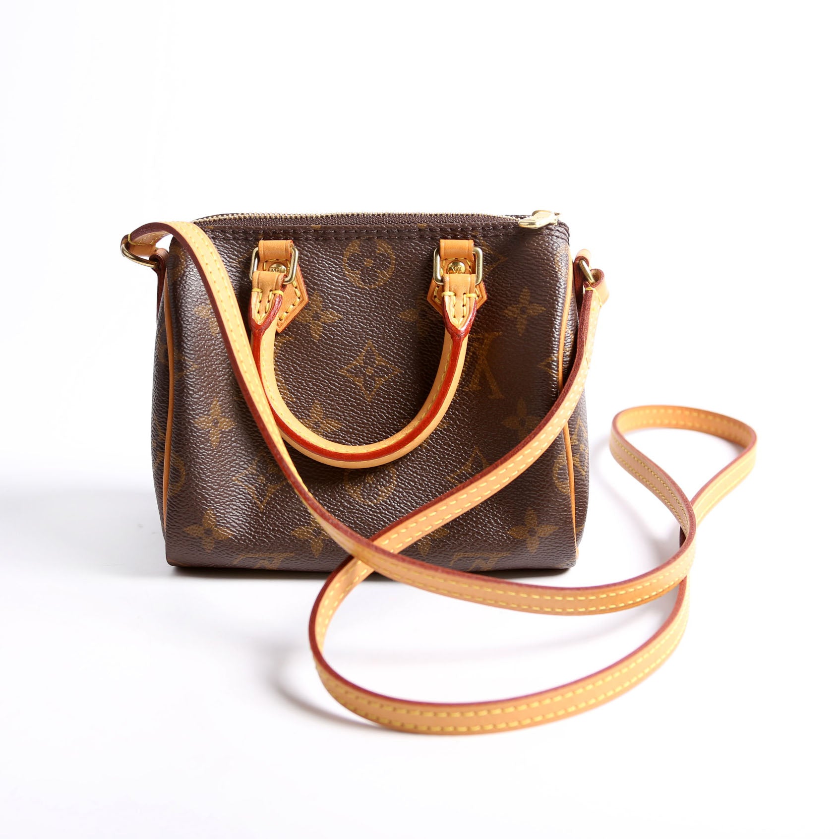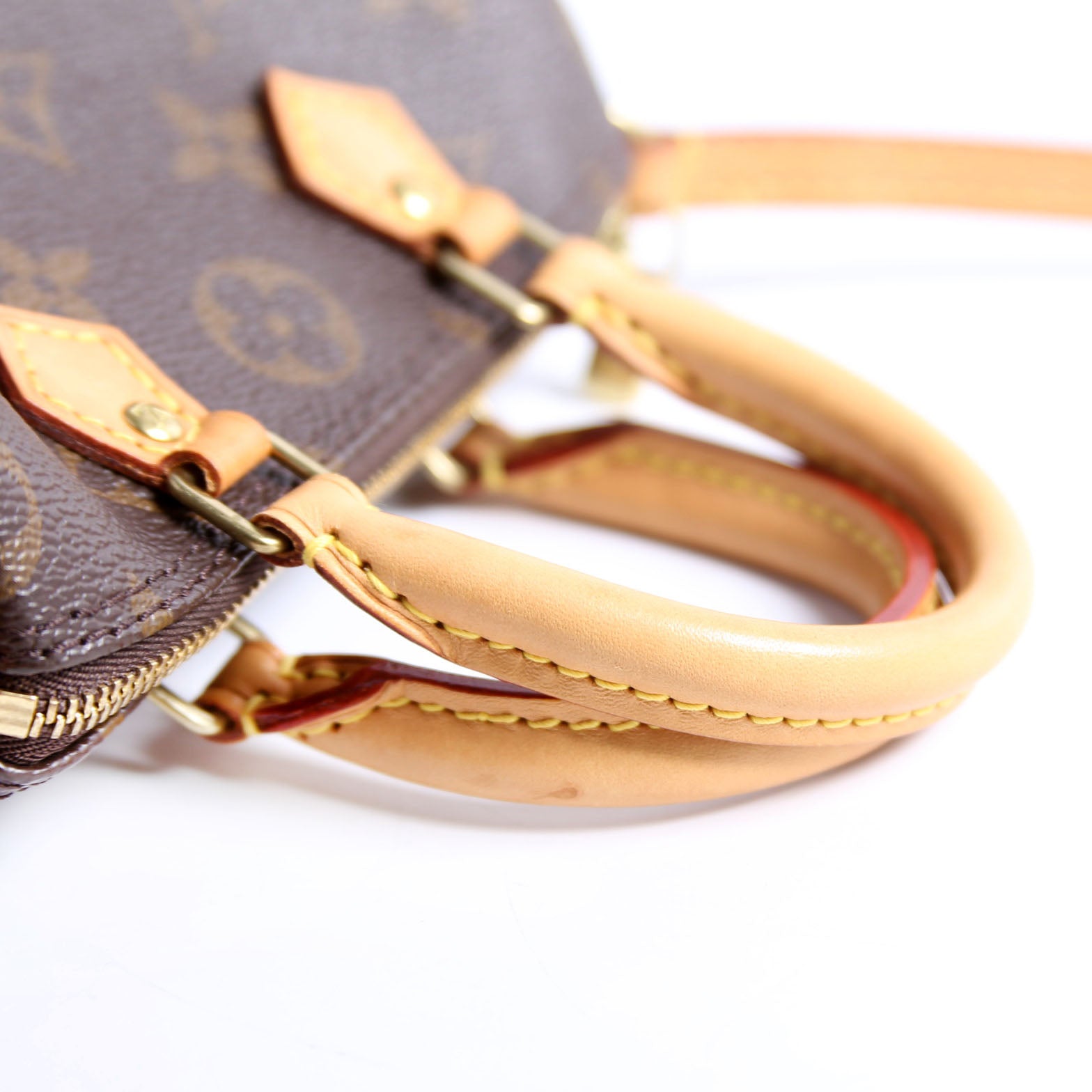This pre-owned Louis Vuitton Nano Speedy Monogram is guaranteed 100% authentic. The exterior is in the classic Louis Vuitton Monogram coated canvas.