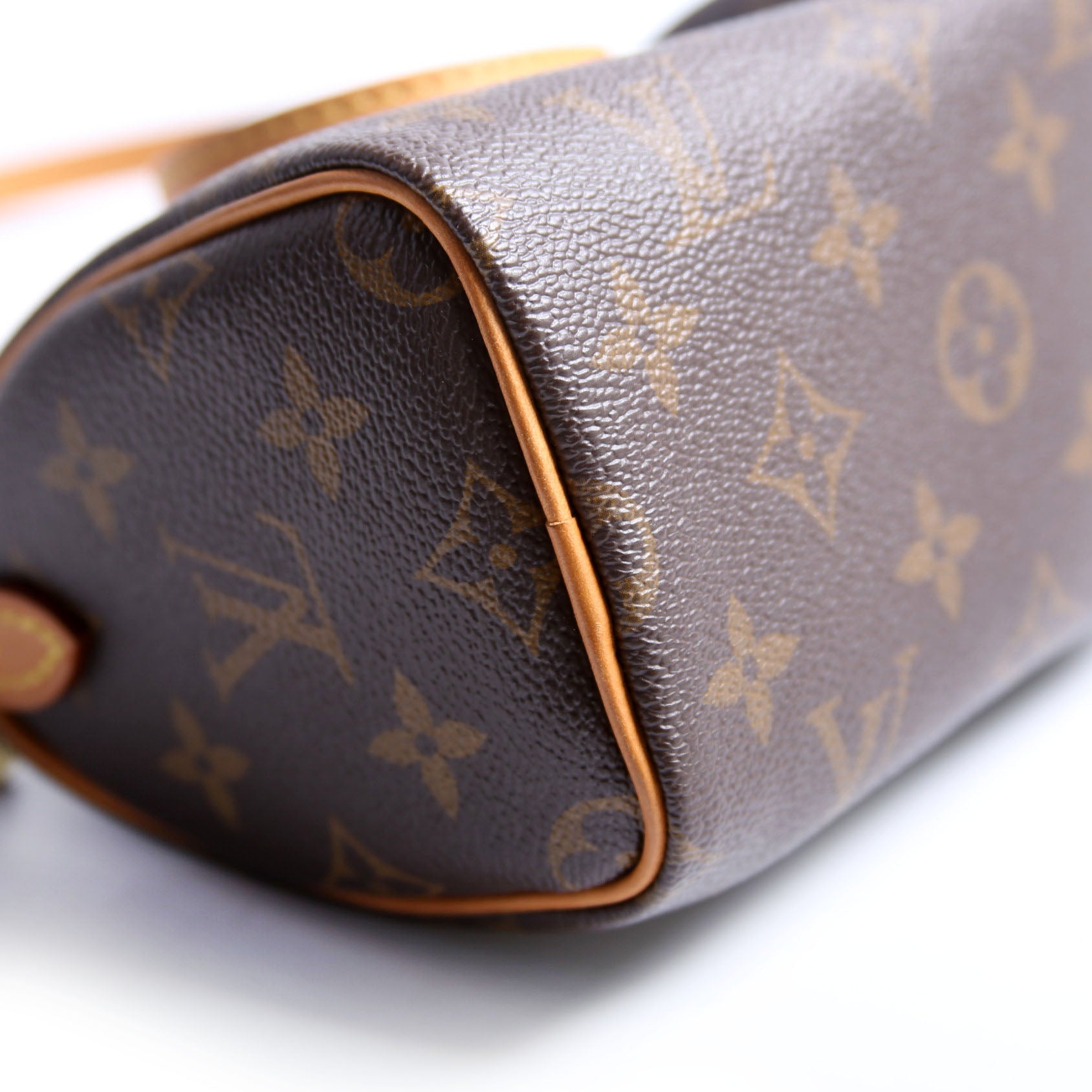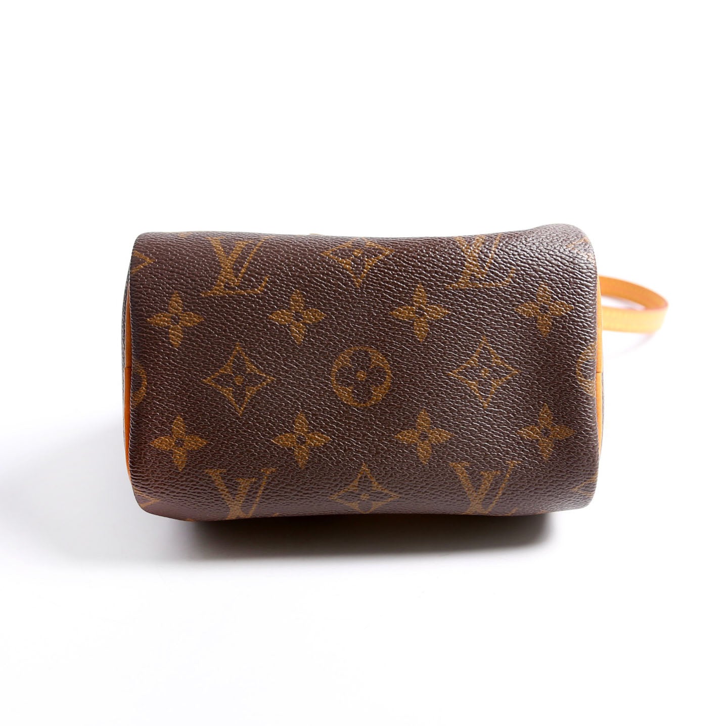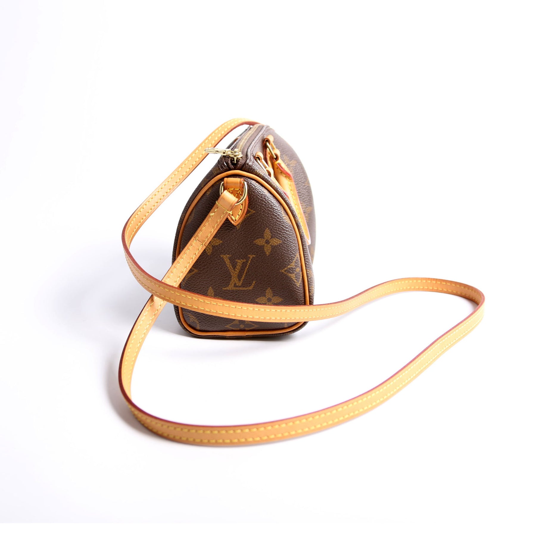 This pre-owned Louis Vuitton Nano Speedy Monogram is guaranteed 100% authentic. The exterior is in the classic Louis Vuitton Monogram coated canvas.