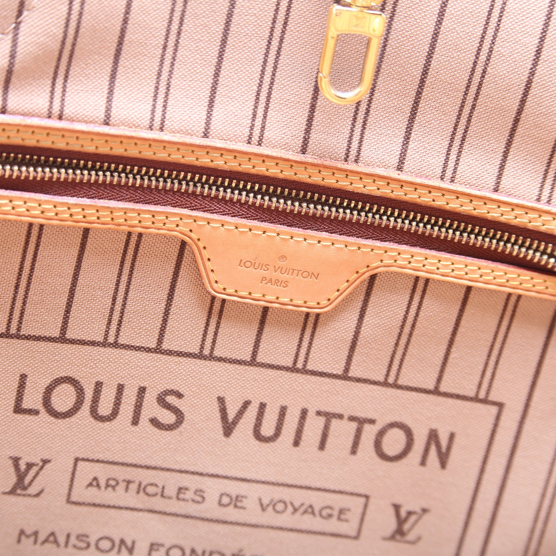 This pre-owned Louis Vuitton Neverfull MM is guaranteed 100% authentic. The exterior is in the classic Louis Vuitton Monogram coated canvas.