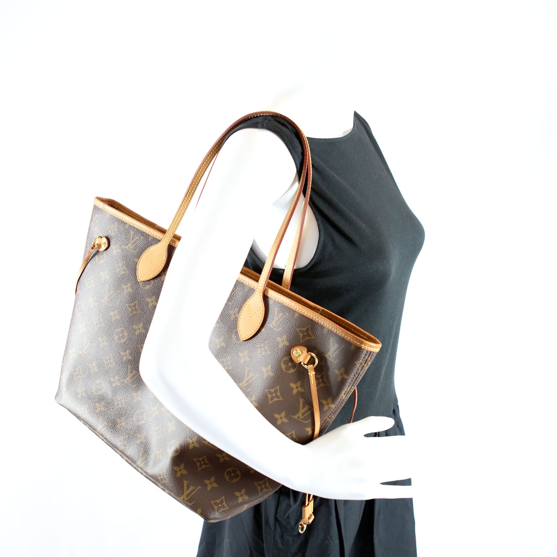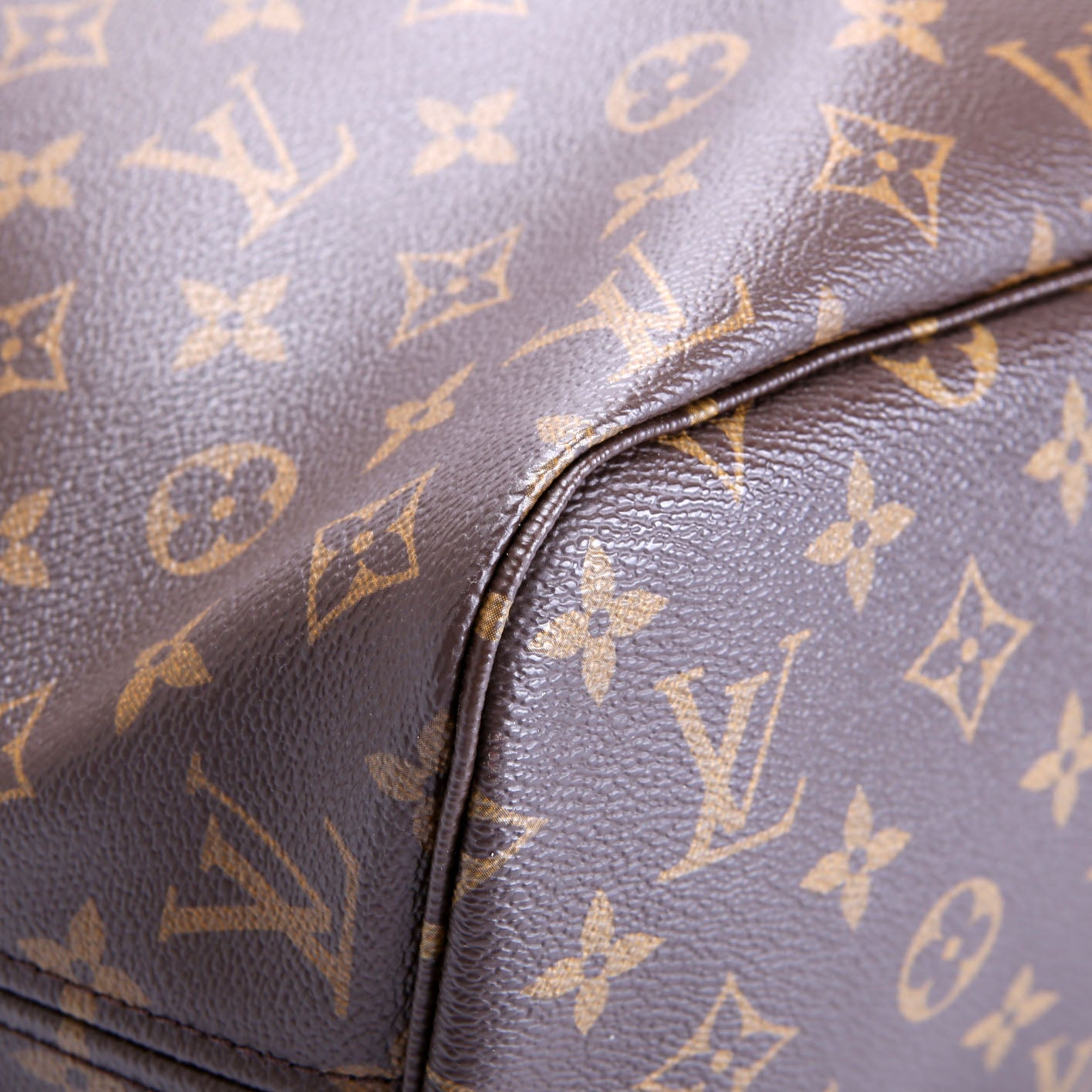 This pre-owned Louis Vuitton Neverfull MM is guaranteed 100% authentic. The exterior is in the classic Louis Vuitton Monogram coated canvas.