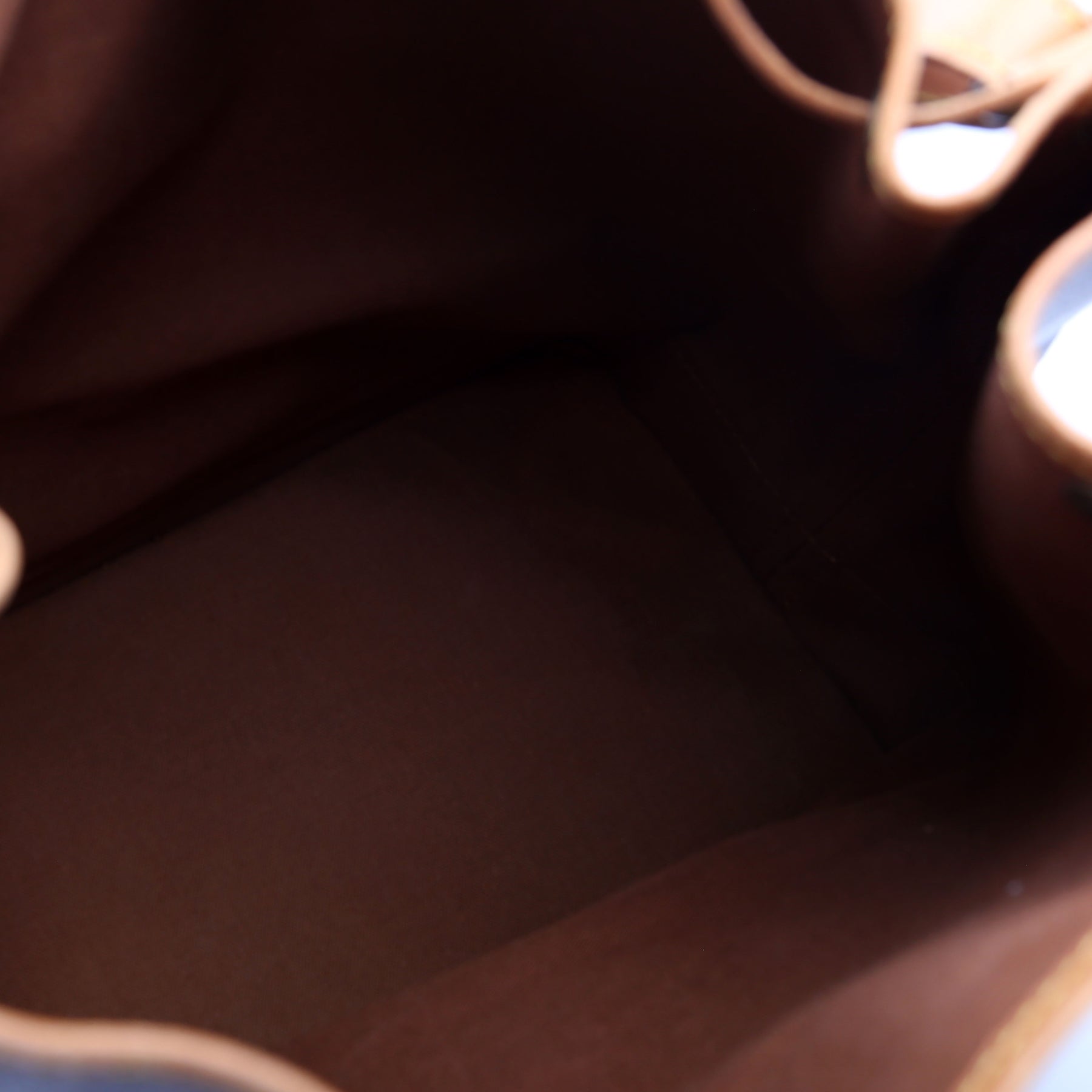 Hardware: The drawstring functions properly. The leather shows light wear and discoloration. The hardware shows light wear.