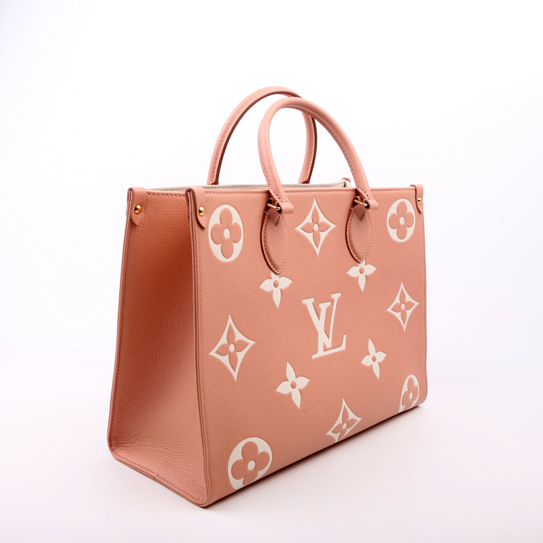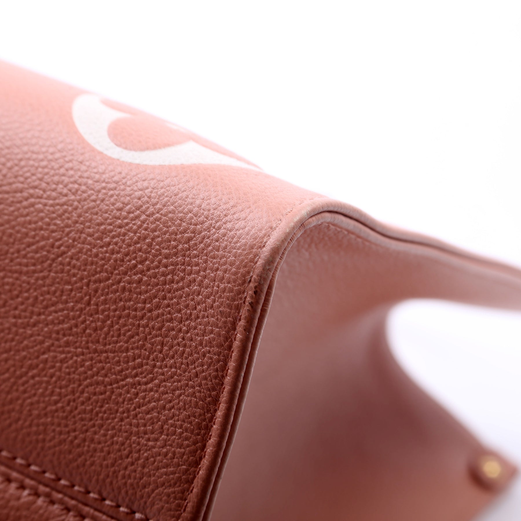 This pre-owned Louis Vuitton ONTHEGO MM is guaranteed 100% authentic. The exterior is in the classic Louis Vuitton Bicolor Empreinte leather.