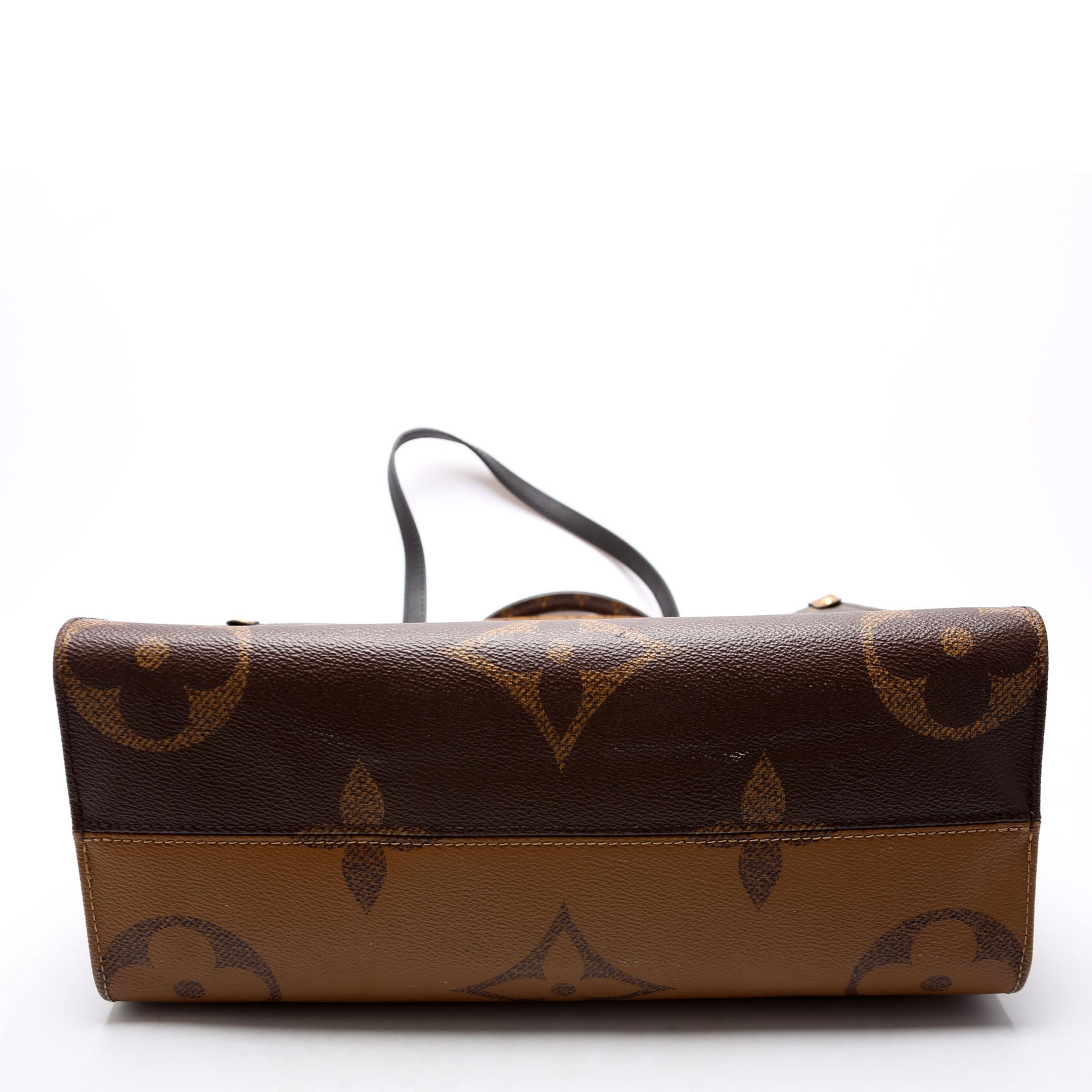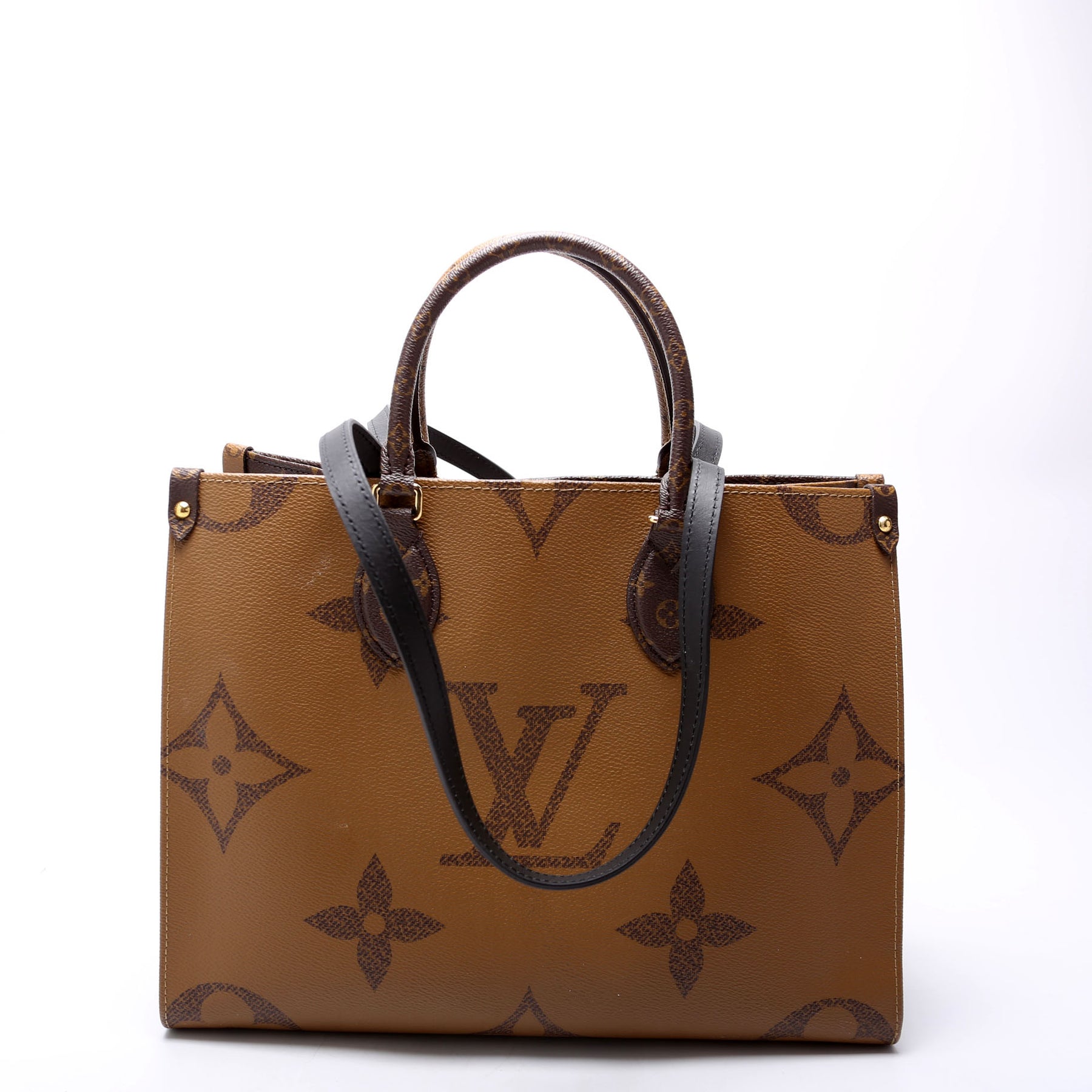 This pre-owned Louis Vuitton ONTHEGO MM is guaranteed 100% authentic. The exterior is in the classic Louis Vuitton Reverse Monogram coated canvas.