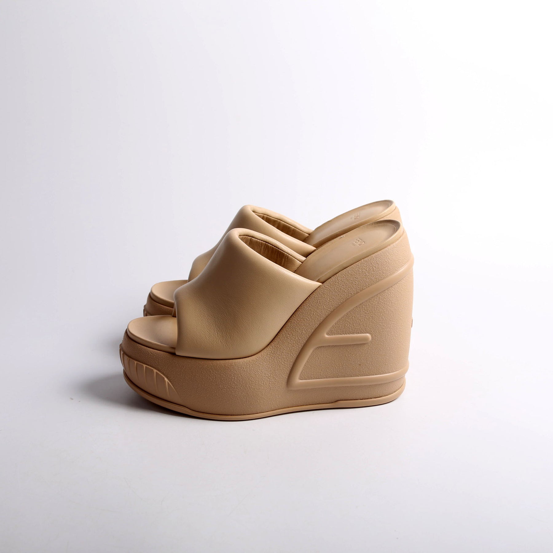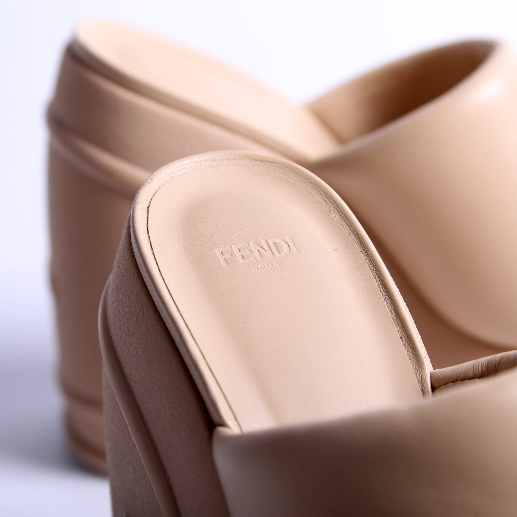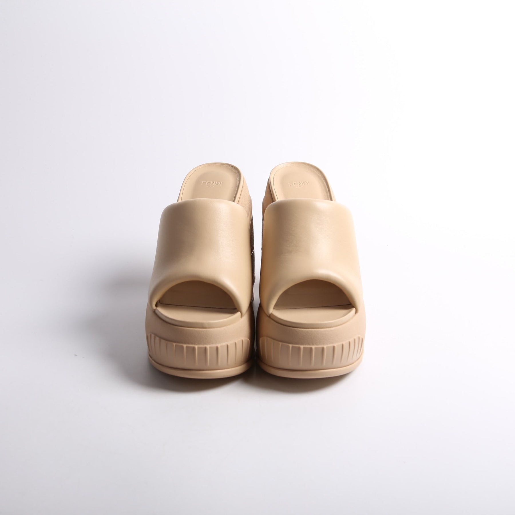 These pre-owned Fendi Padded Leather Plaform Slides are guaranteed 100% authentic.