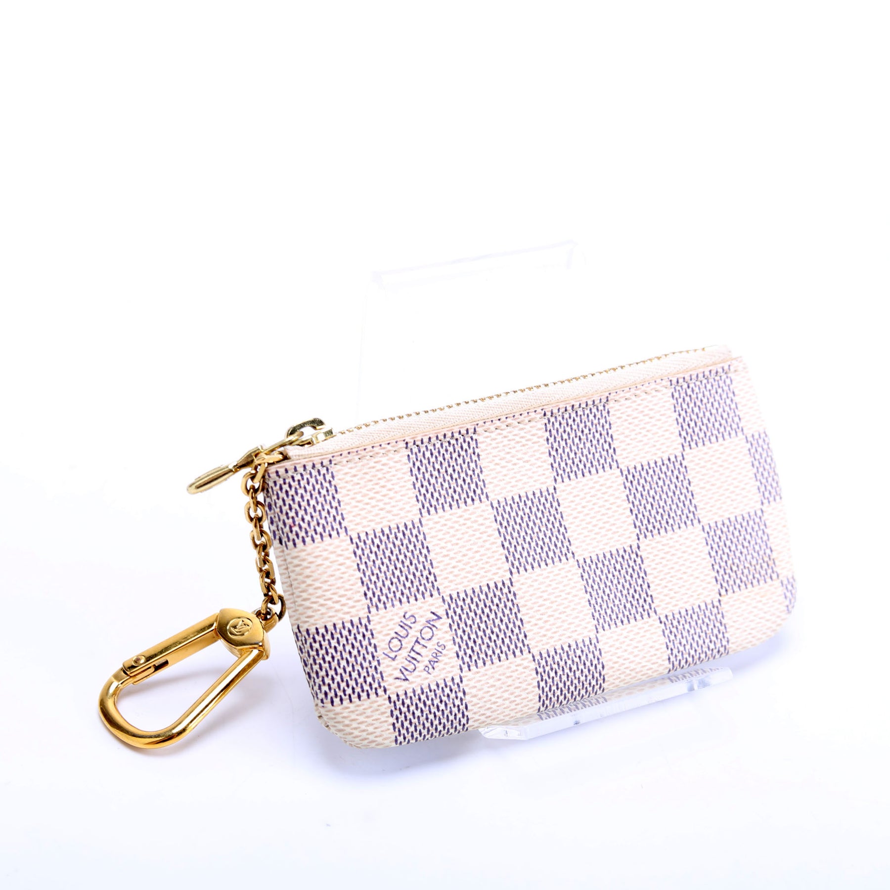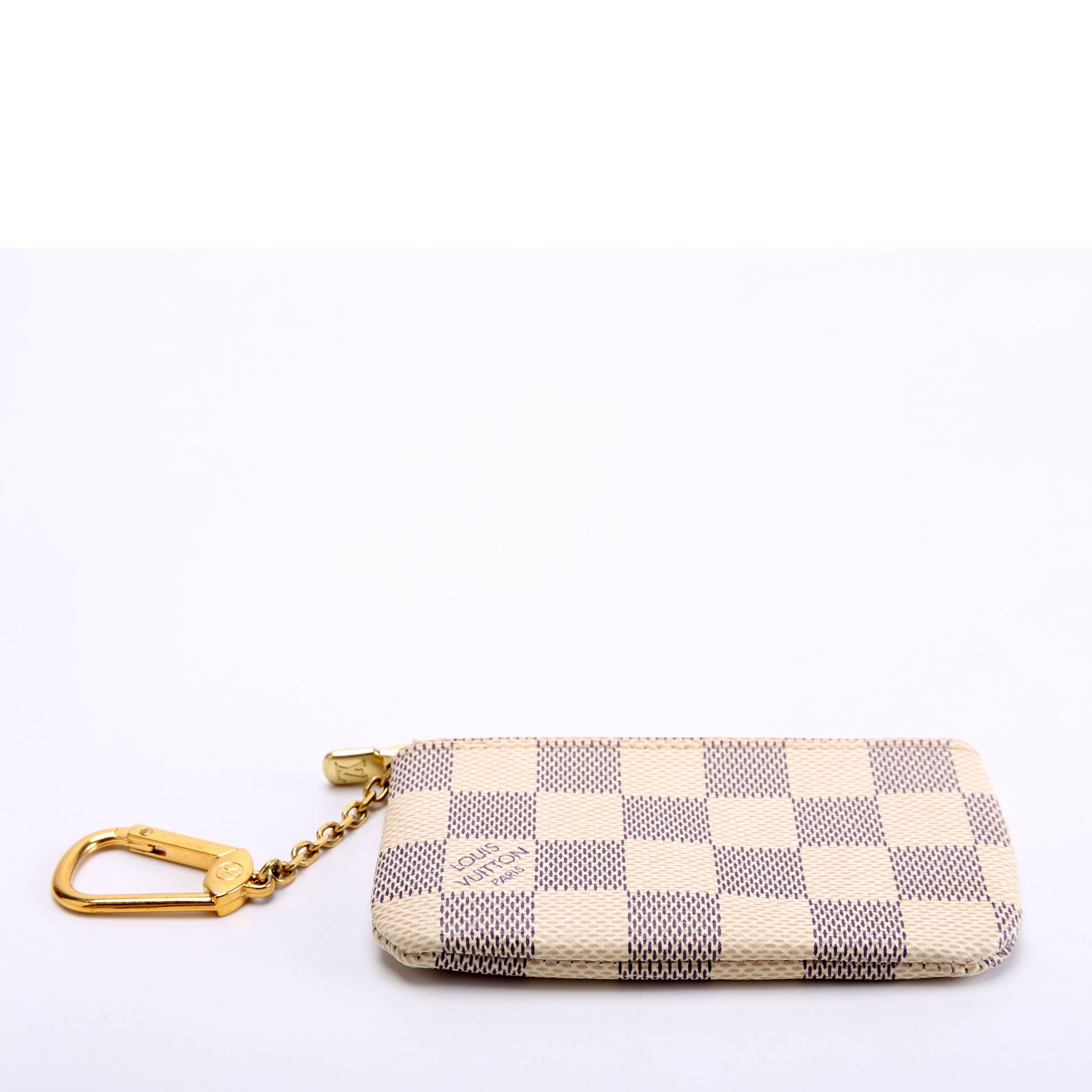 This pre-owned Louis Vuitton Pochette Cles is guaranteed 100% authentic. The exterior is in the classic Louis Vuitton Damier Azur.