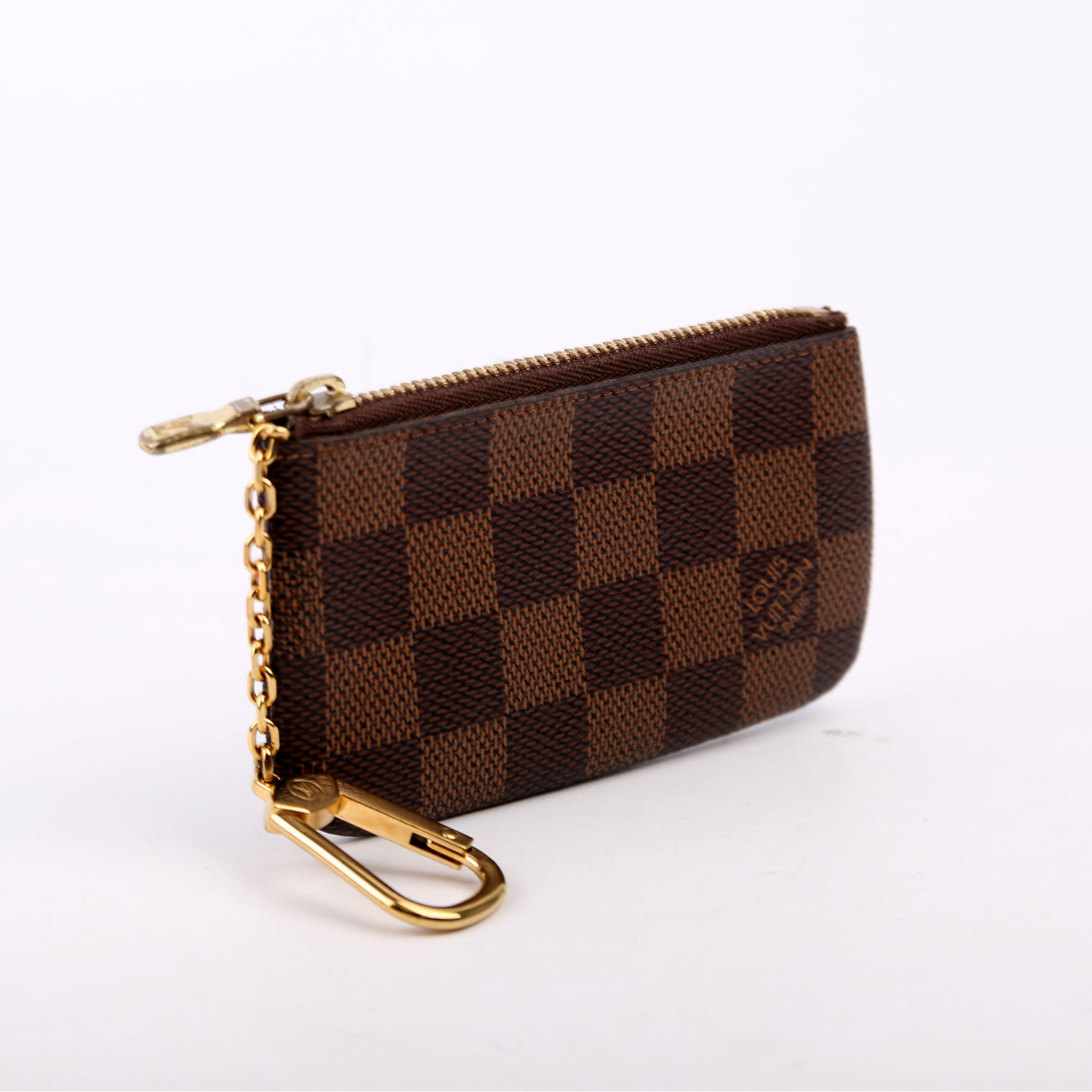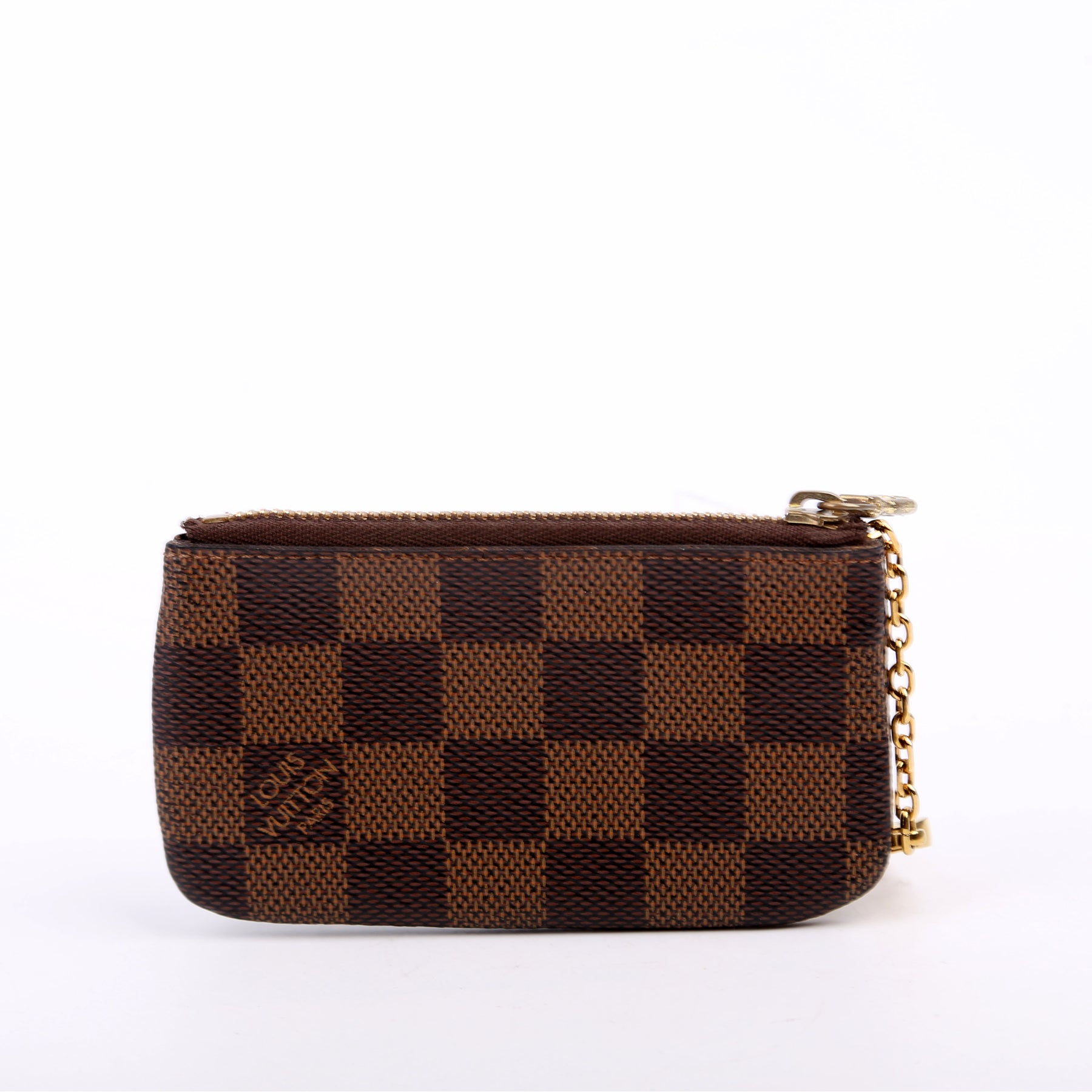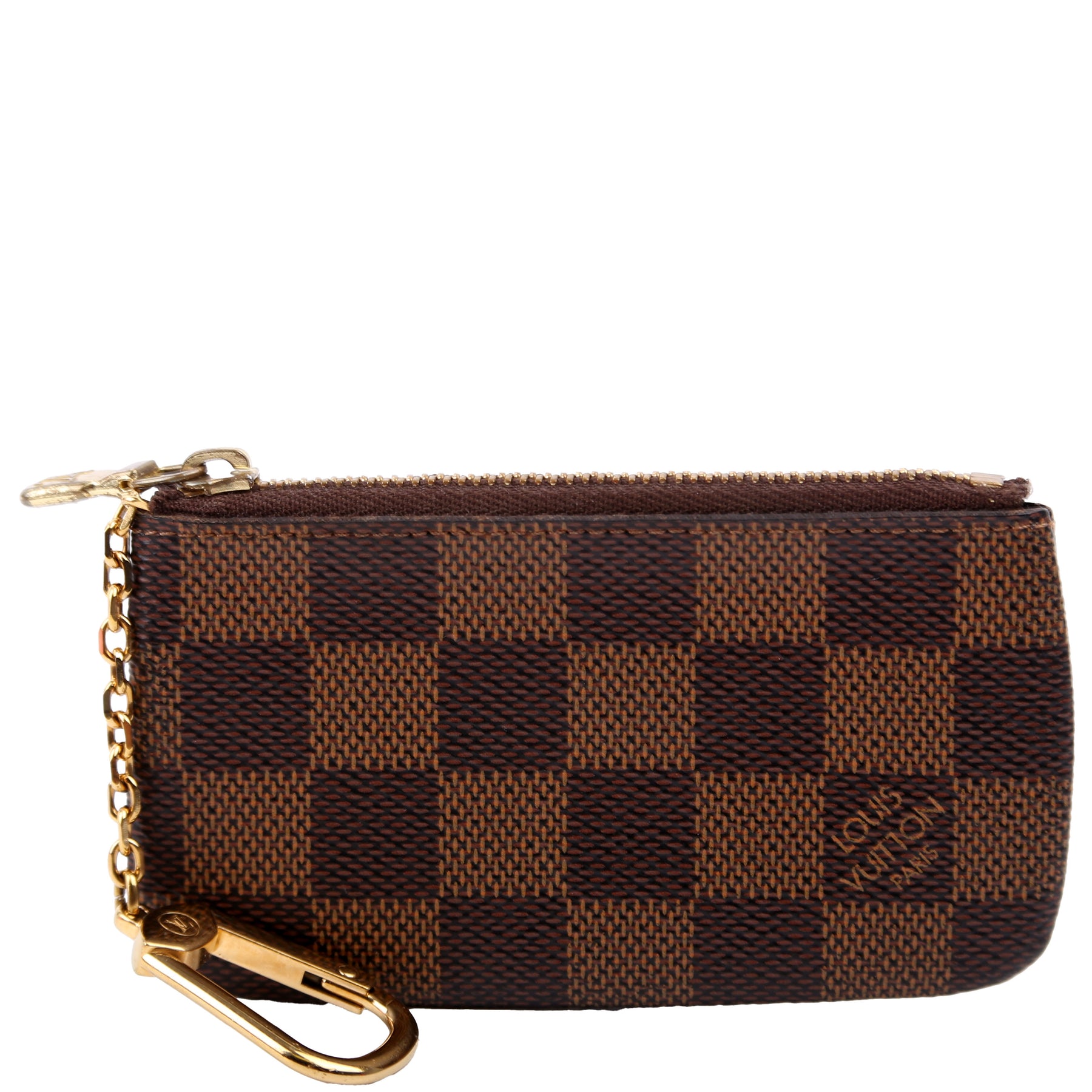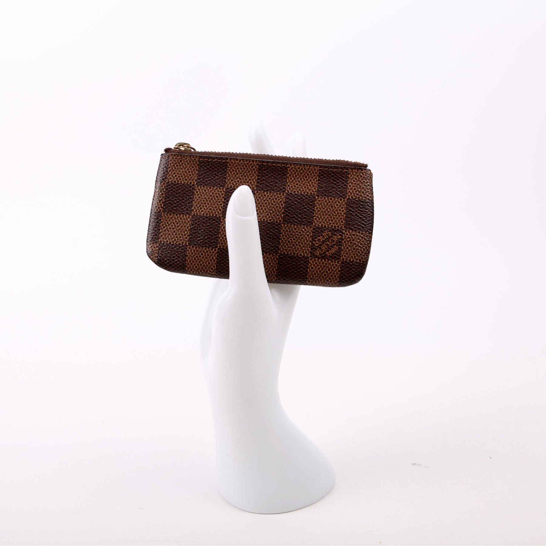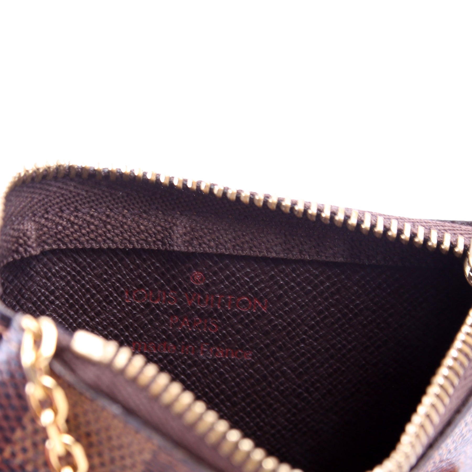 This pre-owned Louis Vuitton Pochette Cles is guaranteed 100% authentic. The exterior is in the classic Louis Vuitton Damier Ebene coated canvas.