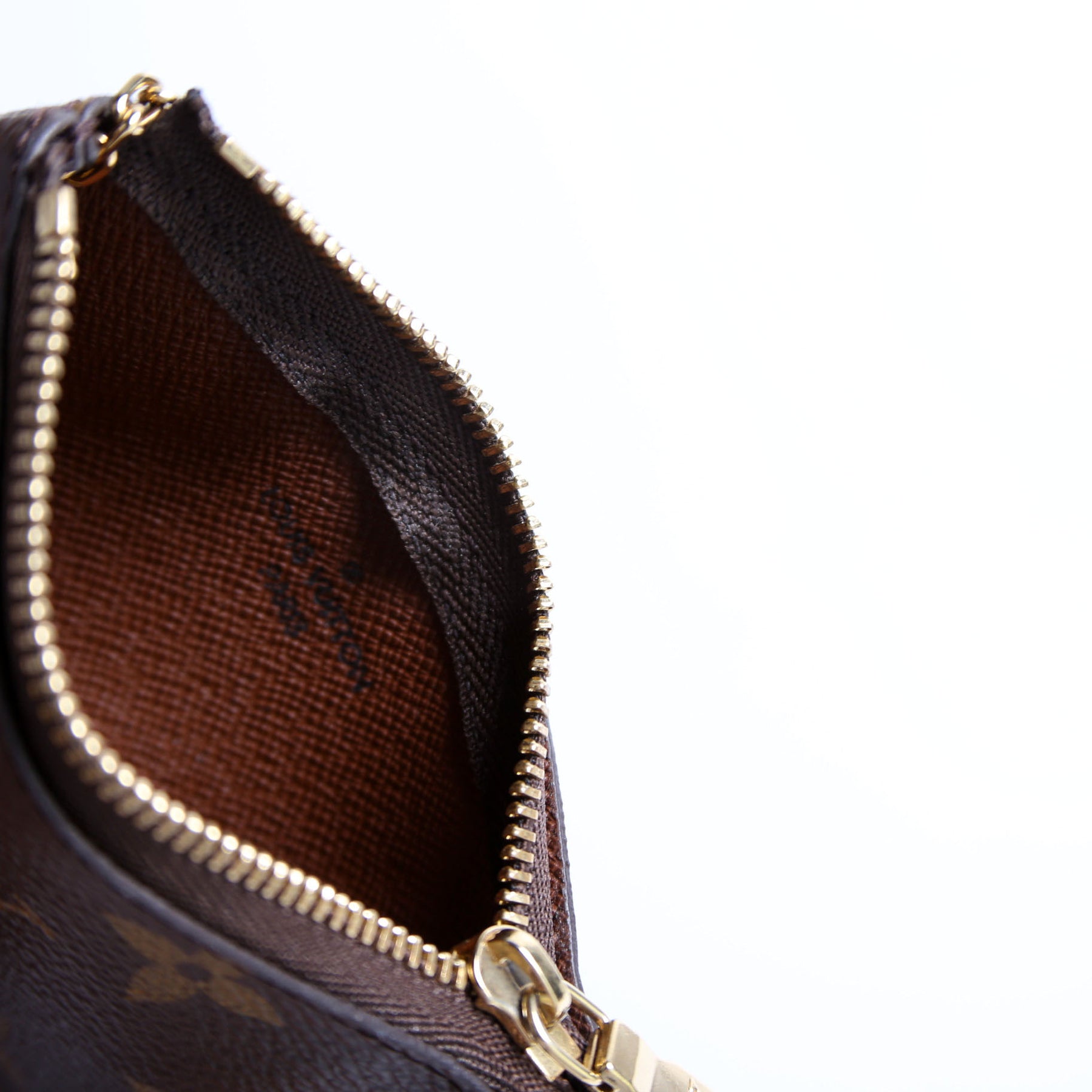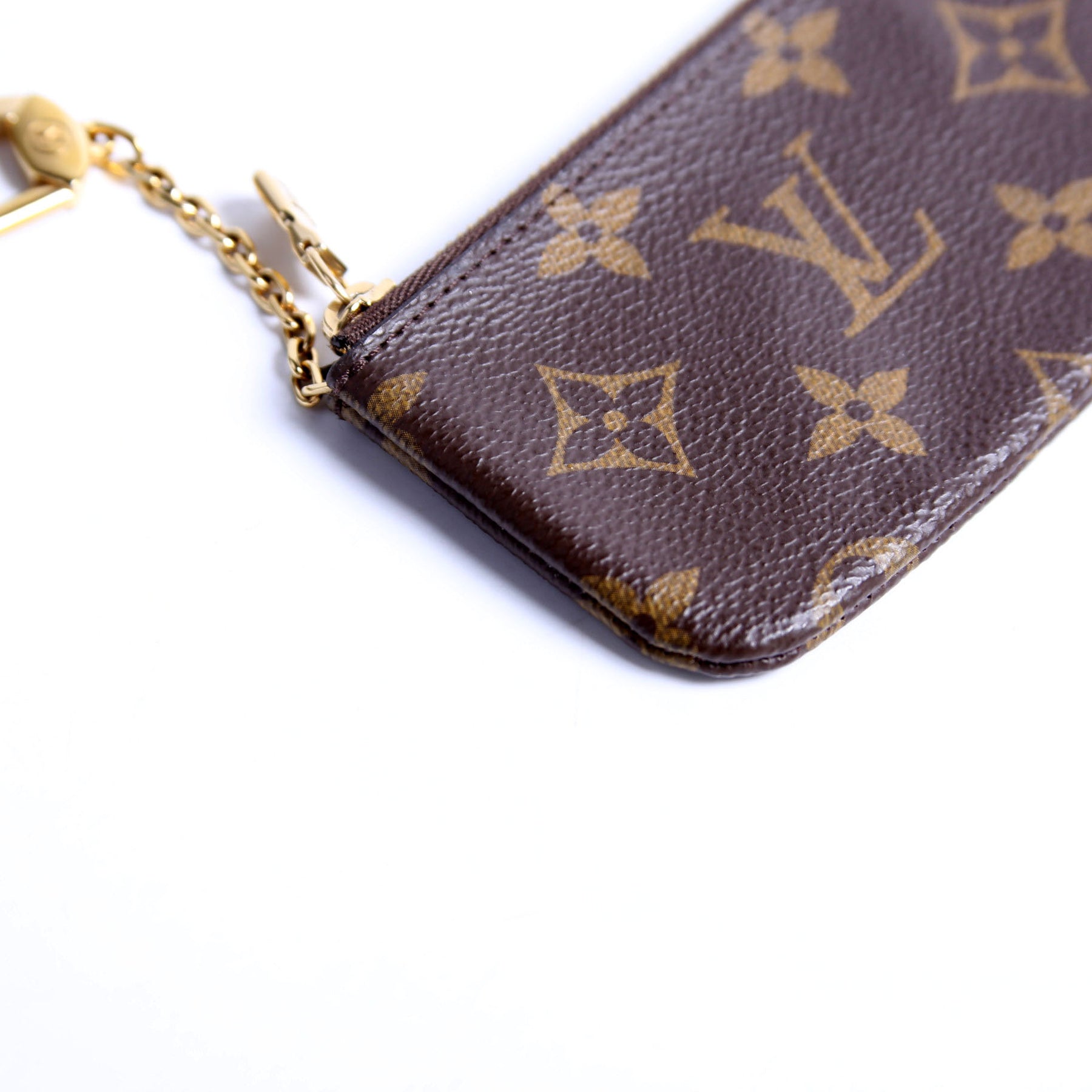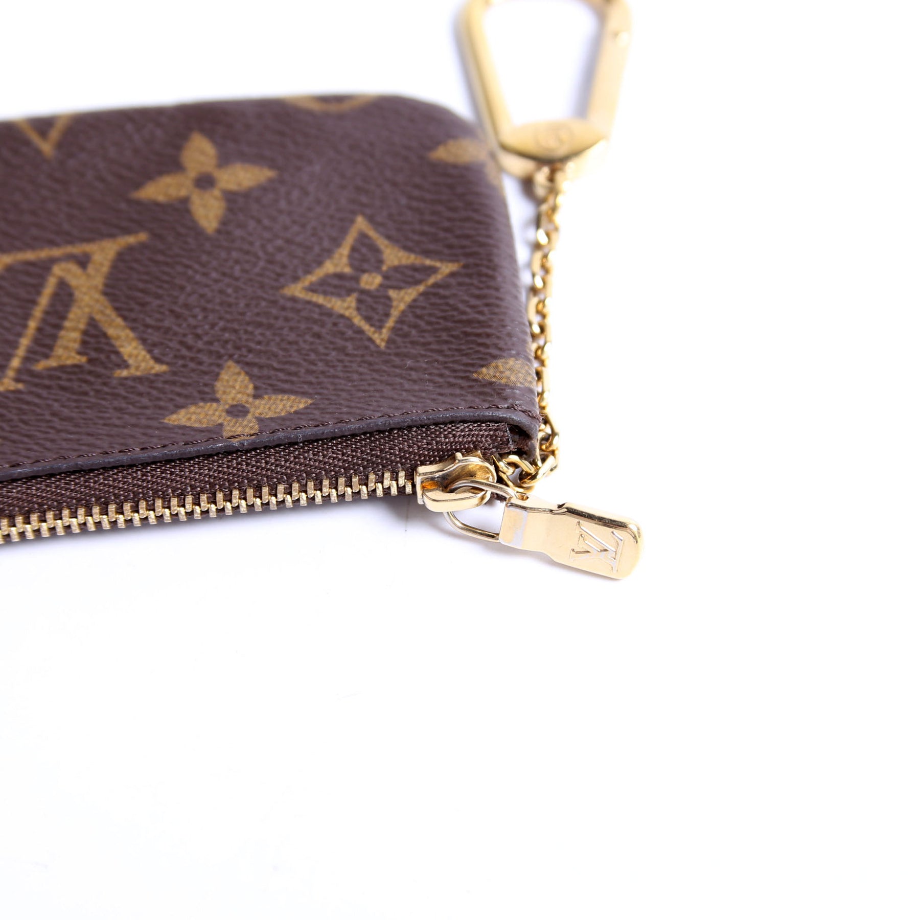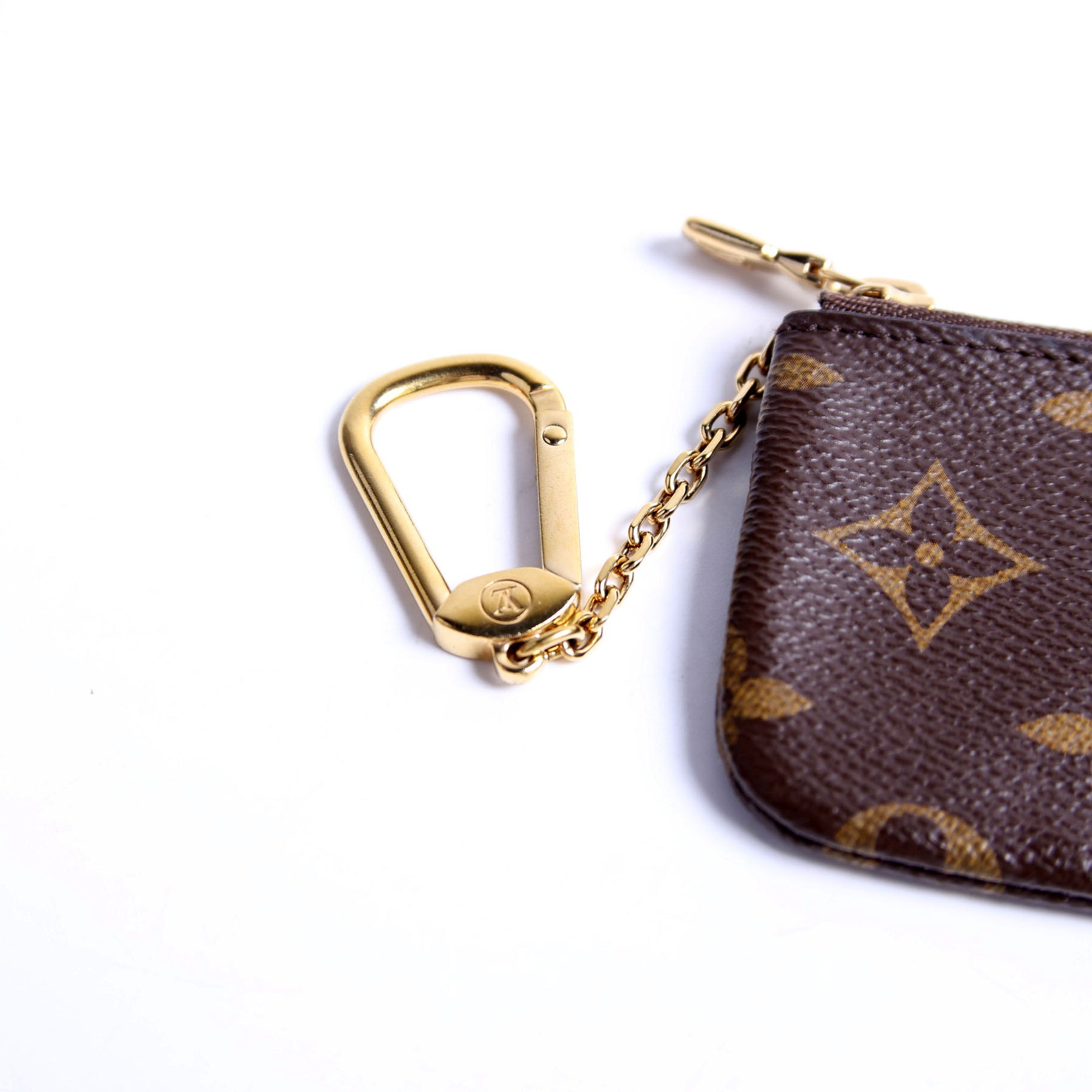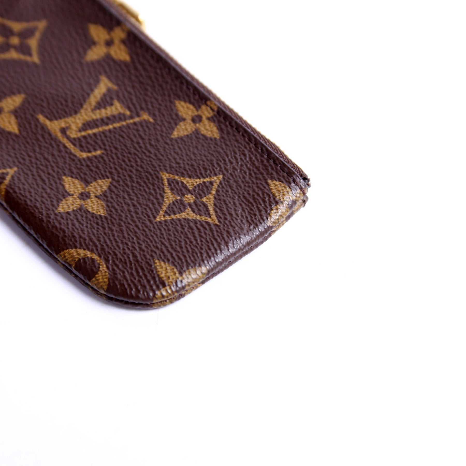 This pre-owned Louis Vuitton Pochette Cles is guaranteed 100% authentic. The exterior is in the classic Louis Vuitton Monogram Coated Canvas.