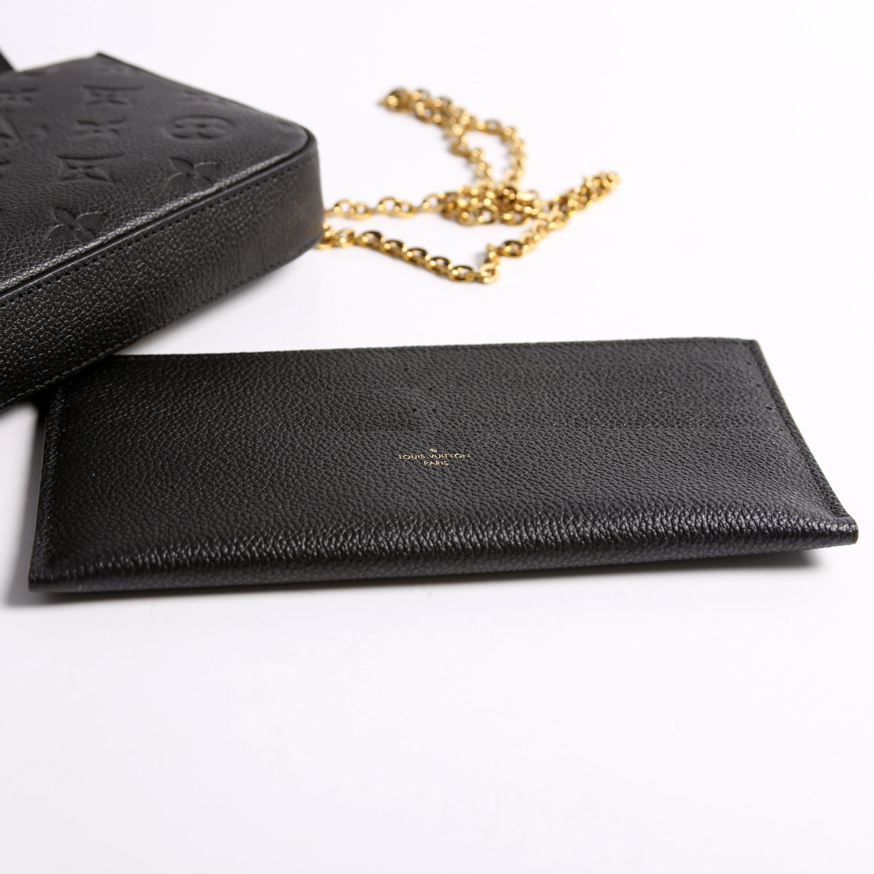 This pre-owned Louis Vuitton Pochette Felicie is guaranteed 100% authentic. The exterior is in the classic Louis Vuitton Empreinte leather.