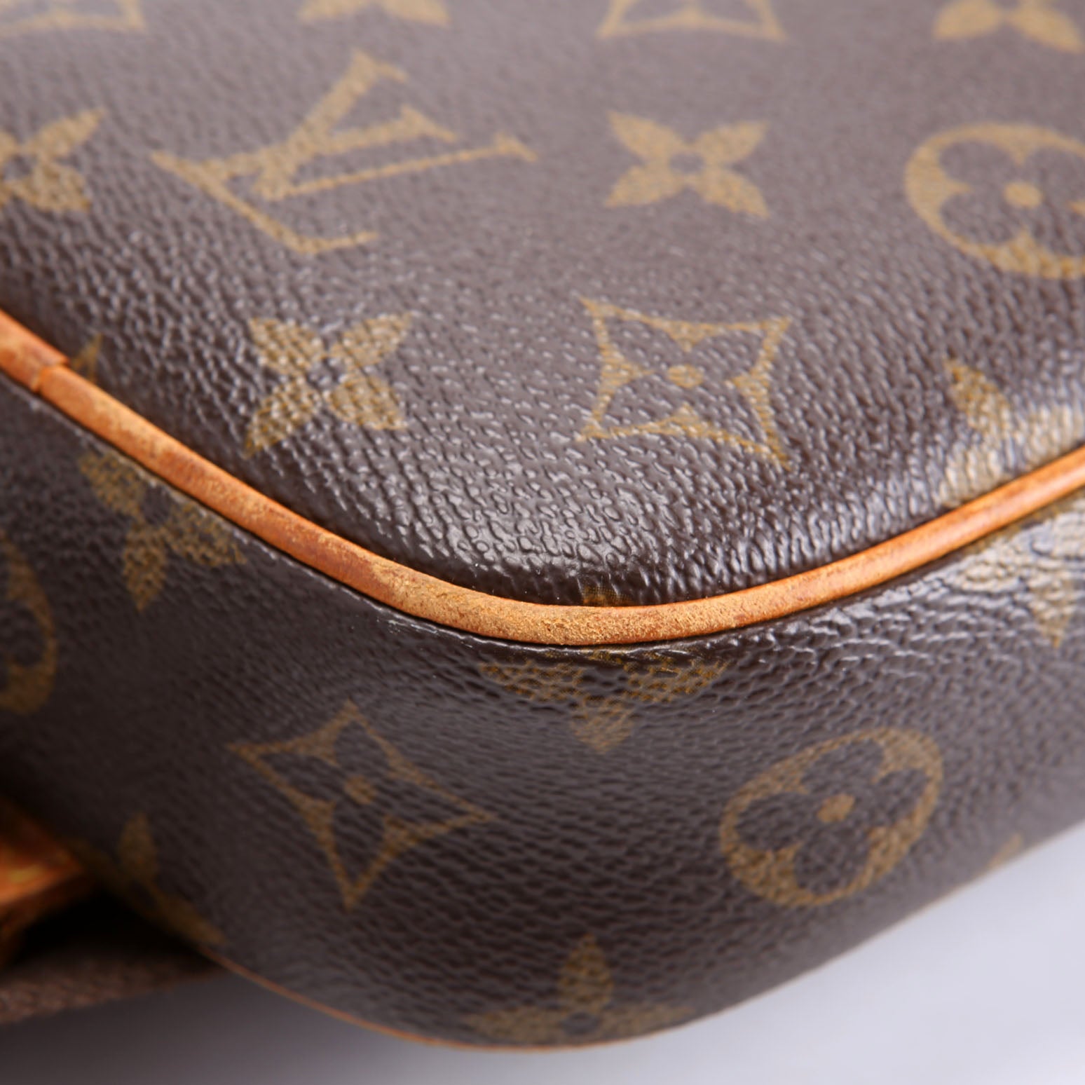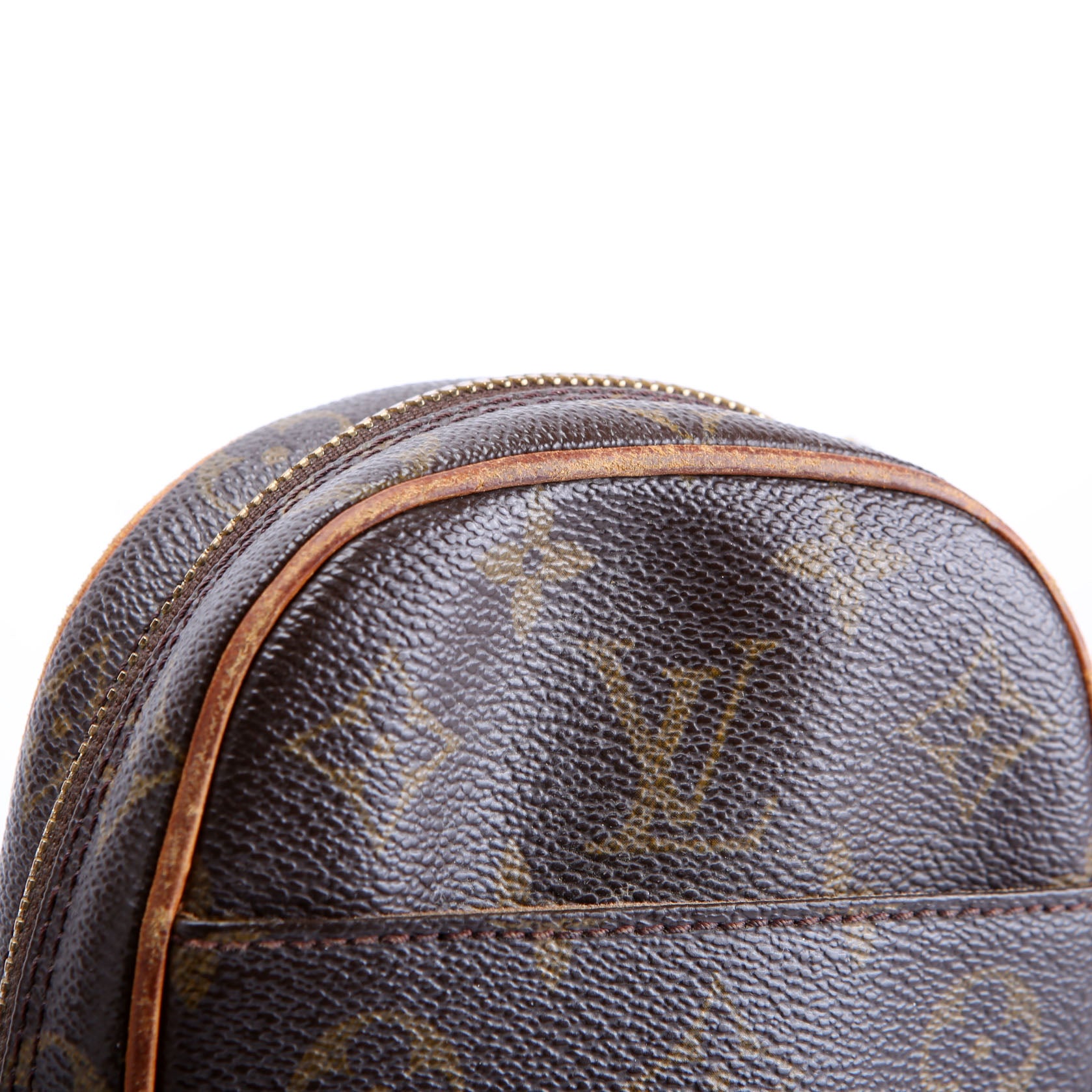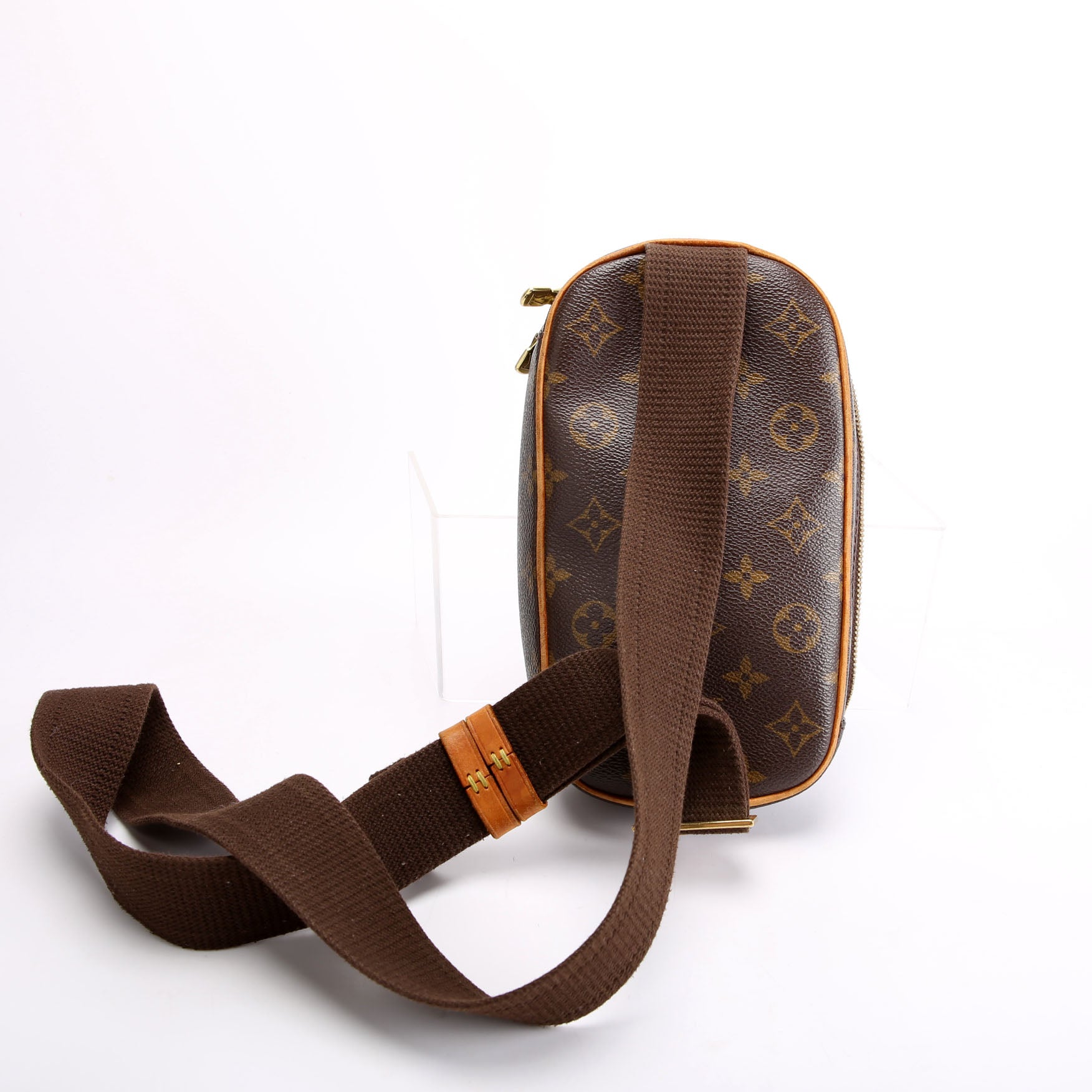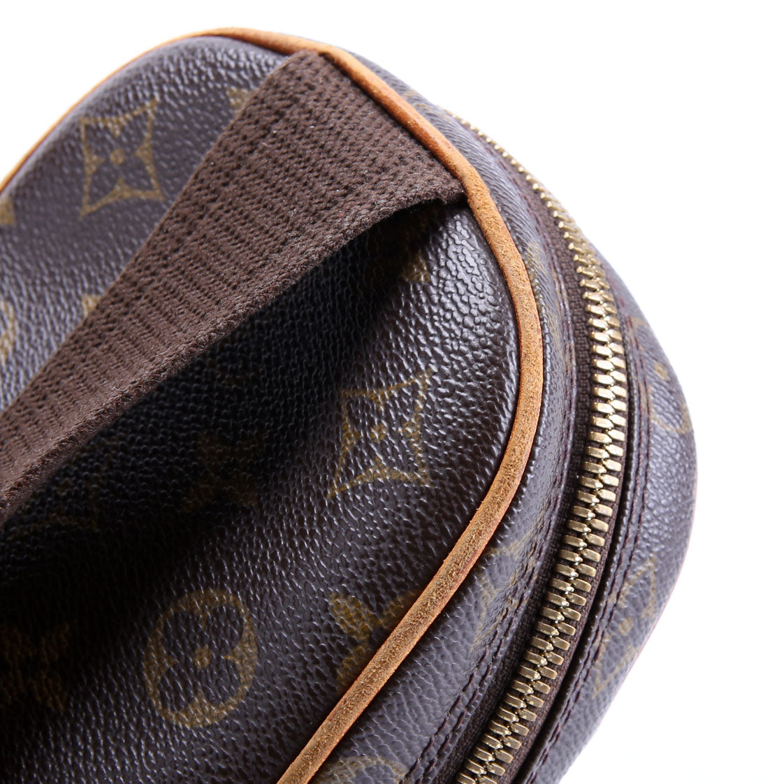This pre-owned Louis Vuitton Pochette Gange is guaranteed 100% authentic. The exterior is in the classic Louis Vuitton Monogram coated canvas.
