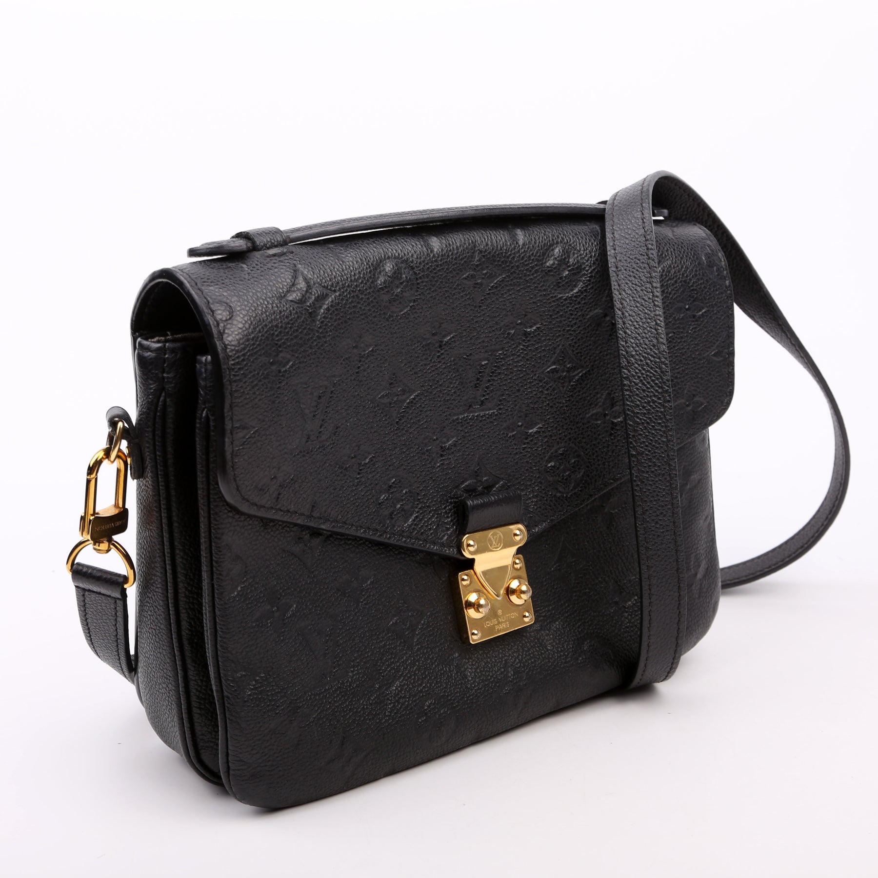 This pre-owned Louis Vuitton Pochette Metis is guaranteed 100% authentic. The exterior is in the classic Louis Vuitton Empreinte leather.