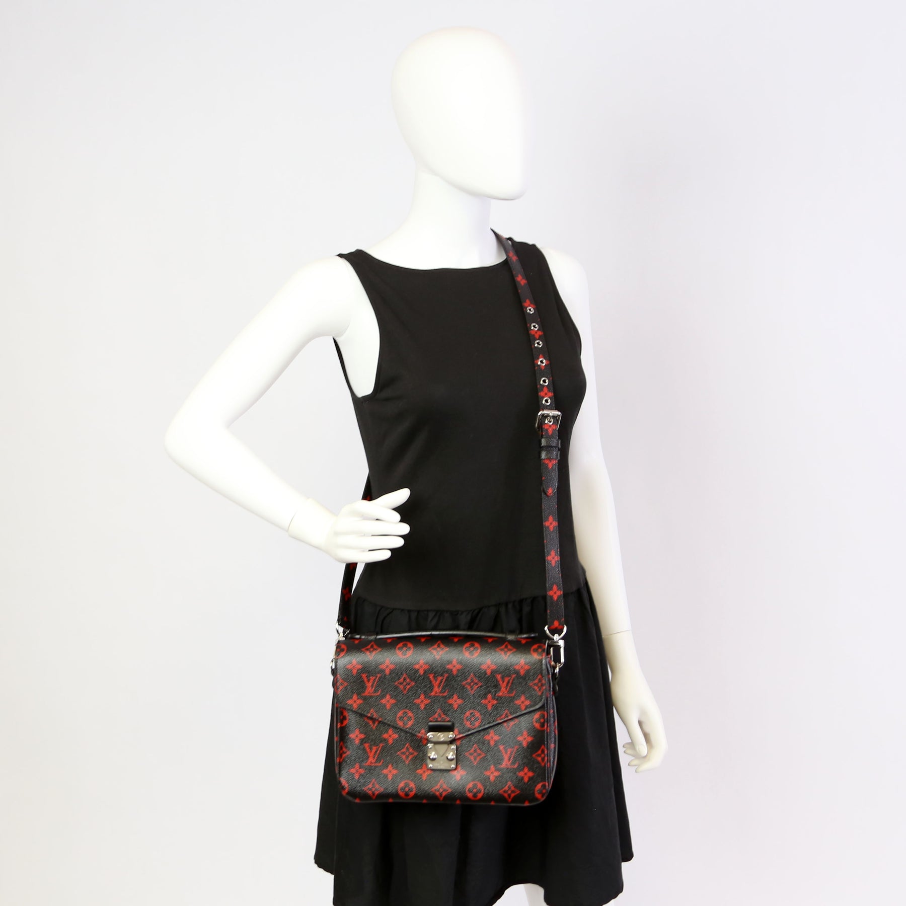 This pre-owned Louis Vuitton Pochette Metis is guaranteed 100% authentic. The exterior is in the classic Louis Vuitton Monogram coated canvas.