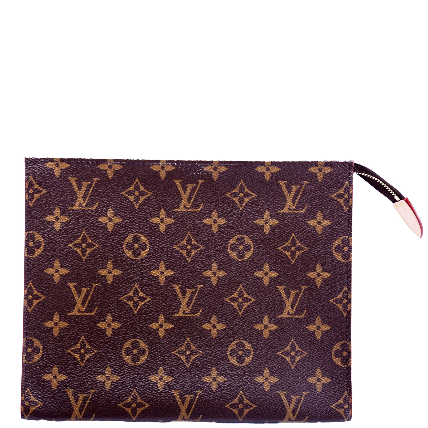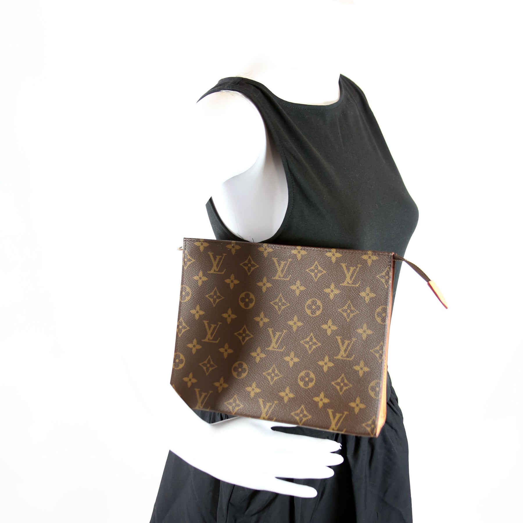 This pre-owned Louis Vuitton Pochette Toilette NM Monogram is guaranteed 100% authentic. The exterior is in the classic Monogram coated canvas.