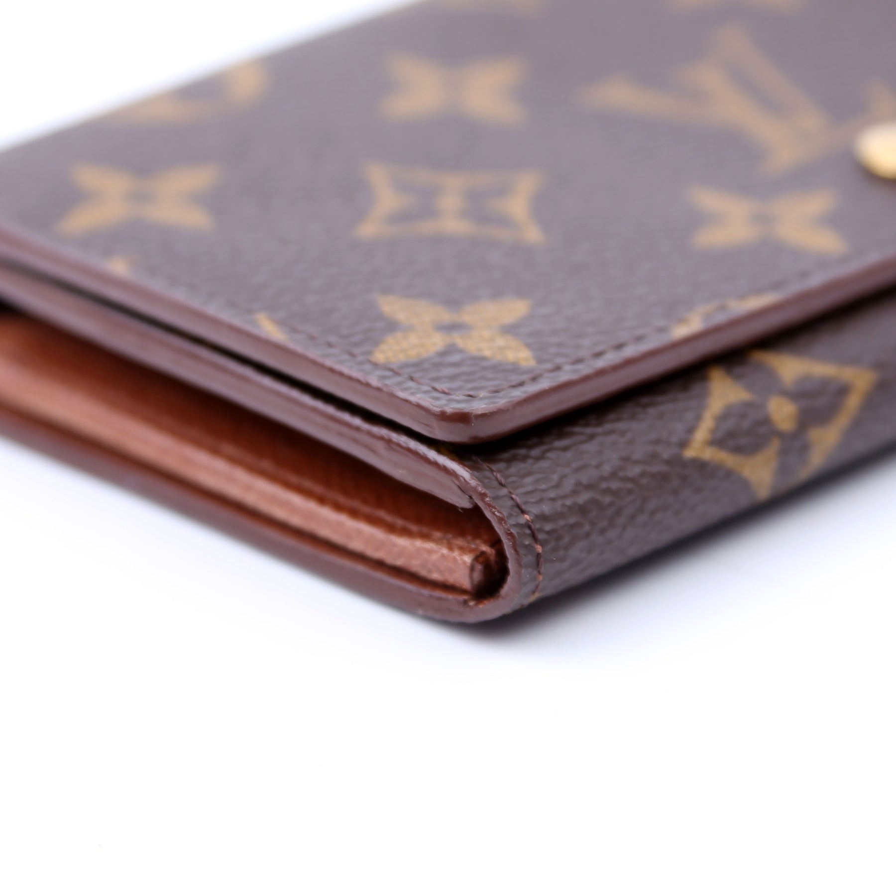 This pre-owned Louis Vuitton Porte Monnaie Billets Tresor Wallet is guaranteed 100% authentic. The exterior is in the classic Louis Vuitton Monogram coated canvas.