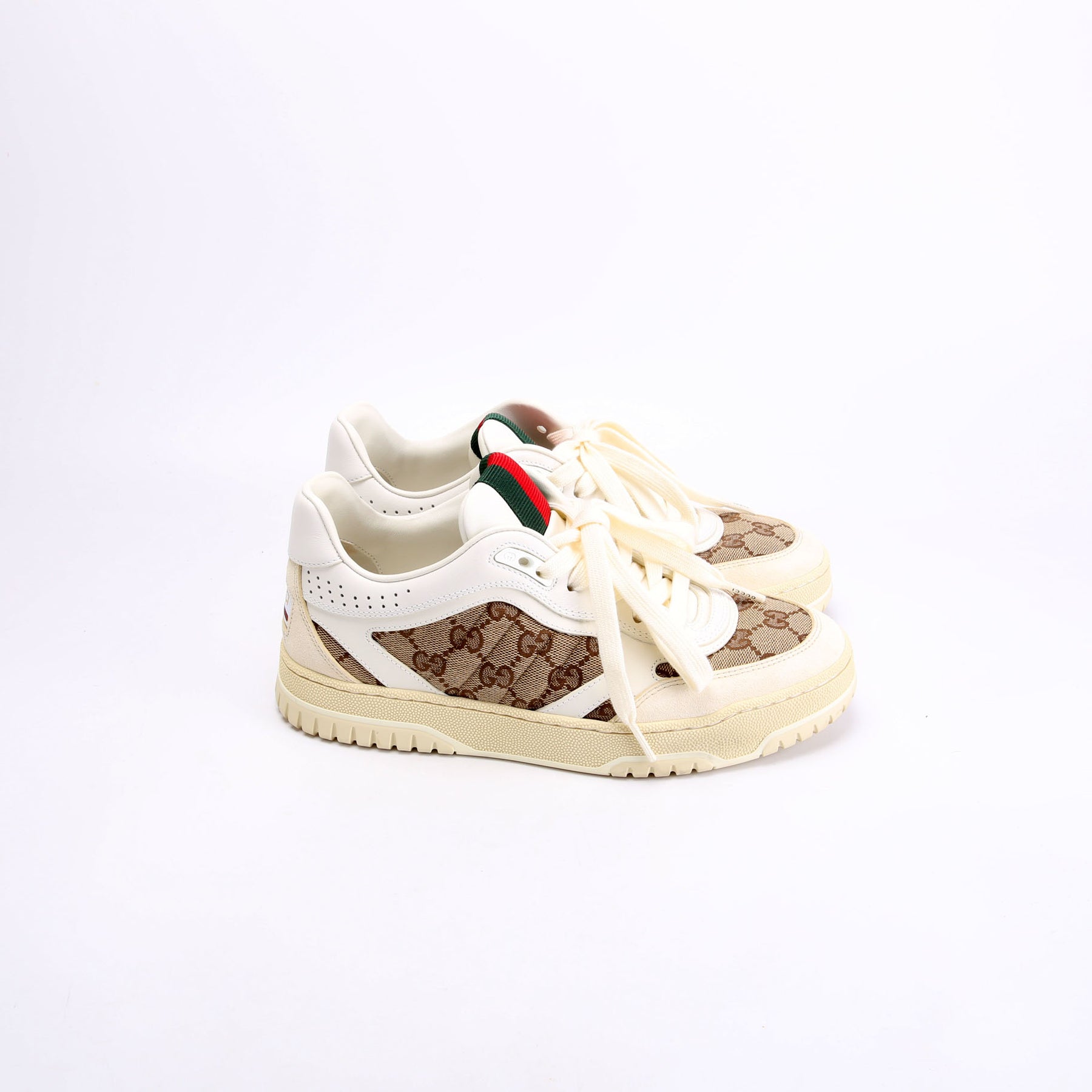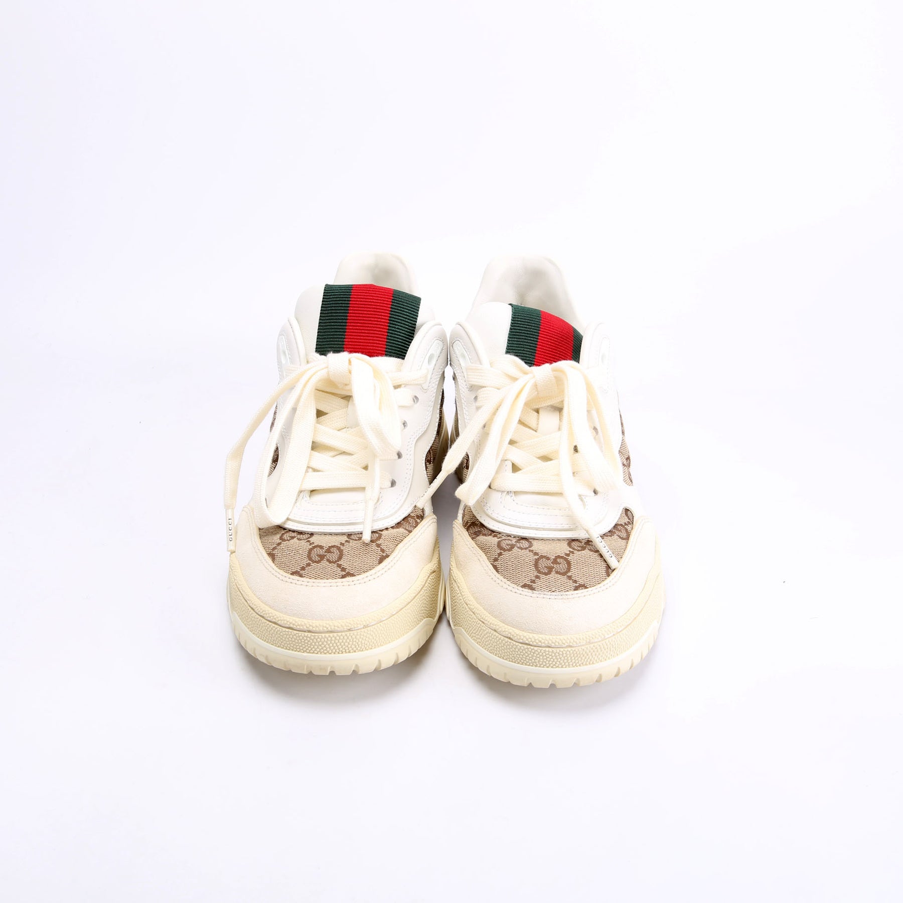 These pre-owned Gucci Re-Web Leather Sneakers are guaranteed 100% authentic.