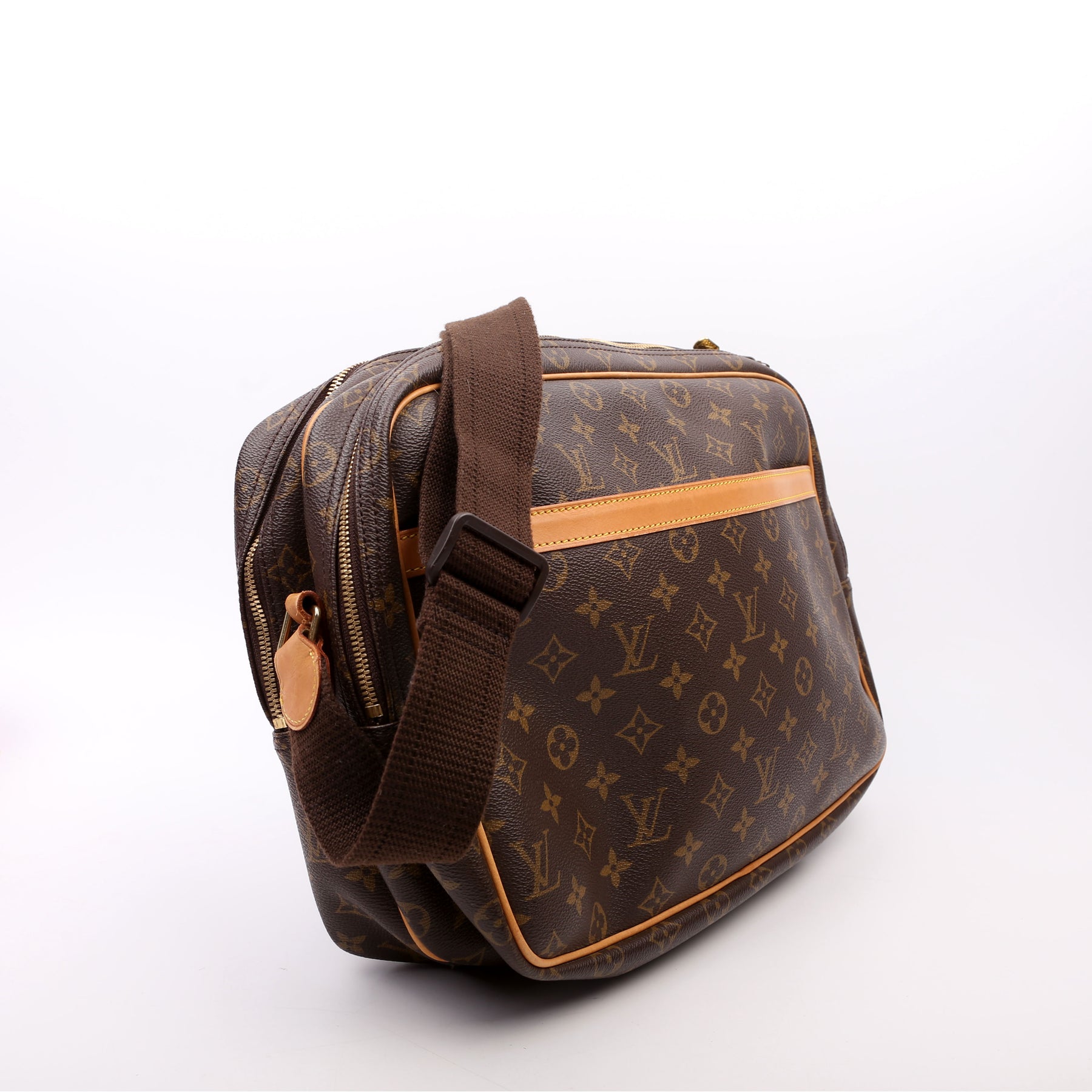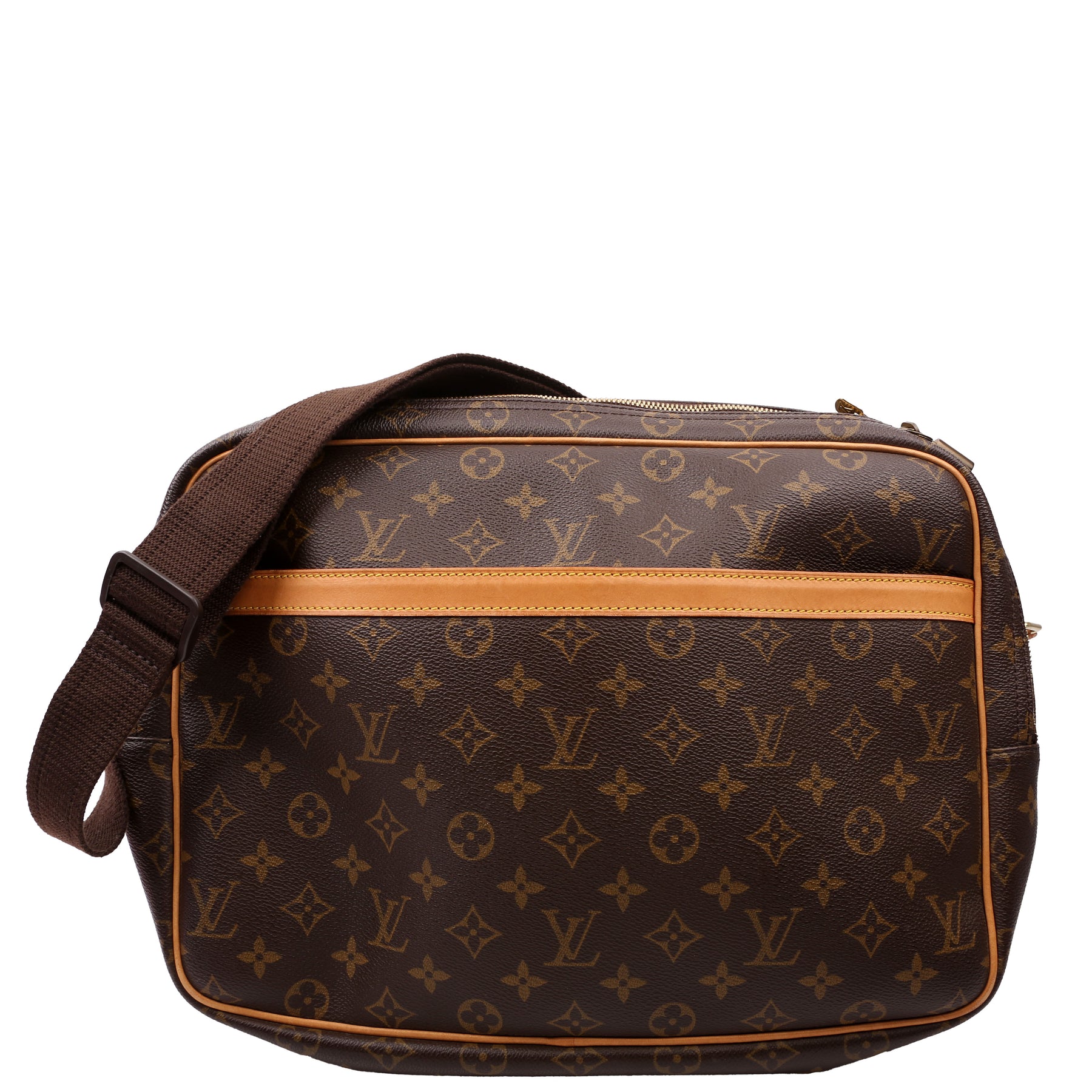 This pre-owned Louis Vuitton Reporter GM is guaranteed 100% authentic. The exterior is in the classic Louis Vuitton Monogram coated canvas.